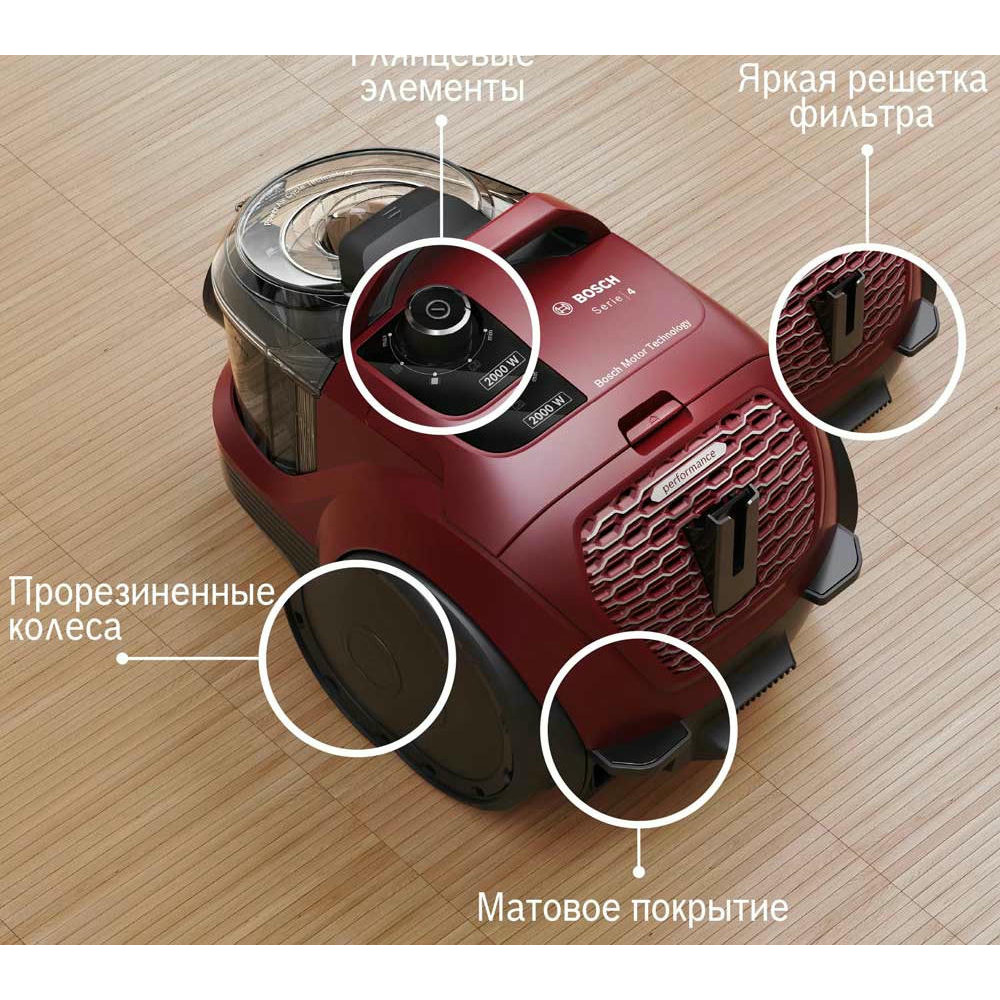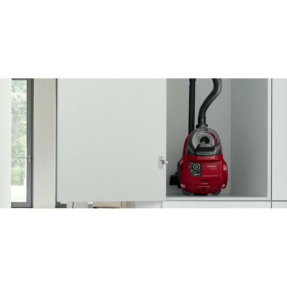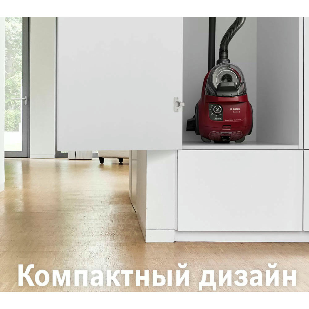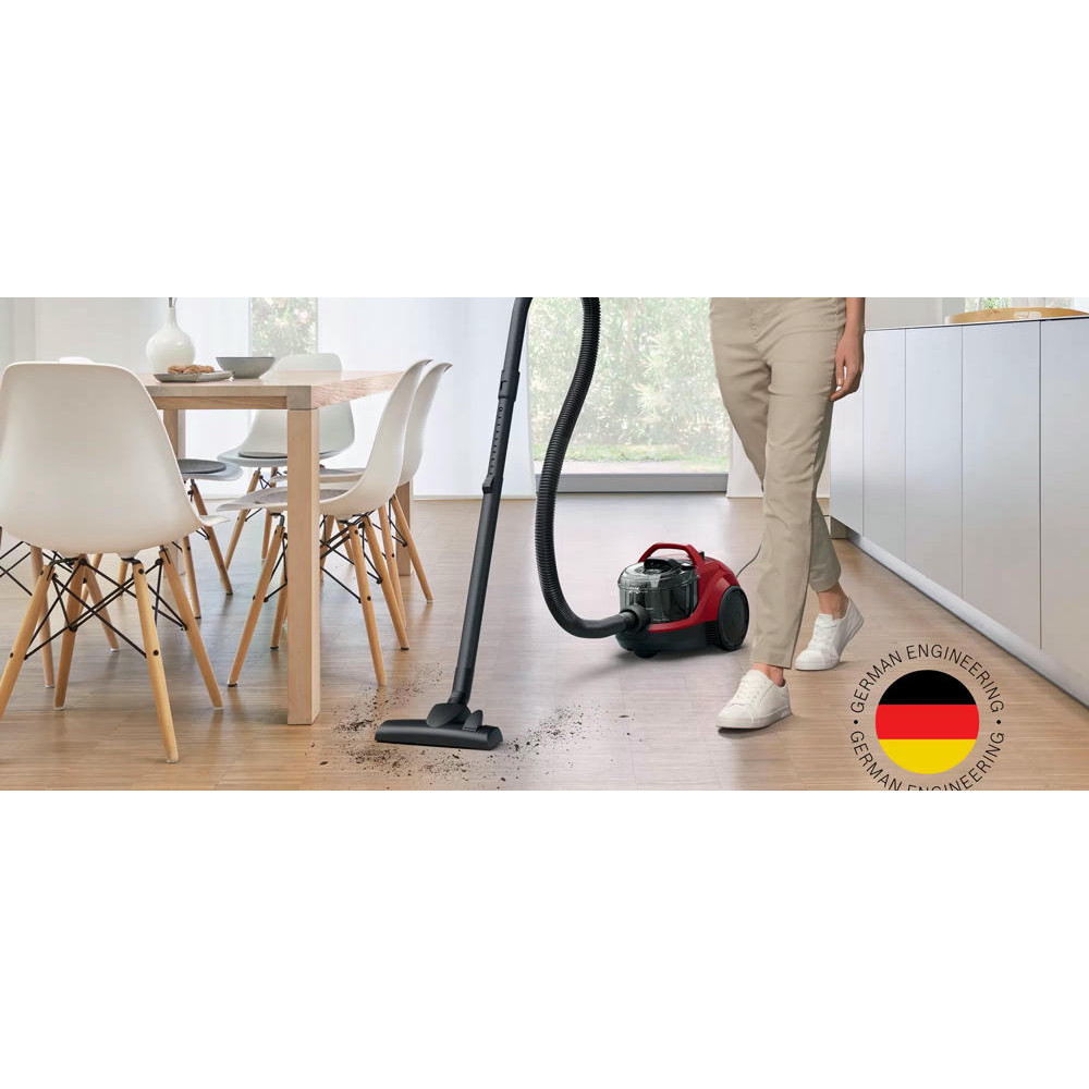 Bosch BGS21WX200 оборудован контейнером для сбора пыли, а значит его легко чистить. Телескопическая труба всасывания позволит выбрать длину для любых целей, а насадки, которые есть в комплекте, помогут очистить как мягкую мебель, так и узкие щели.