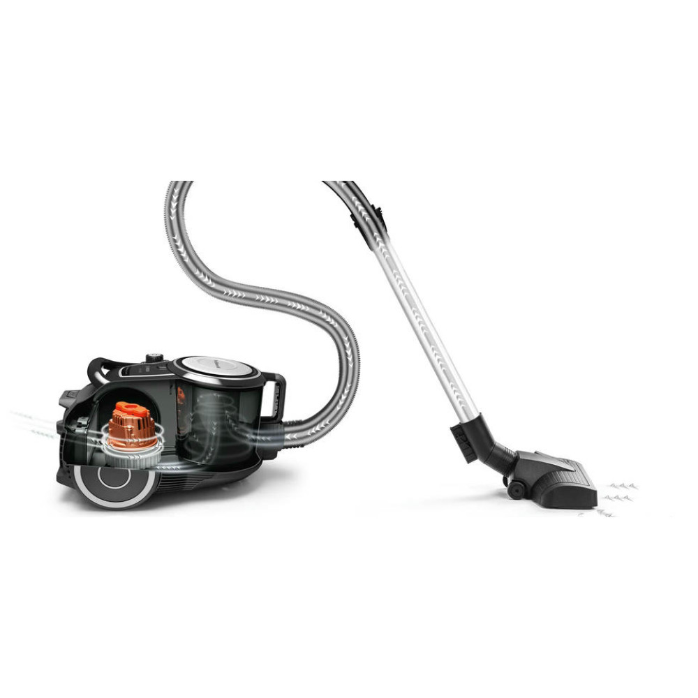 Устройство оснащено электронной регулировкой мощности с поворотным регулятором, расположенным на корпусе. Это позволяет точно подобрать оптимальную мощность для различных типов поверхностей и уровней загрязнения. Кроме того, пылесос имеет автосматывание сетевого шнура и встроенный отсек для хранения насадок, что обеспечивает удобство хранения и транспортировки устройства. В комплекте с пылесосом идут различные насадки, включая насадку для пола и ковра, щелевую насадку и насадку для мягкой мебели. Это позволяет эффективно убирать любые поверхности, удаляя даже самые труднодоступные загрязнения. Также есть функция легкой очистки щетки Easy Clean, что облегчает уход за устройством. Сетевой кабель длиной 7 метров позволяет убирать большие помещения без необходимости переключения розеток.