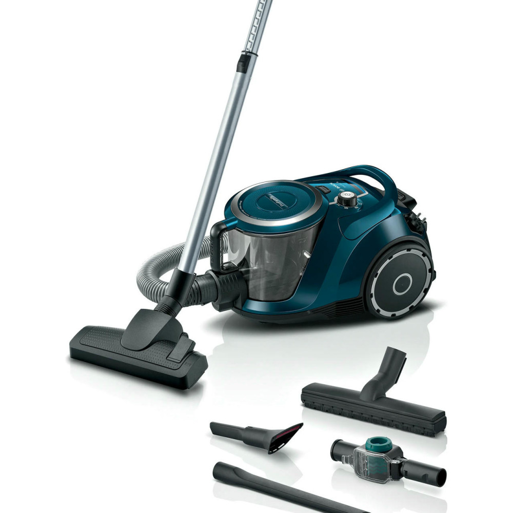 Пылесос Bosch BGS41FAM из серии Serie | 6 оснащен мощным двигателем с потребляемой мощностью 600 Вт, что обеспечивает эффективное и быстрое устранение загрязнений. При этом уровень шума составляет всего 69 дБ, что позволяет использовать устройство в любое время без страха беспокоить домочадцев. Дизайн пылесоса выполнен в элегантном перламутровом темно-синем цвете, что придает ему стильный и современный вид. Устройство оснащено одним подвижным роликом и двумя обычными колесами, что обеспечивает его удобную маневренность и легкость передвижения по дому. Пылесос Bosch BGS41FAM оснащен удобной системой гигиенической фильтрации - контейнерным моющимся HEPA фильтром, который эффективно задерживает пыль и аллергены. Объем контейнера для сбора пыли составляет 2.4 л, что позволяет проводить уборку даже в больших помещениях без необходимости частой замены мешка. К тому же, контейнер легко очищается, что делает процесс уборки еще более удобным и гигиеничным.
