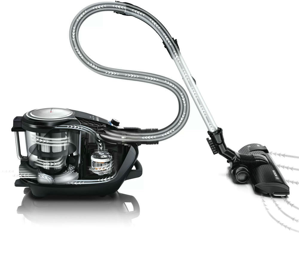 Пылесос Bosch BGS7RCL оснащена системой SmartSensor Control датчики отслеживают оптимальный уровень устройства, дисплей показывает когда нужно заменить фильтр. Щетка для твердых полов отлично вычищает пыль из зазоров в плитке или в щелях деревянного пола. Моющийся гигиенический фильтр HEPA подходит для людей с аллергией, он очищает воздух от пыли и бактерий.