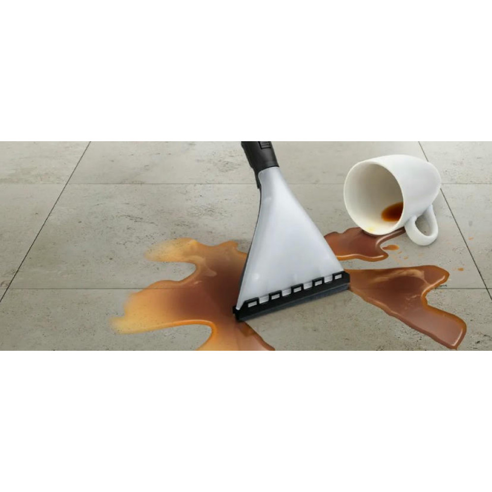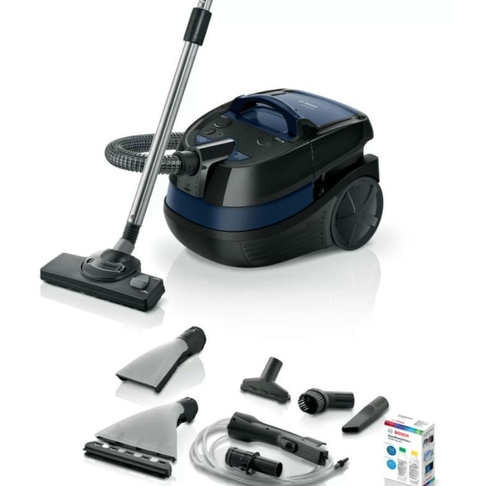 Пылесос Bosch BWD41700 — модель 3 в 1 мощностью 1700 Вт для сухой и влажной уборки. Большие колеса с мягкой поверхностью не повреждают напольное покрытие. Емкость контейнера для воды 5 литров позволяет делать генеральную уборку без замены жидкости. При помощи прибора можно проводить влажную уборку ковров и обивки, сбор жидкости, сухую чистку любых поверхностей. Для удобства хранения предусмотрена автоматическая намотка кабеля и место для малых насадок (щелевая, для обивки и корпусной мебели) внутри корпуса.