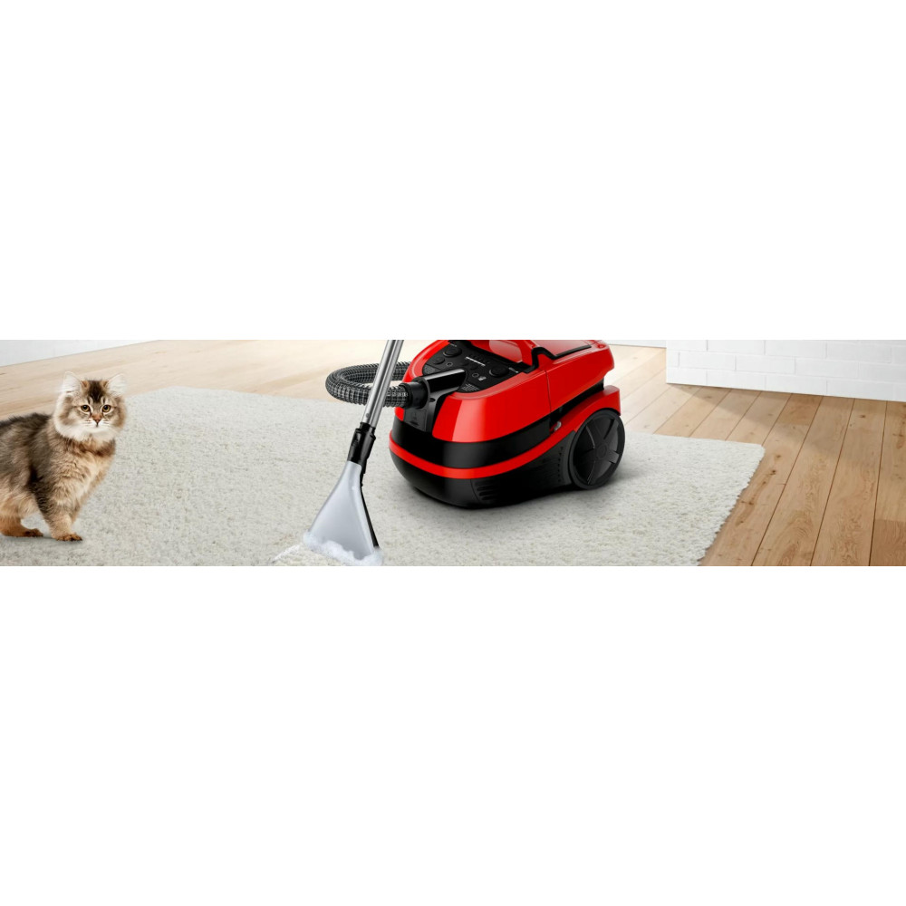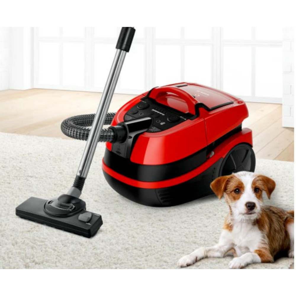 Пылесос Bosch BWD421PET, как понятно из названия, выпущен специально для домов, где есть домашние животные. Он оснащён специальными насадками, которые отлично захватывают шерсть даже с ковров, поэтому чистоту в жилище станет поддерживать проще. Яркий корпус выполнен в сочетании чёрного и красного, что подчёркивает уникальность этого представителя ряда Serie 4.