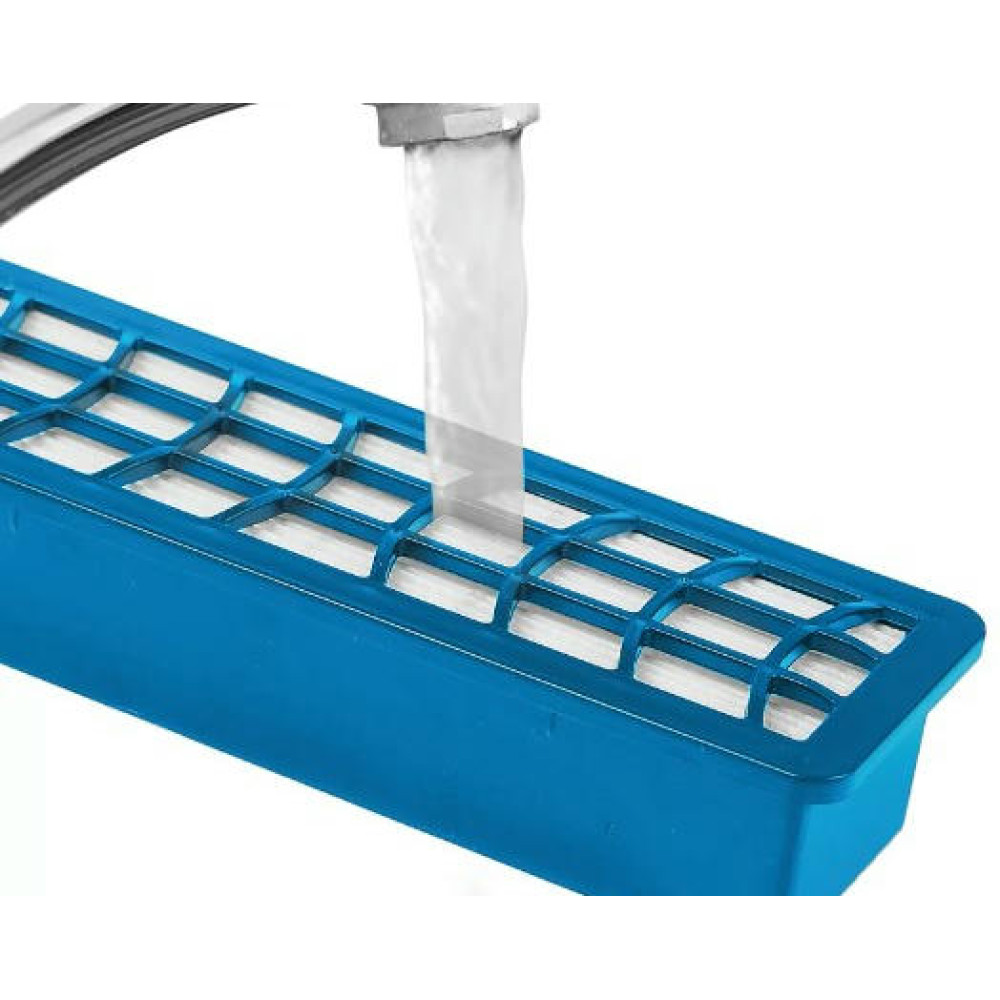 - Установленный фильтр HEPA H13 — один из самых эффективных на данный момент. Он задерживает до 99,95% даже мелкодисперсной пыли.