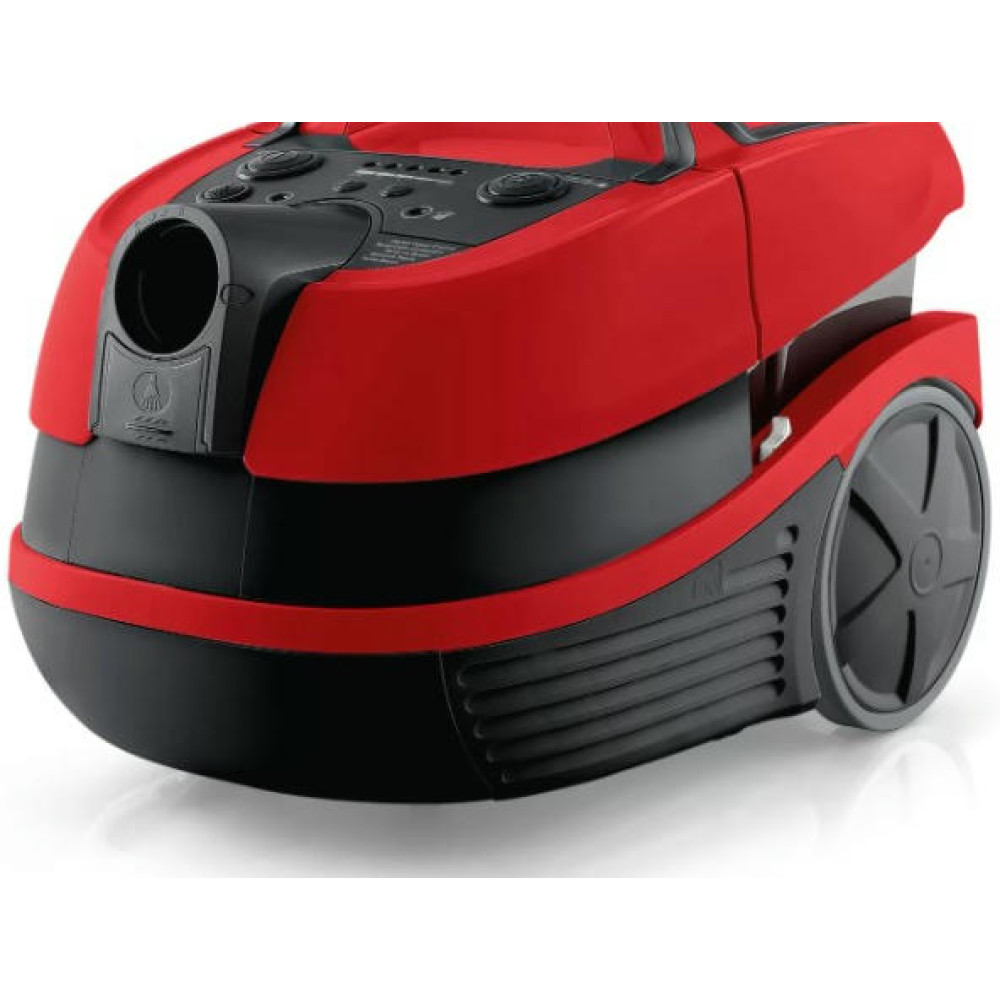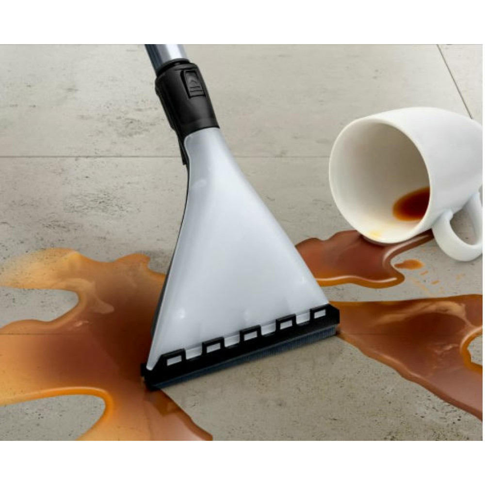 В стандартный набор этого пылесоса входят универсальная щётка, подходящая большинству поверхностей, малая, мягкая (для чистки мебели и жалюзи) и щелевая для труднодоступных мест. Кроме того, в комплекте есть турбощётка, насадка для матрасов, а также несколько распылительных для мойки. Внутри есть встроенный отсек для насадок, чтобы их было удобнее хранить. Кабель имеет радиус действия в 12 м. Прорезиненные колёсики легко скользят по поверхности и не оставляют следов на ковре.