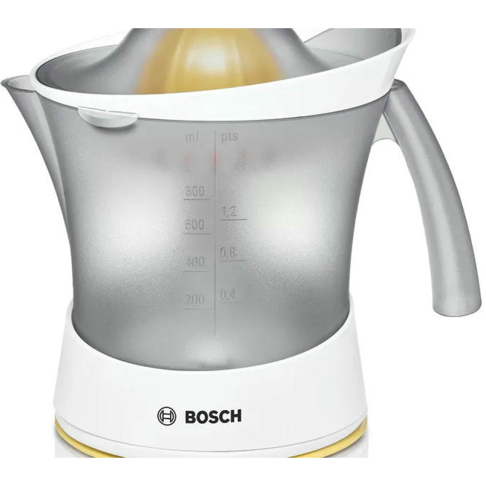Соковыжималка Bosch MCP3500N оснащена прорезиненными ножками во время работы устройство будет устойчиво стоять на столе. Большая емкость для отжима 800 мл. имеет мерную шкалу, легко снимается и чистится. Все пластиковые компоненты полностью безопасны и не содержат ВРА-веществ.
