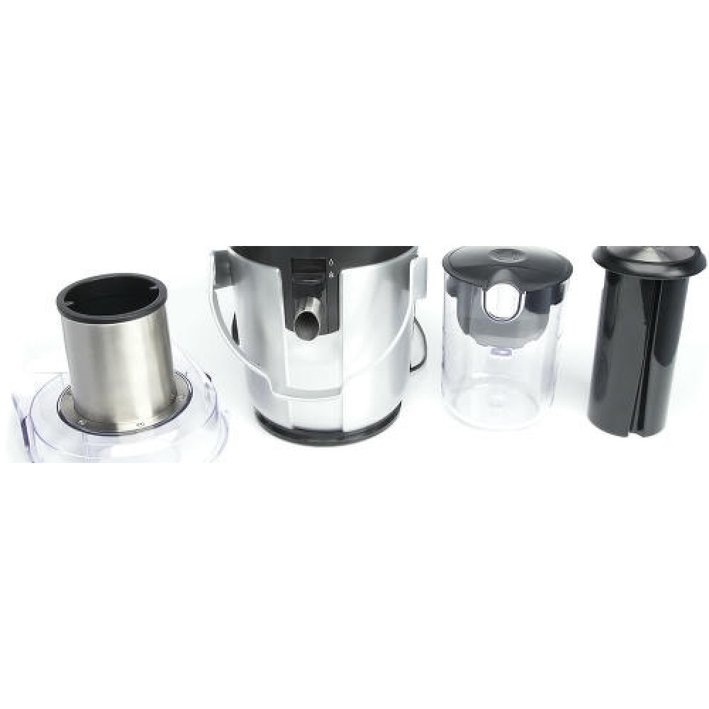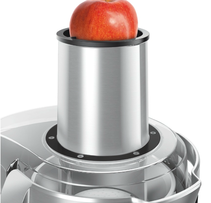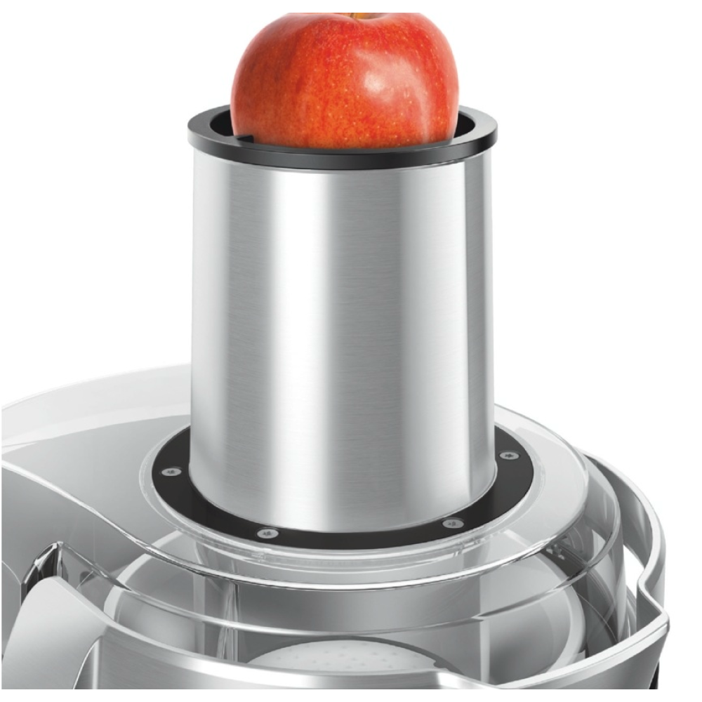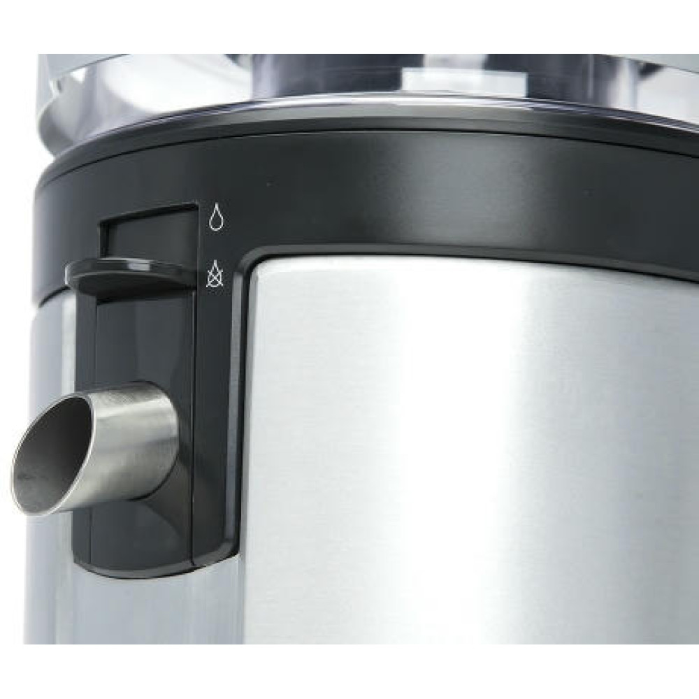 Мощный мотор и три скоростных режима позволяют подобрать оптимальный вариант для любых условий. Благодаря большому диаметру загрузочного отверстия можно перерабатывать целые плоды, что значительно экономит время. Противокапельная система предотвращает появление капель сока на рабочей поверхности после отжима.