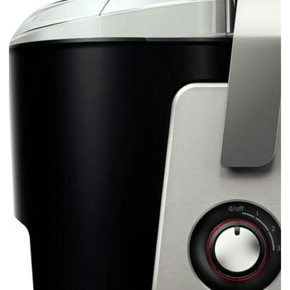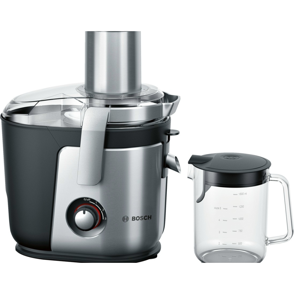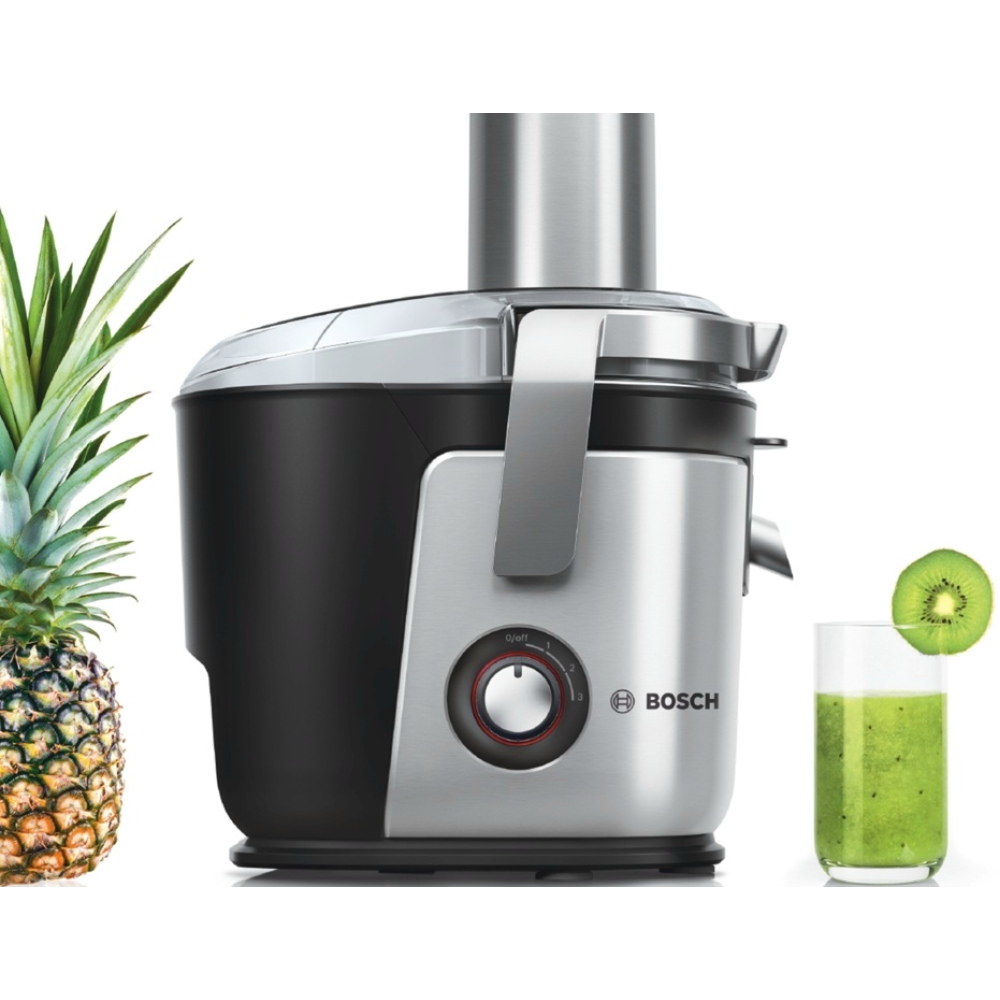 Мощный мотор и три скоростных режима позволяют подобрать оптимальный вариант для любых условий. Благодаря большому диаметру загрузочного отверстия можно перерабатывать целые плоды, что значительно экономит время. Противокапельная система предотвращает появление капель сока на рабочей поверхности после отжима.