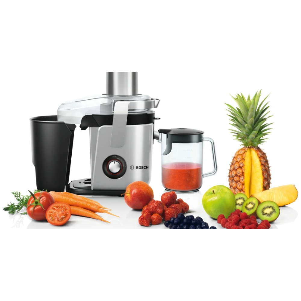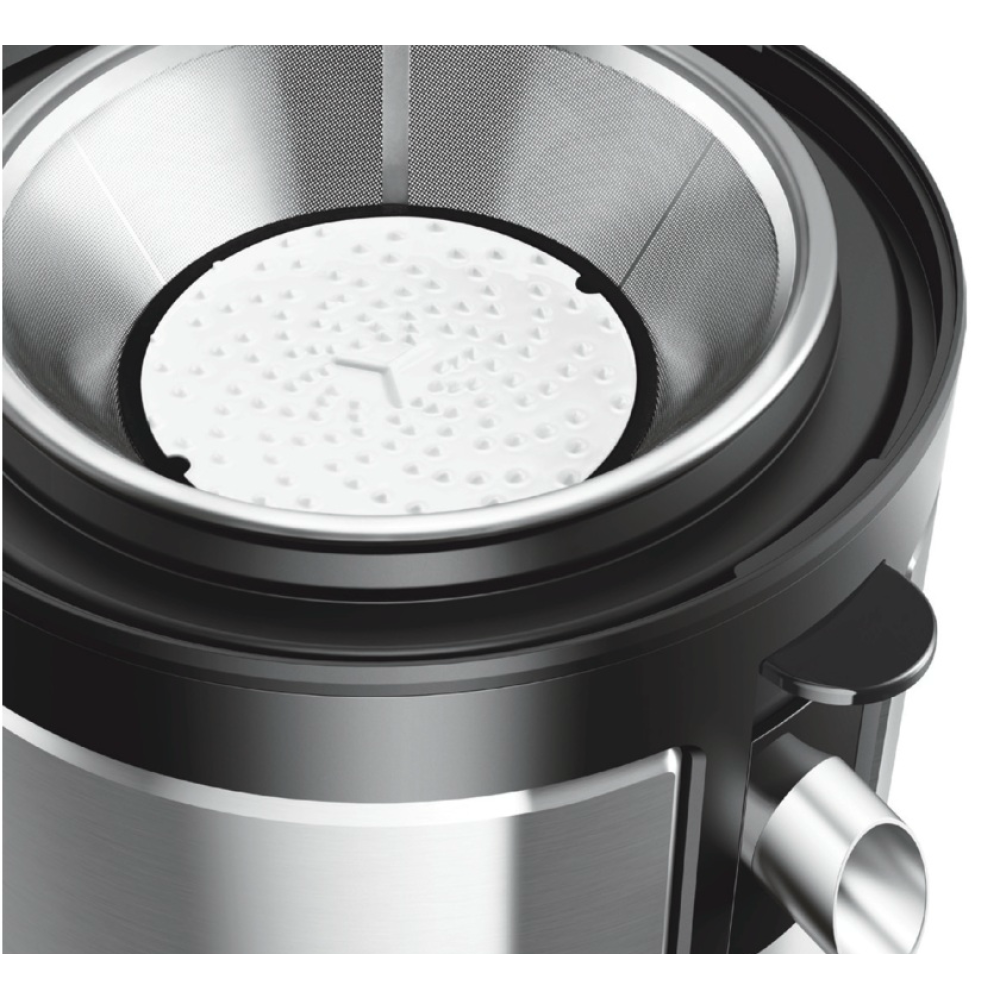 Керамический нож и сито, обработанное методом электрополировки, предотвращают застревание волокон и мякоти, что облегчает очистку после использования.