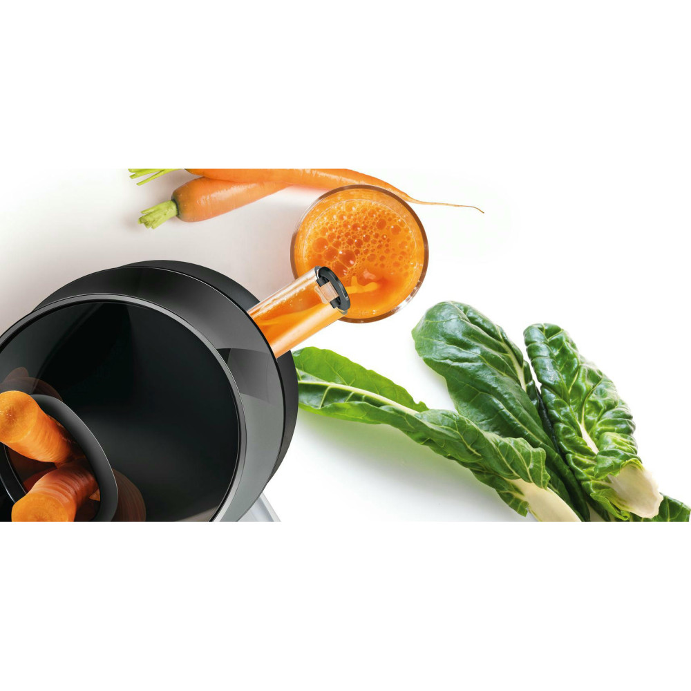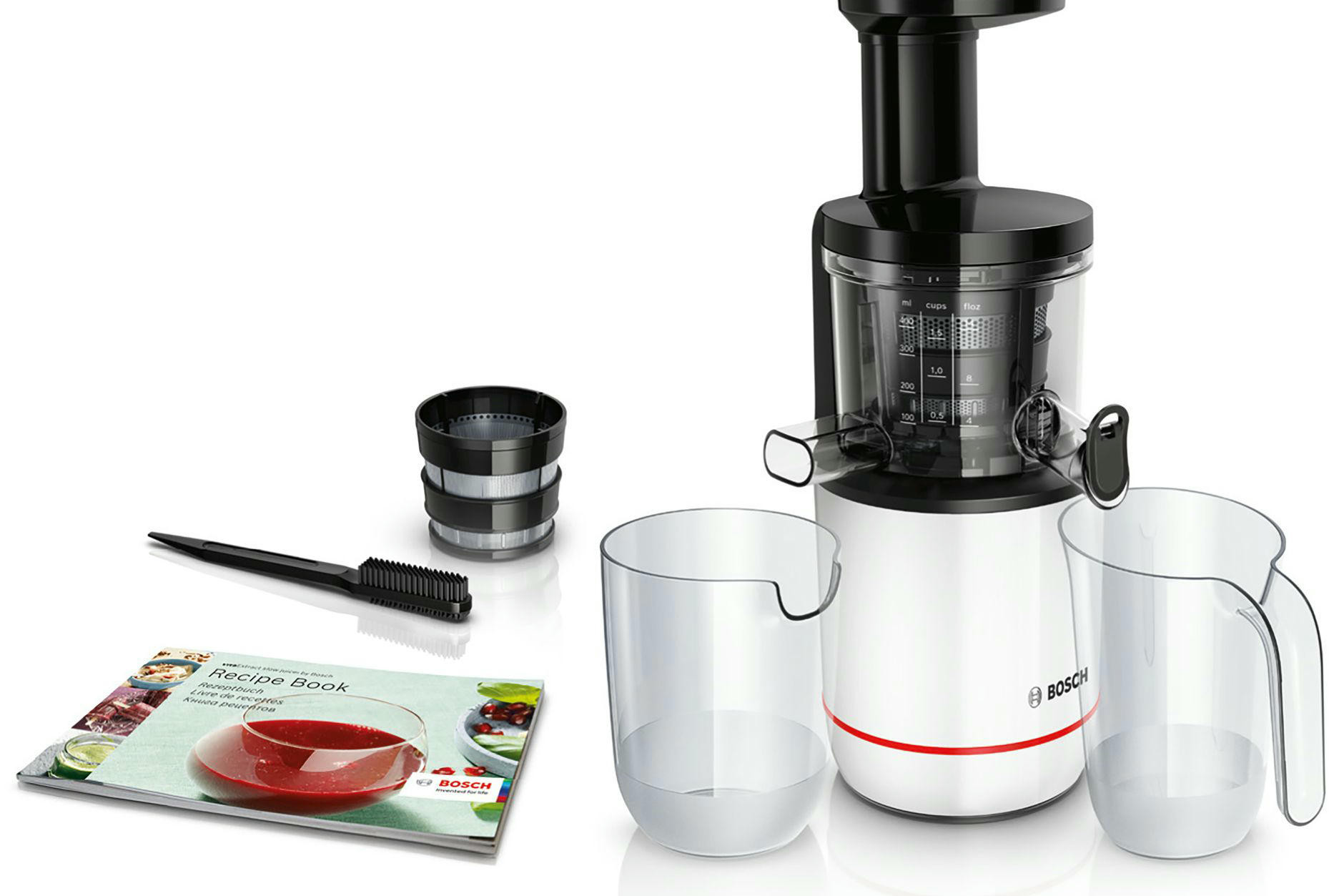 В комплекте прилагаются два фильтра с мелкими отверстиями для сока и крупными для смузи. Для удобства предусмотрен буклет с рецептами.