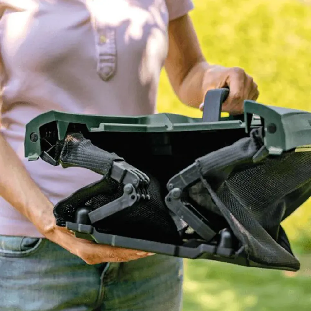 Вместительный травосборник уменьшает частоту опорожнения. Травосборник складывается для упрощения хранения.