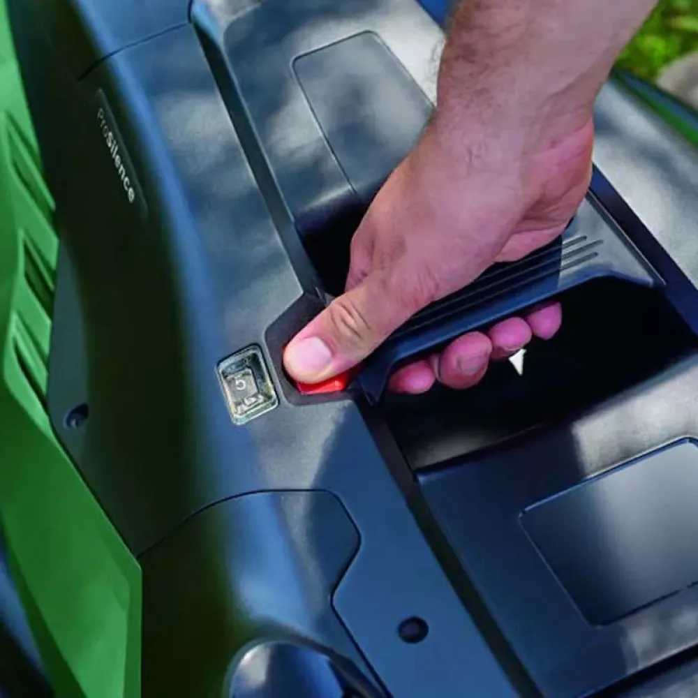 Электрическая газонокосилка имеет защиту от случайного включения и два рычага включения питания, позволяющих управлять машиной как левой, так и правой рукой. При отпускании рукоятки двигатель мгновенно останавливается. Поддерживаются два режима работы — выброс назад, который подойдет для среза высокой травы, и сбор в контейнер. За счет особой формы ножа во время кошения образуется мощный вихревой поток, поднимающий не только стебли, но и сухую листву. Скошенная трава и прочий легкий мусор засасываются в травосборник, поэтому поверхность газона остается чистой и ухоженной.
