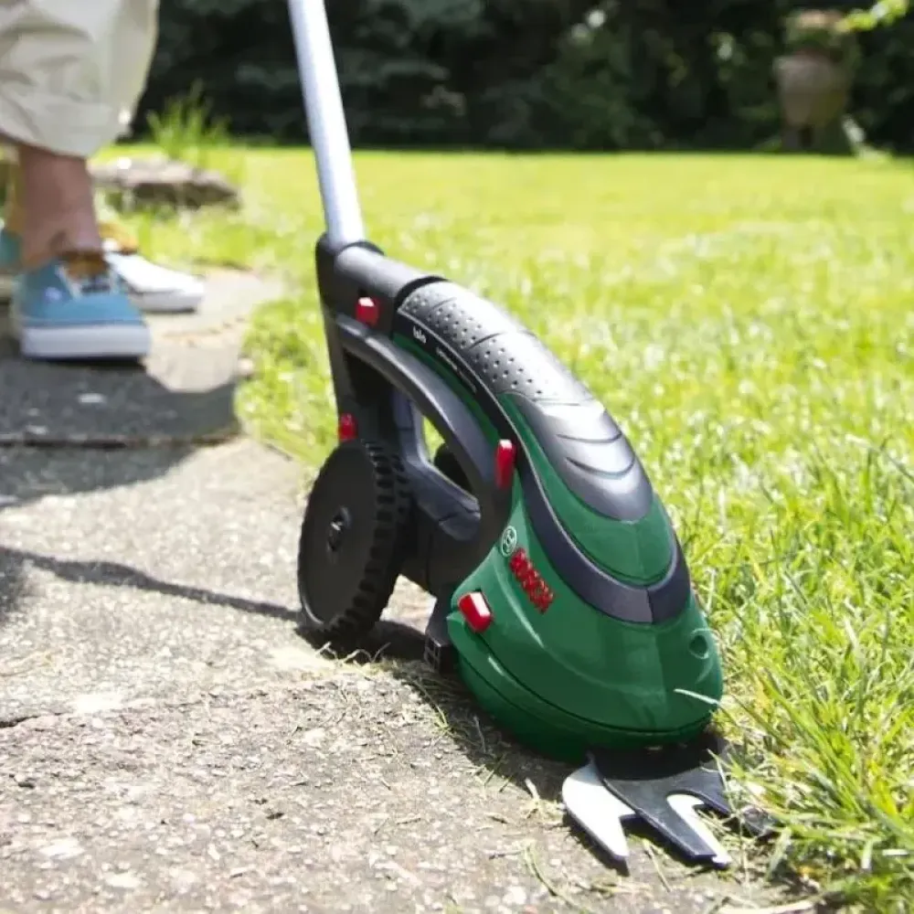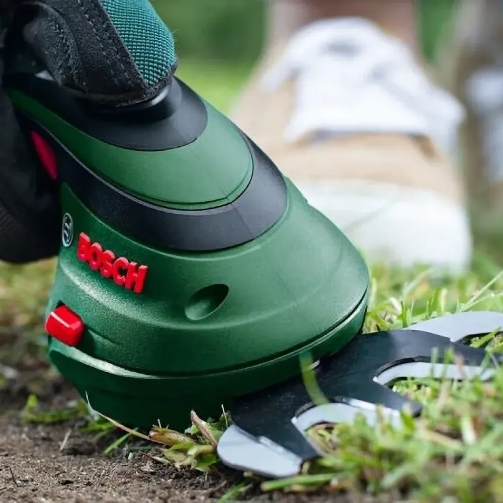 Аккумуляторные ножницы Bosch Isio комплектуются насадкой для стрижки травы Multi-Click шириной 8 см. Садовый инструмент поставляется в комплекте с мягкой сумкой и зарядным устройством.