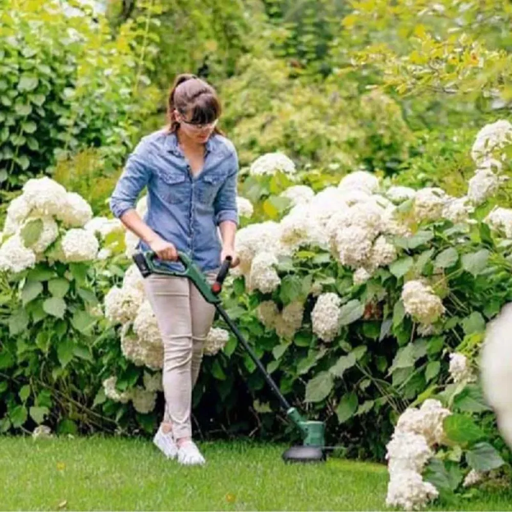 Аккумуляторный триммер Bosch EasyGrassCut 18V-230 06008C1A03 используется для ухода за газоном.