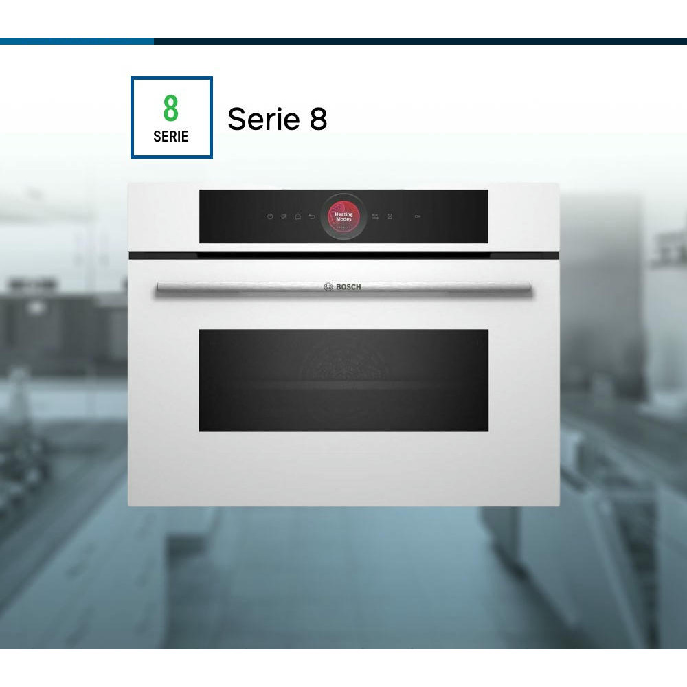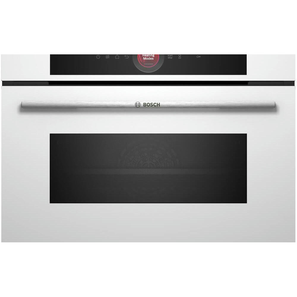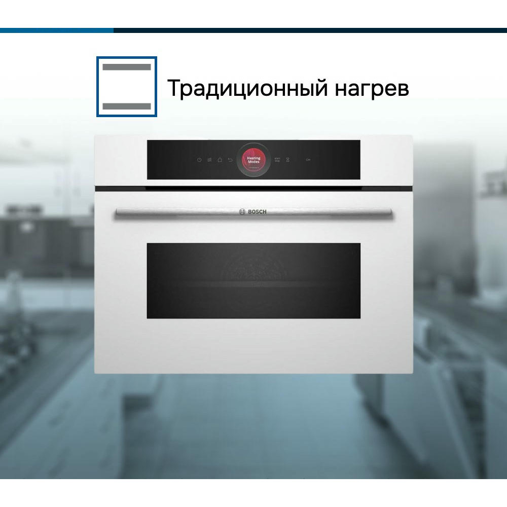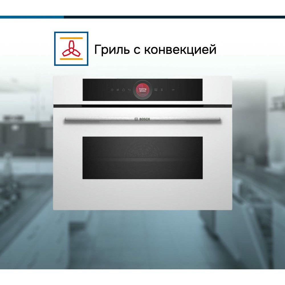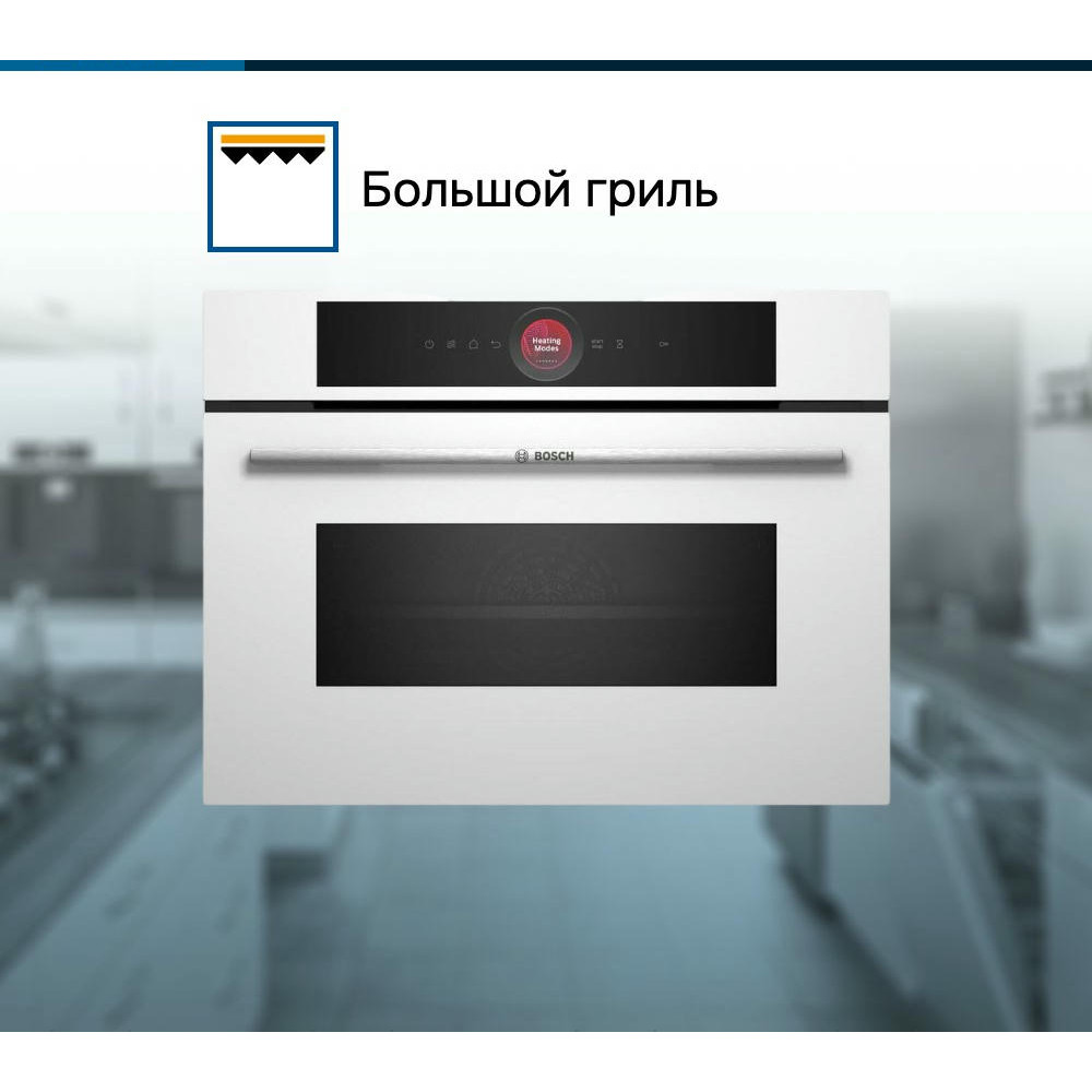 Духовой шкаф Bosch CMG7241W1 - это высококачественный прибор, который сочетает в себе элегантный дизайн и продуманные функции. Белый цвет корпуса идеально впишется в любой интерьер кухни. Благодаря объему в 45 литров, шкаф способен удовлетворить потребности даже большой семьи. Управление прибором осуществляется с помощью сенсорных элементов и 2.5-дюймового цветного TFT-дисплея, который обеспечивает простоту и удобство использования. Шкаф оборудован электронными часами и таймером, что позволяет контролировать процесс приготовления блюд и избегать пережаривания.