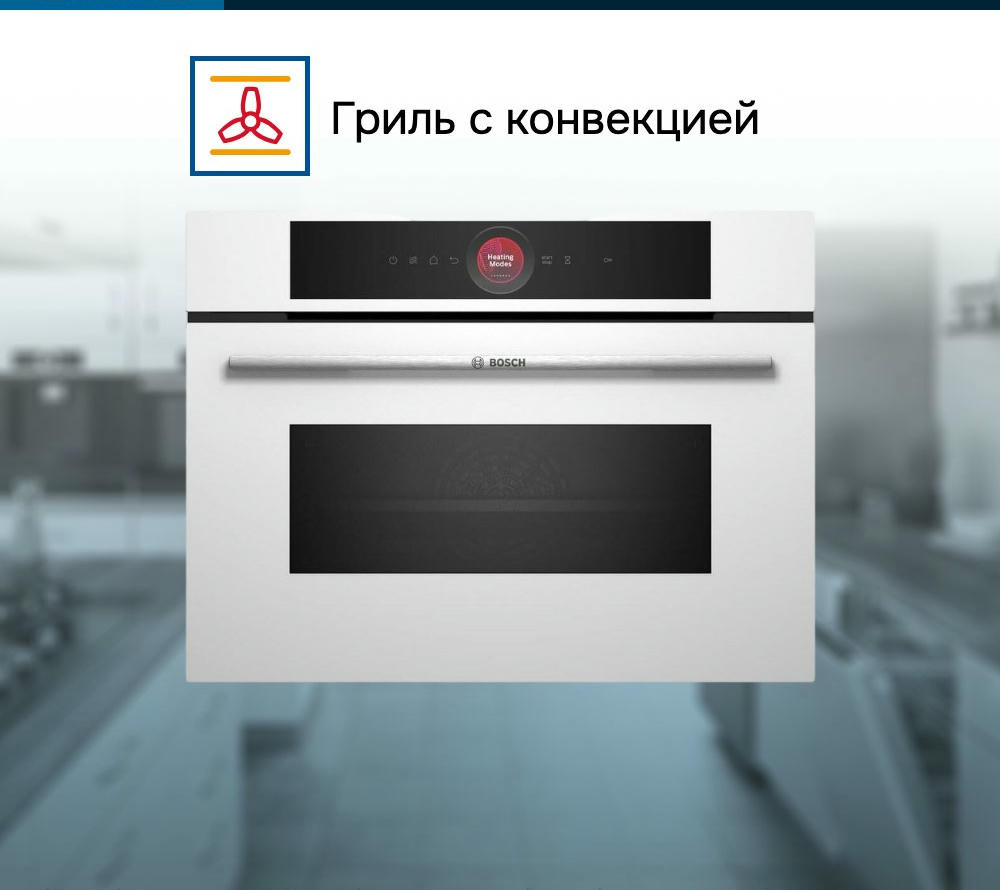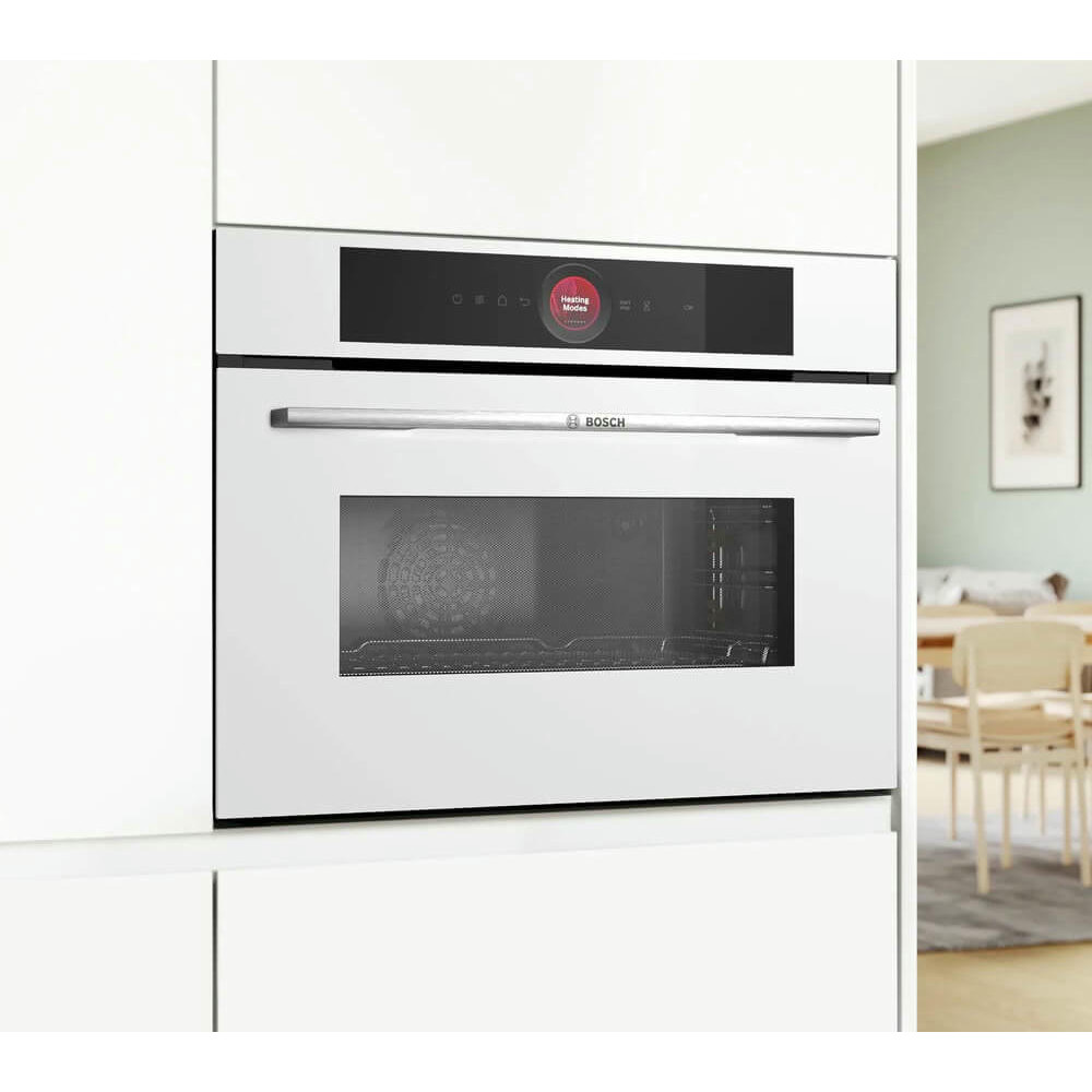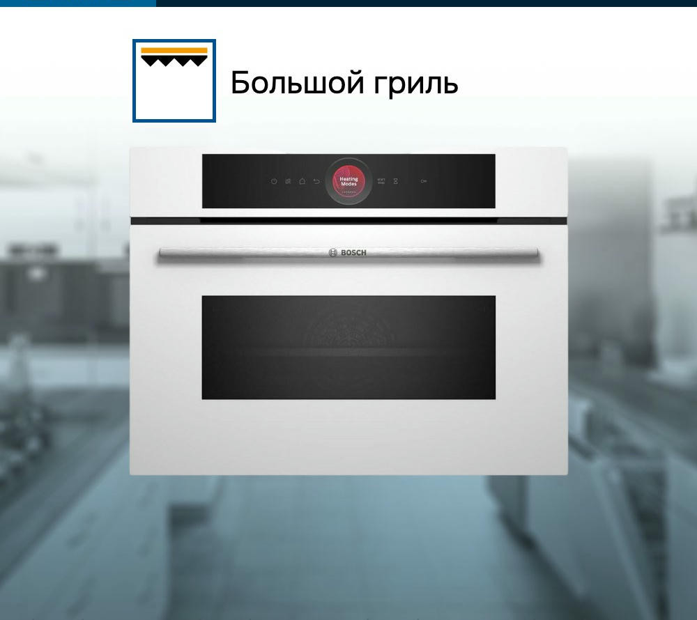 Система Home Connect дает возможность управлять прибором дистанционно через смартфон или планшет, что добавляет удобства в использовании. Духовой шкаф Bosch CMG7241W1 оснащен десятью режимами нагрева, включая верхний/нижний жар, большой и малый гриль, гриль с конвекцией, нижний жар, подогрев посуды и автоматический быстрый разогрев. Это позволяет приготовить практически любое блюдо, от классической пиццы до изысканного десерта. Внутреннее LED-освещение обеспечивает хороший обзор процесса приготовления пищи. Дверца шкафа откидная, с амортизатором SoftClose, что обеспечивает мягкое и плавное закрытие. Трехслойное остекление дверцы и система охлаждения прибора предотвращают перегрев и гарантируют безопасность использования. Блокировка от детей защищает от случайного включения или изменения режимов работы. В комплекте с шкафом идут комбинированная решетка и универсальный противень.