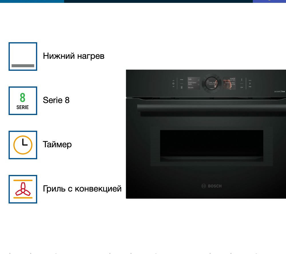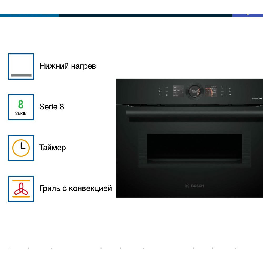 Духовой шкаф Bosch CMG8760C1 — это высококачественное устройство оснащенное электронным управлением. С его помощью вы сможете готовить разнообразные блюда, благодаря 13 режимам нагрева. Устройство оснащено функцией 4D-горячий воздух, которая обеспечивает равномерное распределение тепла внутри духовки, а также функцией горячего воздуха ECO, которая помогает сэкономить энергию. Этот духовой шкаф имеет внутренний объем 45 литров, что позволяет приготовить достаточное количество пищи для большой семьи или компании друзей.