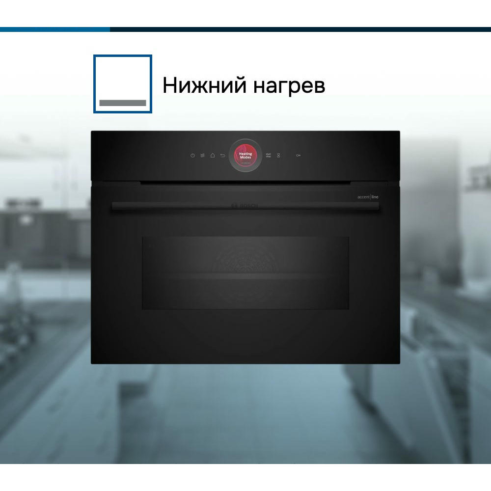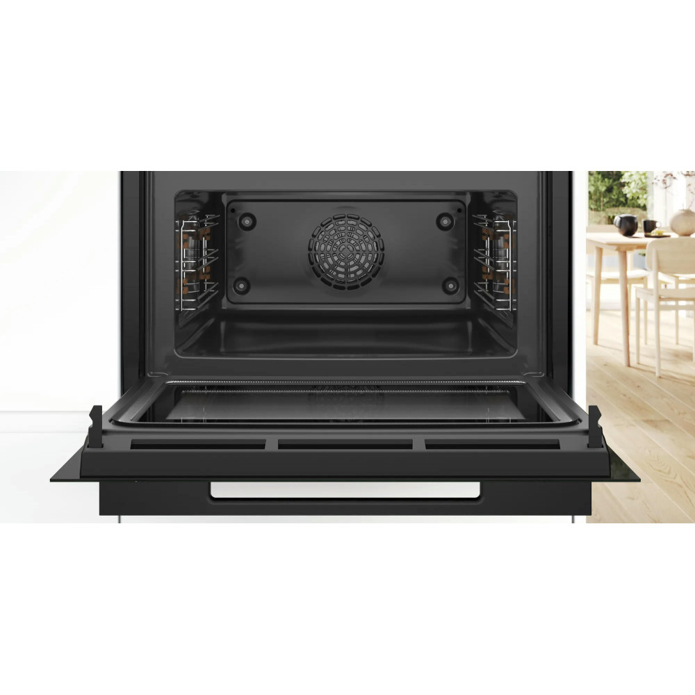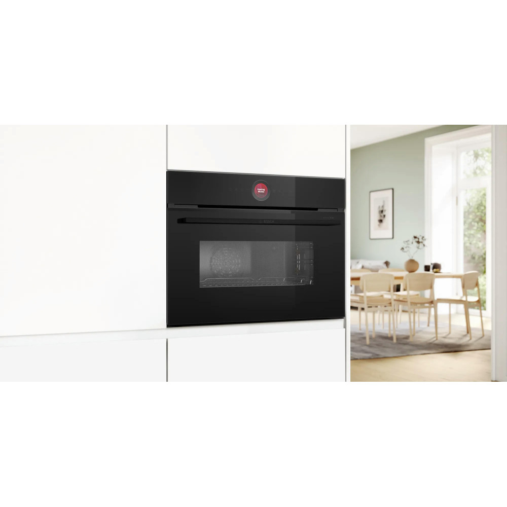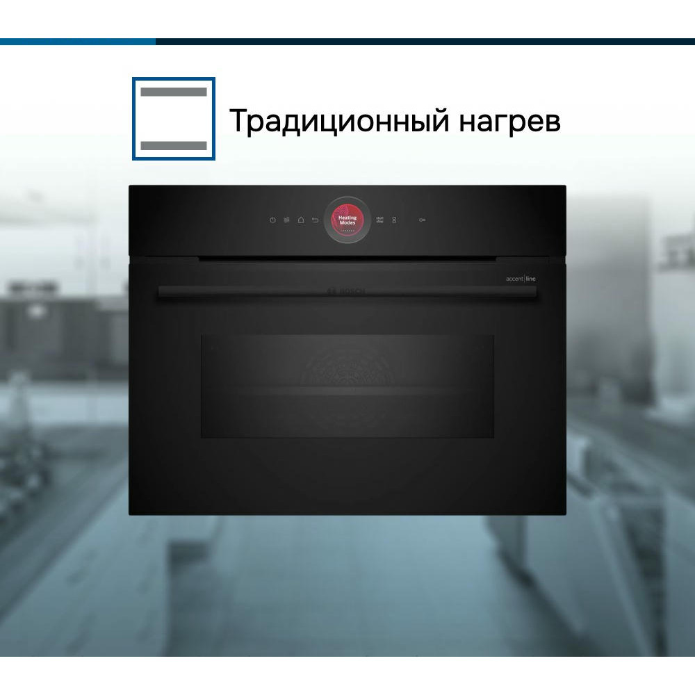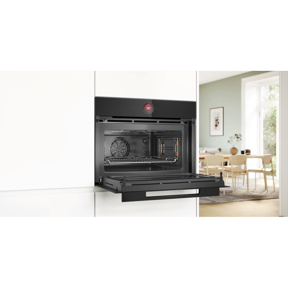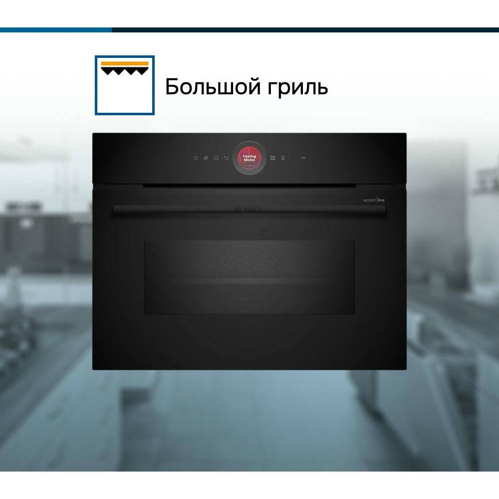 Духовой шкаф Bosch CMG9241B1 оснащен системой Home connect, которая позволяет управлять удаленно с помощью вашего смартфона. 2D горячий воздух равномерно распределяется на всех уровнях приготовления. Имеется режим микроволновой печи с настраиваемой мощностью.