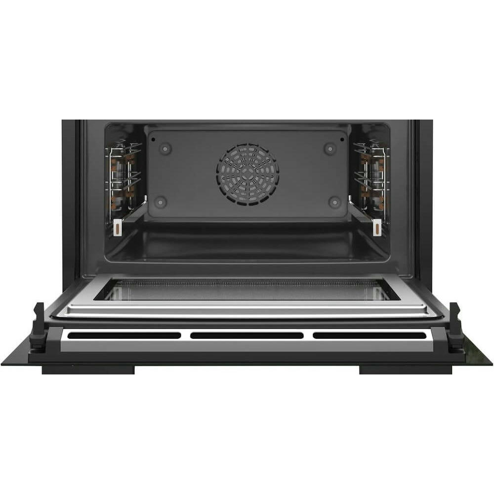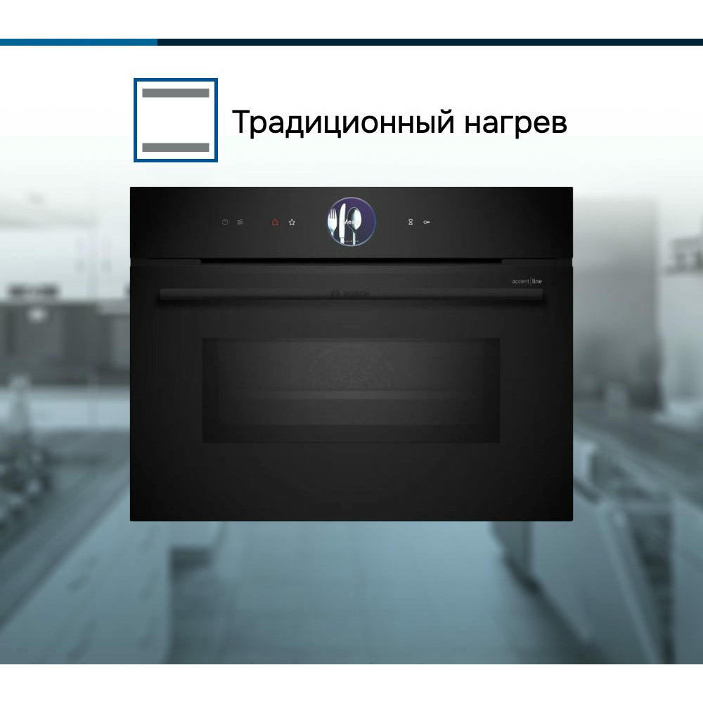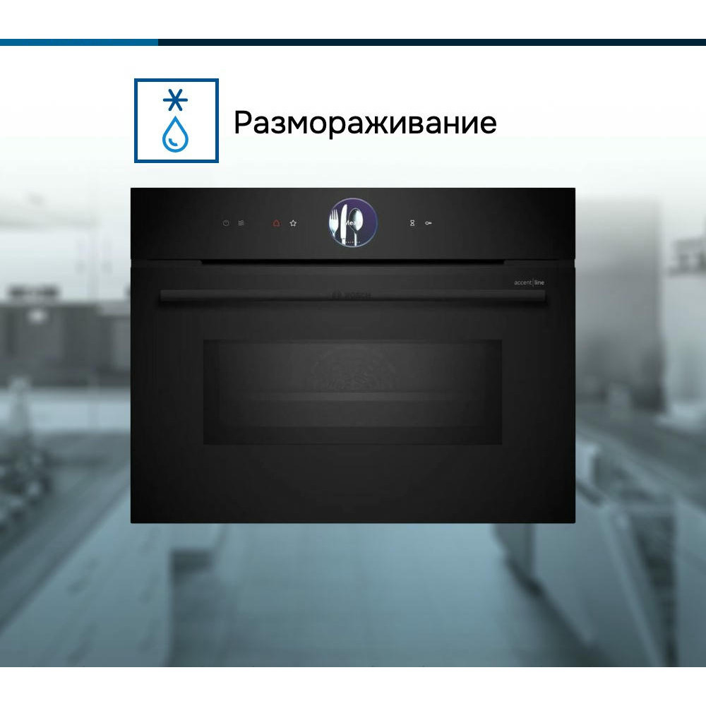 Особенностью духового шкафа Bosch CMG936AB1S является функция 4D-горячего воздуха, которая обеспечивает равномерное распределение тепла по всему объему печи. Режим горячего воздуха Gentle обеспечивает бережное приготовление блюд, сохраняя все витамины и полезные свойства продуктов. Верхний и нижний жар, верхний и нижний жар ECO, большой и малый гриль, гриль с конвекцией и термогриль, режим для пиццы и нижний жар - все эти функции делают этот прибор незаменимым помощником на кухне. Дополнительные функции, такие как подогрев посуды, поддержание температуры, функция Air Fry для приготовления блюд без добавления масла, размораживание и микроволновая печь с 5 уровнями мощности, делают этот духовой шкаф максимально универсальным. Автоматический быстрый разогрев позволяет сократить время приготовления блюд, а внутреннее освещение LED обеспечивает отличную видимость внутри печи.