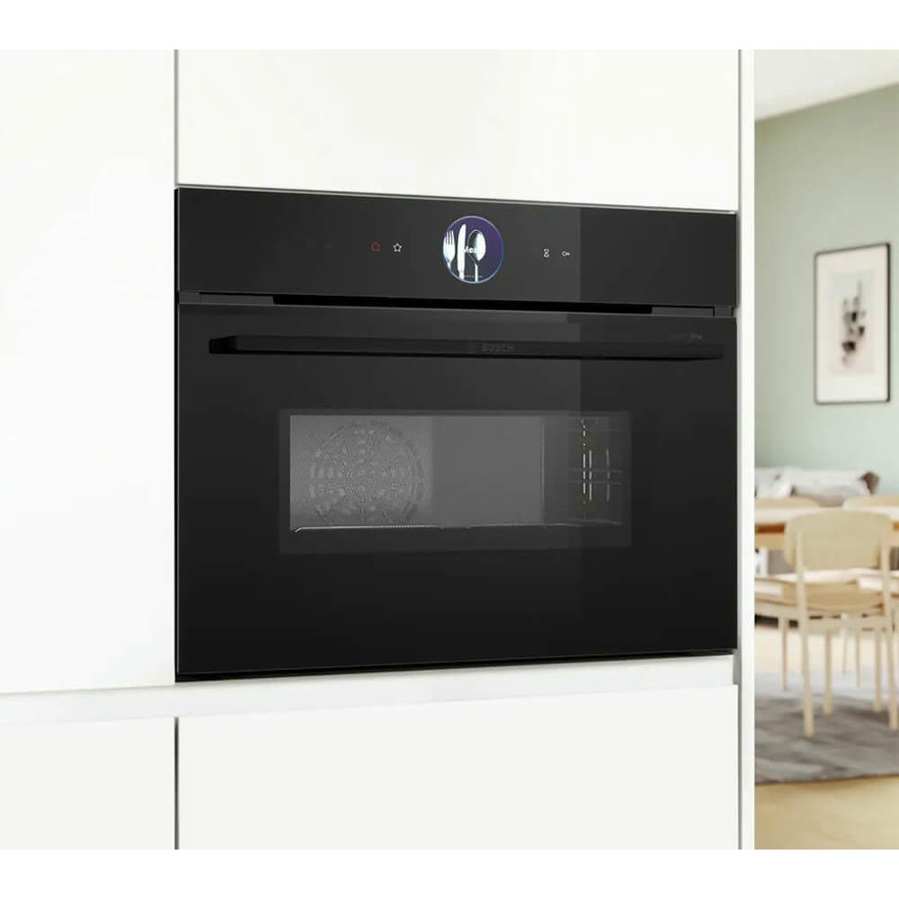 Духовой шкаф Bosch CMG936AB1S - это электрический прибор из серии Serie 8, который сочетает в себе элегантный дизайн и продуманные функциональные особенности. Внешний вид прибора подчеркнут черным цветом корпуса и современным 2.5-дюймовым цветным TFT-дисплеем с сенсорными кнопками. Управление духовым шкафом осуществляется электронно, что обеспечивает высокую точность и удобство использования. Встроенные электронные часы и таймер позволяют точно контролировать время приготовления блюд. Благодаря 13 режимам нагрева и диапазону температур от 30 до 300 градусов, вы сможете выбрать наиболее подходящий режим для приготовления любого блюда - от запеканки до пиццы.