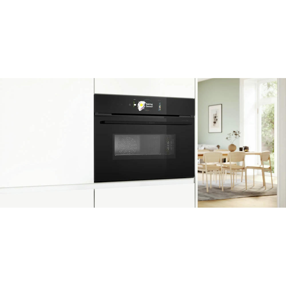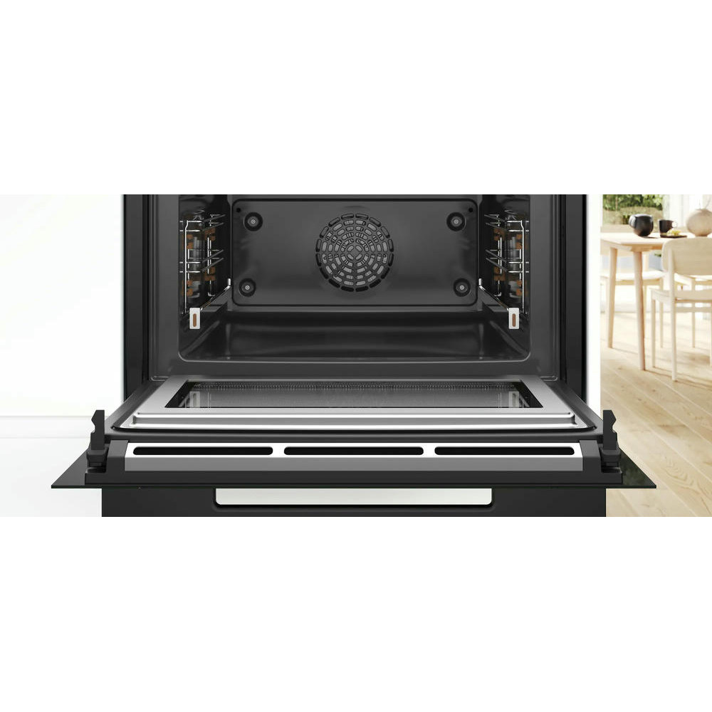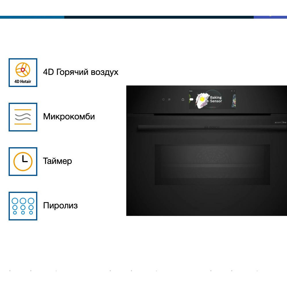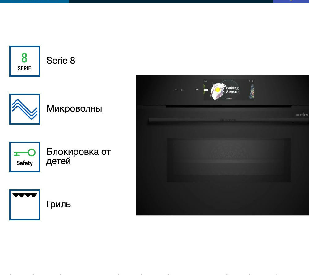 Духовой шкаф Bosch CMG978NB1 оснащена программой Assist, она отслеживает приготовление блюда и сама отключает устройство. Система Home connect позволяет управлять удаленно с помощью голосового управления. 4D горячий воздух равномерно распределяется на всех уровнях приготовления.