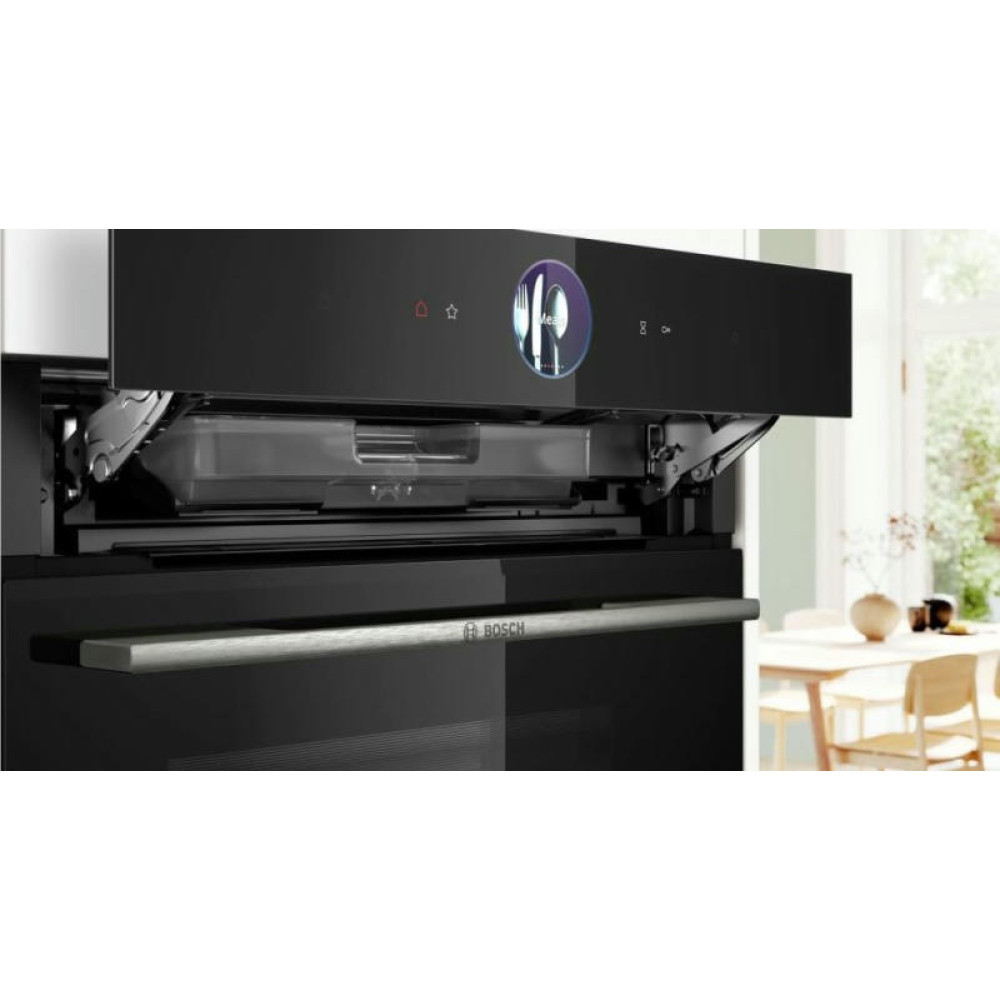 Духовой шкаф также обладает функцией Home Connect, что позволяет управлять им дистанционно через приложение на смартфоне или планшете. Это удобно, если вы хотите предварительно нагреть духовку или проверить статус приготовления пищи, не вставая с дивана.