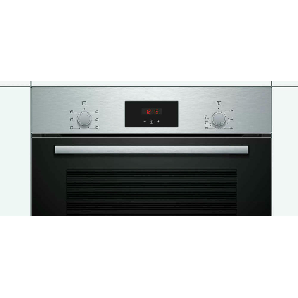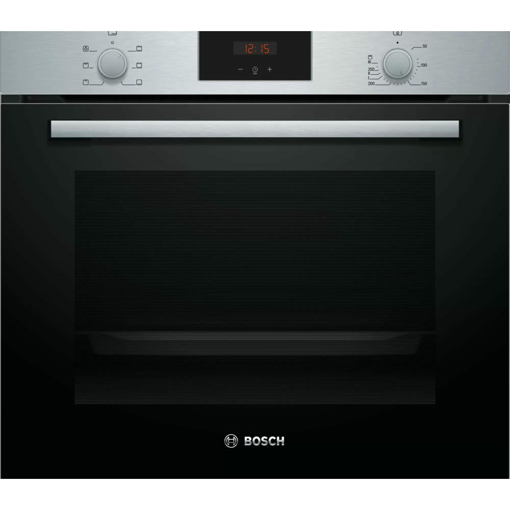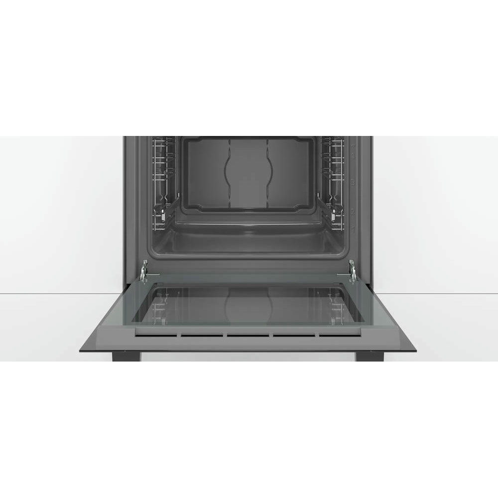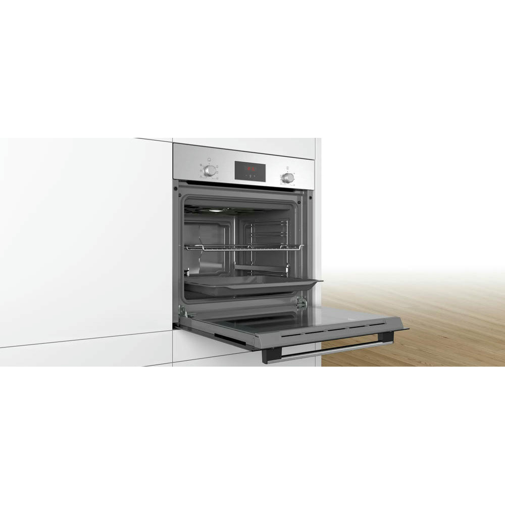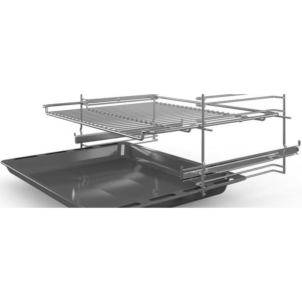 Духовой шкаф Bosch HAF113ES1 оснащен системой охлаждения, поэтому рядом стоящая мебель не будет нагреваться. Управление осуществляется при помощи утапливаемых поворотных переключателей и LED дисплея. Телескопические направляющие на 1 уровне гарантируют безопасное размещение и извлечение противня.