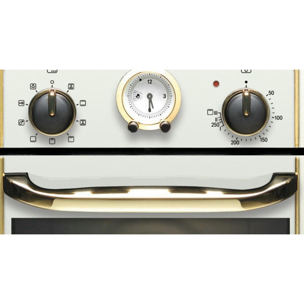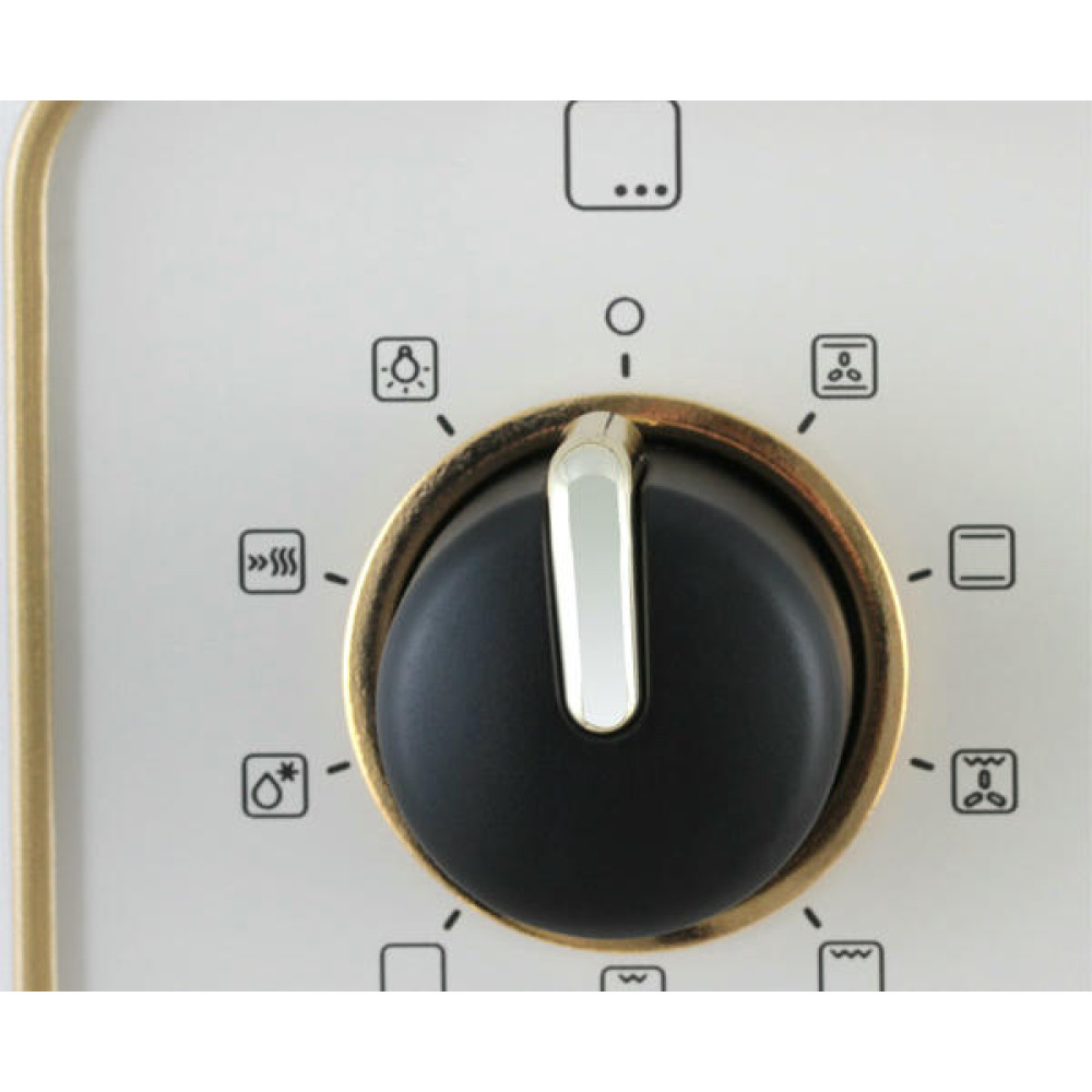 Регулятор температуры рассчитан на диапазон от 50 до 270 _C. Часы, выполненные в классическом «механическом» дизайне, позволяют запрограммировать начало и продолжительность приготовления пищи. Можно также включить режим таймера.