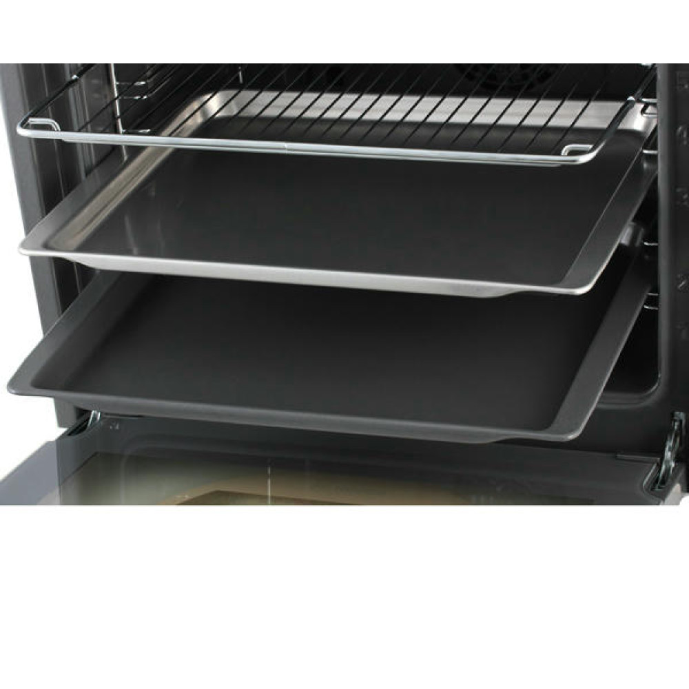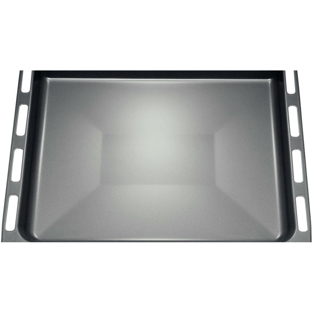 Бош HBA 23BN21 включает в комплект поставки решётку, эмалированный и алюминиевый противни. Для их установки предусмотрено пять уровней. Противни и решётки не должны касаться стекла дверцы. Сама дверца выполнена из тройного закалённого стекла. Внутренняя поверхность полностью стеклянная, что существенно облегчает её мытьё. Рабочая камера покрыта эмалью лёгкой очистки GranitEnamel. Поверхность при этом получается ровной и гладкой, стойкой к случайным ударам и царапинам, воздействию кислот. Её структура позволит вам забыть о пятнах пригоревшего жира на стенках. Система охлаждения запускается автоматически, по окончании работы устройства. Эта опция исключает возможность его перегрева и предотвращает риск поломки.