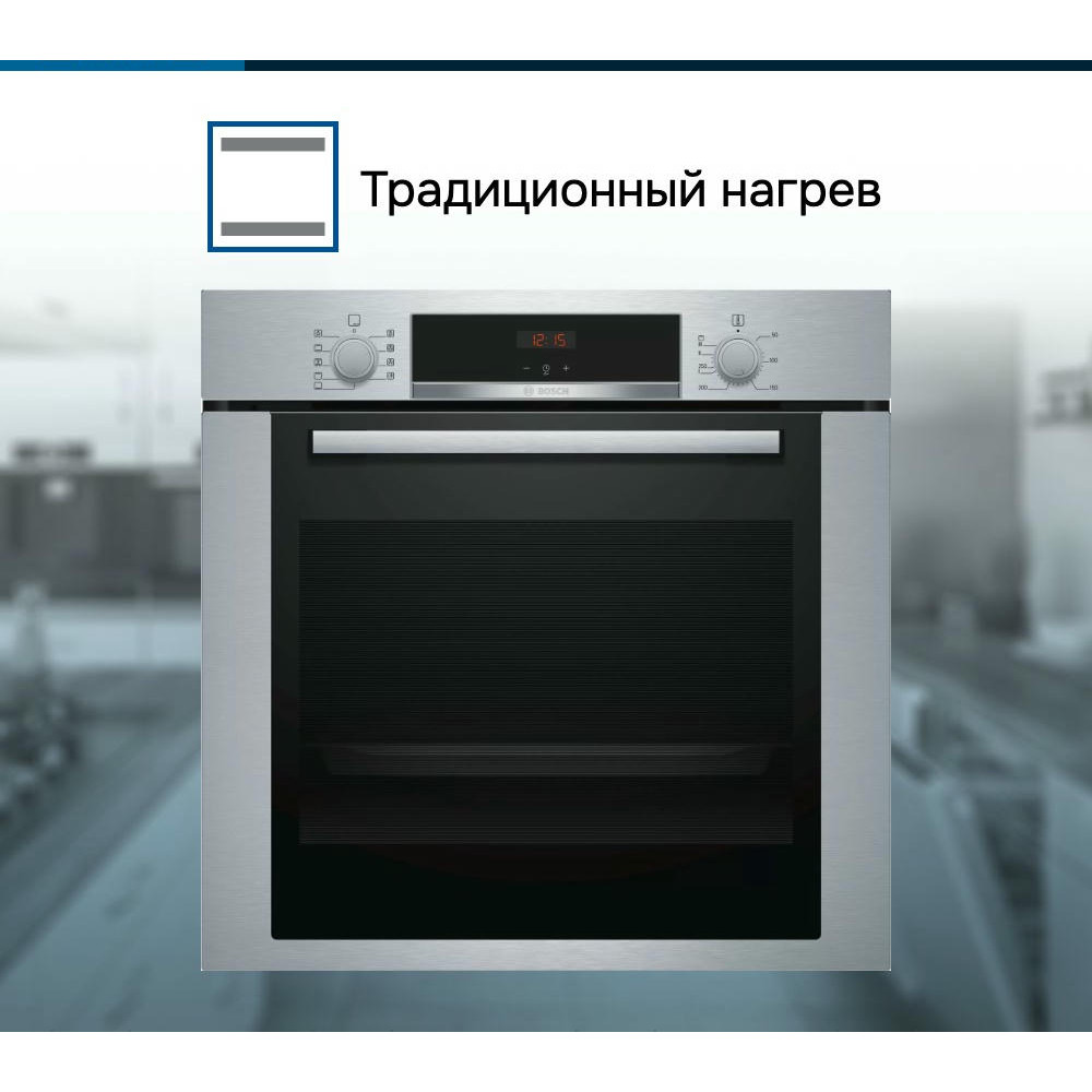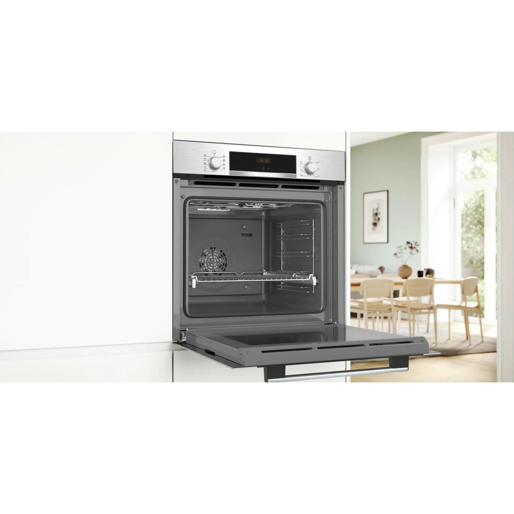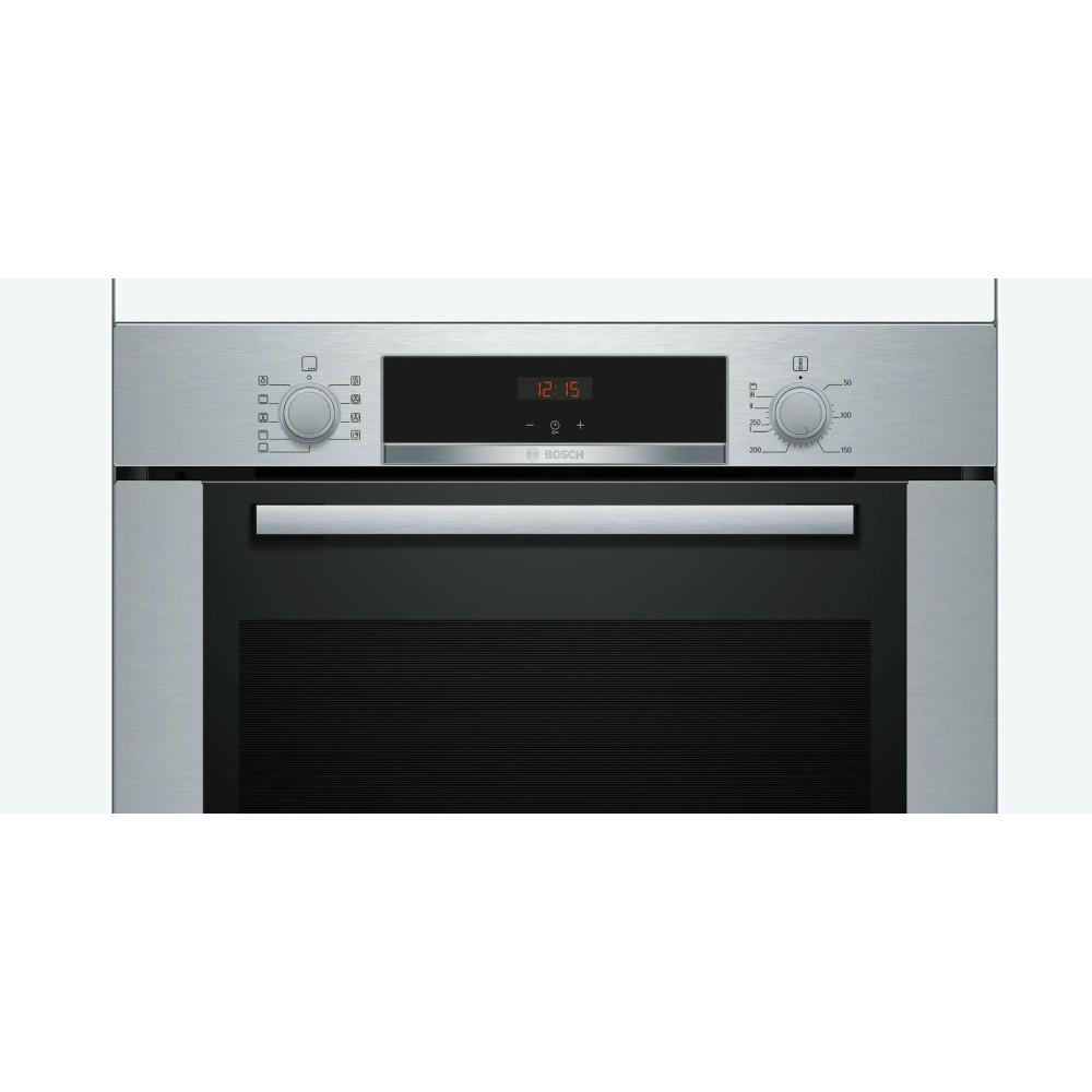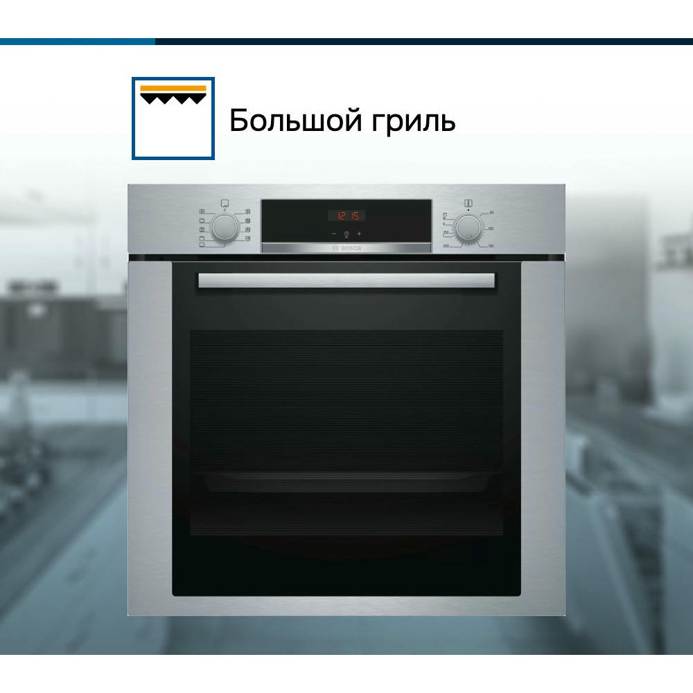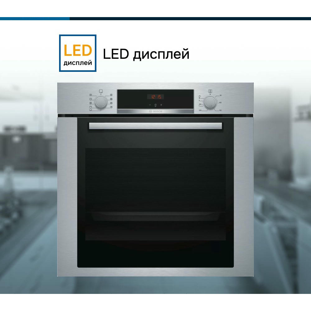 Духовой шкаф Bosch HBA3340S0 отличается утонченным дизайном и высокой функциональностью. Она выполнена в цвете нержавеющей сталь, что придает ей современный и стильный вид. Сенсорные поворотные утапливаемые элементы управления и LED дисплей делают использование прибора максимально удобным и простым. Особое внимание стоит уделить функционалу этого прибора. Он обладает 8 режимами нагрева и широким диапазоном температур от 50 до 275 градусов. Среди особенностей - 3D-горячий воздух, горячий воздух Gentle, верхний/нижний жар, большой гриль, гриль с конвекцией. Термогриль, режим для пиццы, нижний жар и автоматический быстрый разогрев. Это позволяет готовить разнообразные блюда, сохраняя их вкус и полезные свойства. Внутреннее освещение галогенное, что делает процесс приготовления блюд контролируемым.