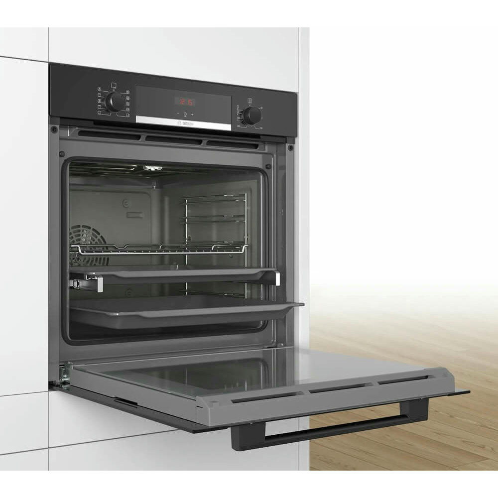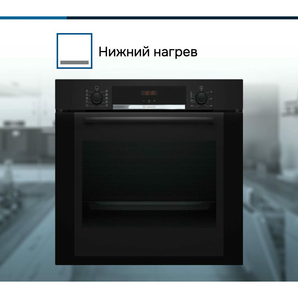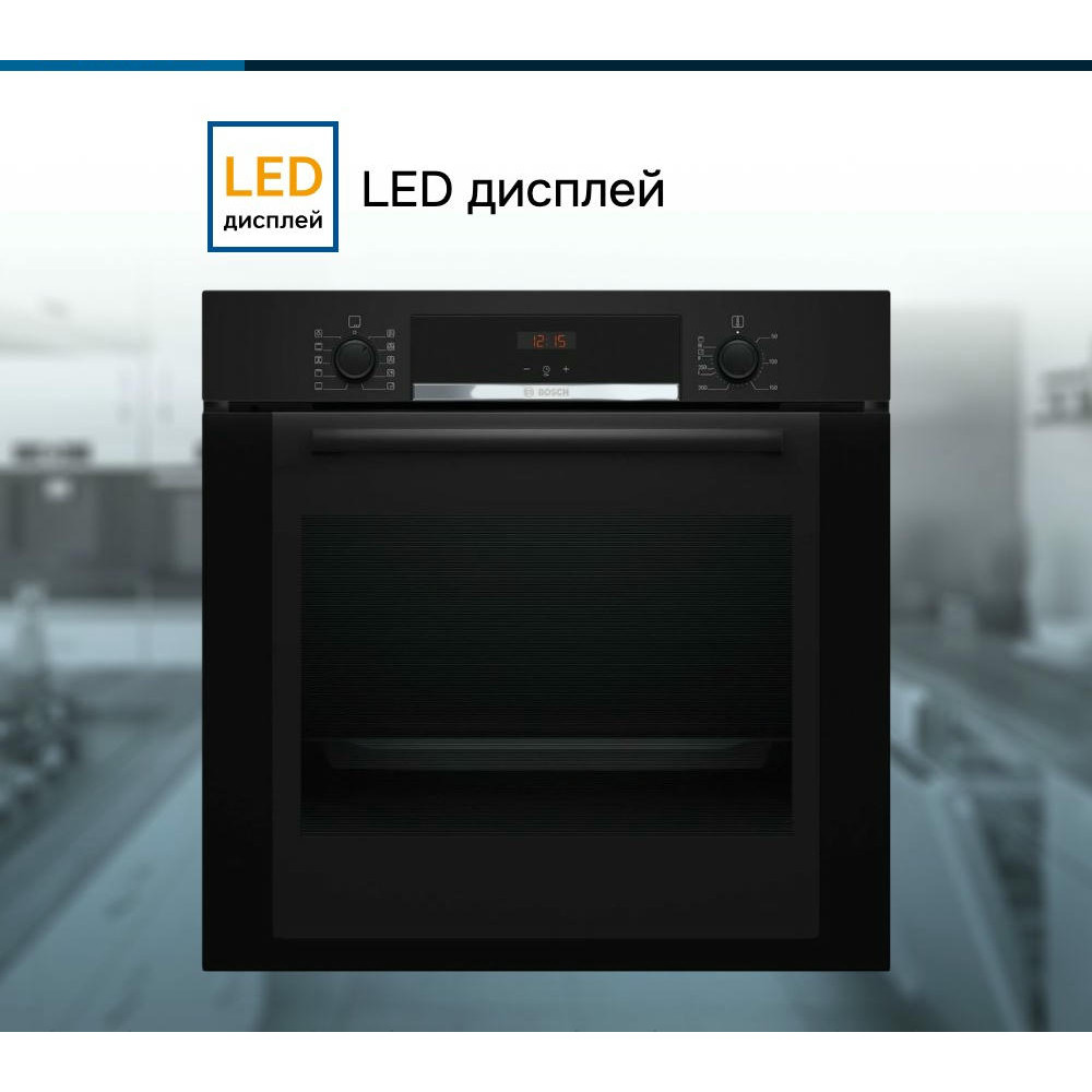 Электрический духовой шкаф Bosch HBA3540B0 обладает прочным и стильным черным корпусом, который идеально впишется в любой интерьер кухни. Фурнитура устройства также выполнена в черном цвете, что придает ему современный и элегантный вид. Управление шкафом осуществляется с помощью механических сенсорных поворотных элементов, что делает его использование максимально удобным и простым. На передней панели устройства расположен LED-дисплей с электронными часами и таймером, который поможет вам точно контролировать время приготовления пищи. Одной из особенностей этого духового шкафа является его внутренний объем в 71 литр, что позволяет готовить большое количество продуктов одновременно. Он оснащен семью режимами нагрева и способен работать в диапазоне температур от 50 до 275 градусов Цельсия. Благодаря этому, вы сможете выбрать оптимальный режим для приготовления любого блюда.