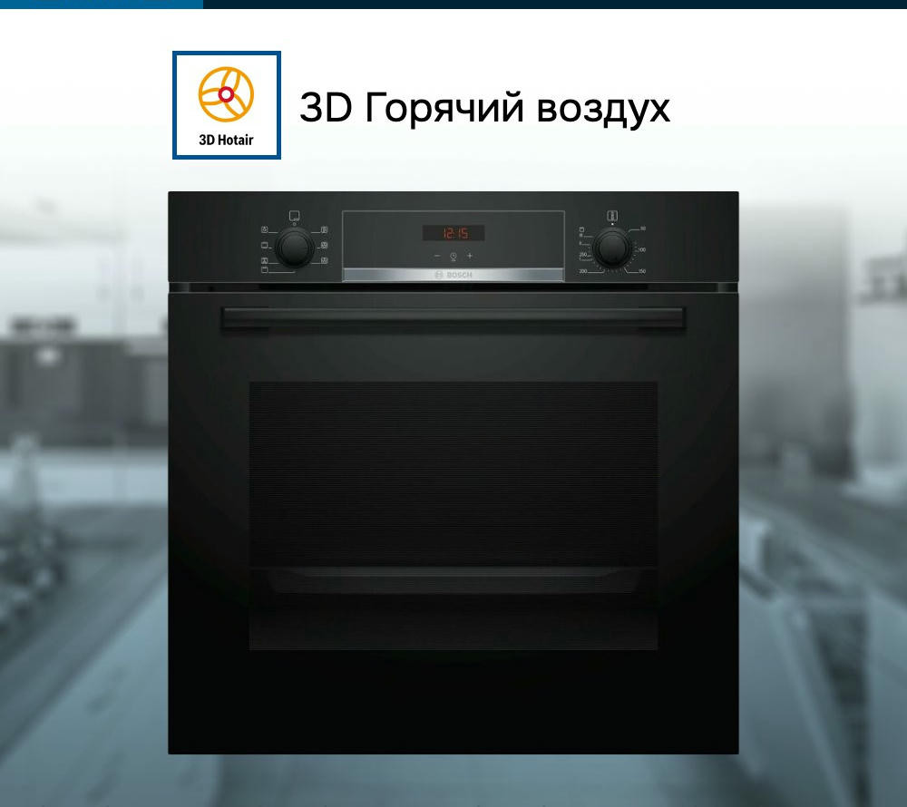 Духовой шкаф Bosch HBA513BB1 — конвекционная модель, выполненная в элегантном черном цвете. Благодаря своим небольшим размерам — 56 на 58.5 см. — он подойдет для кухонь любых размеров и впишется в интерьер. Вентилятор равномерно распределяет горячий воздух по всей камере, что незаменимо при приготовлении мяса и выпечки. В комплект также входят универсальный противень и комбинированная решетка.