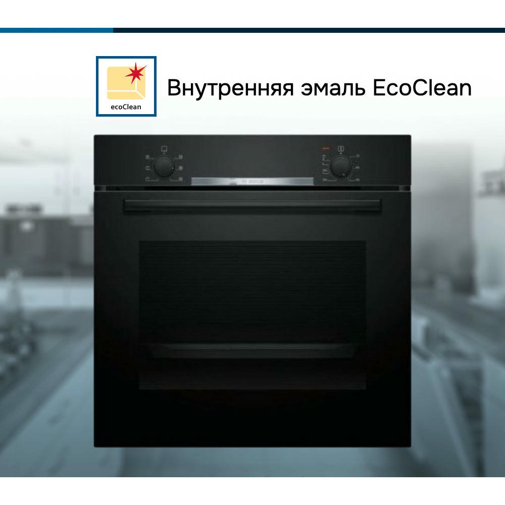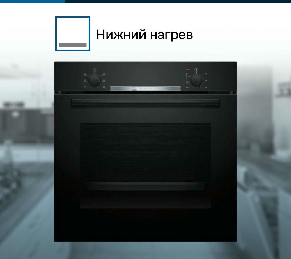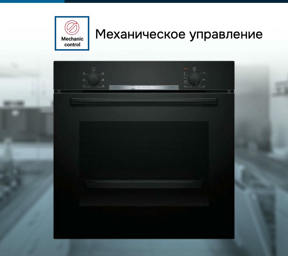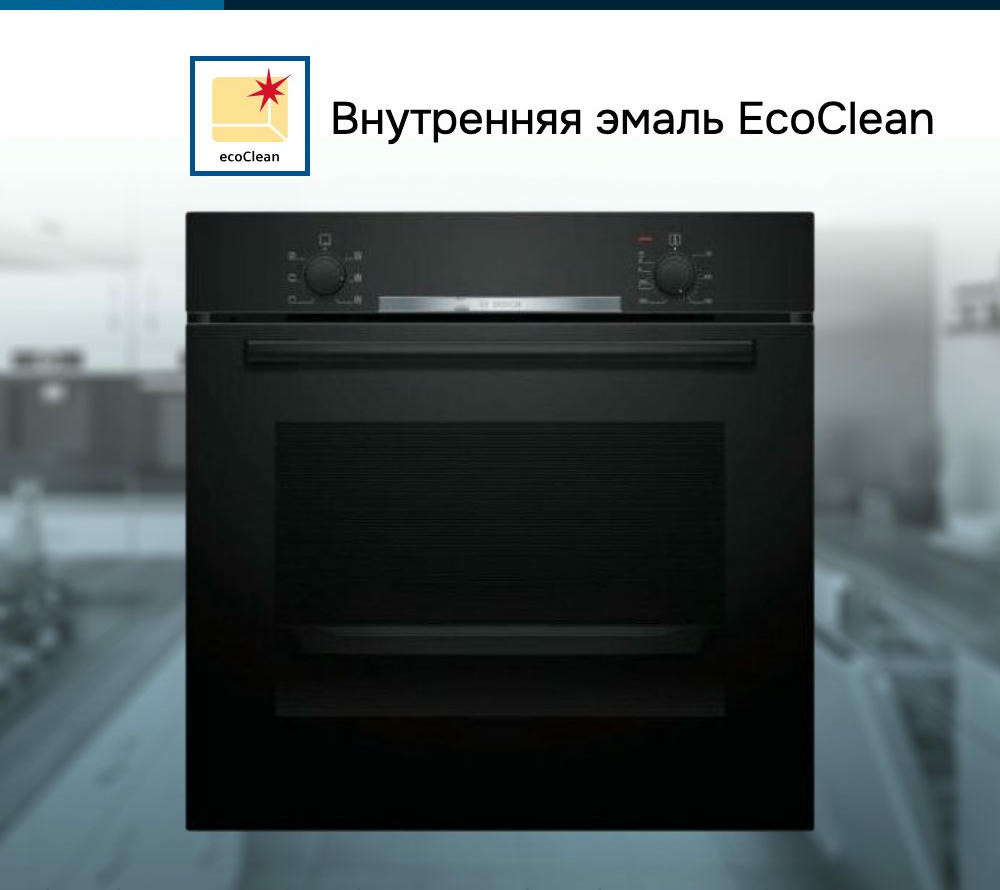 Духовой шкаф Bosch HBA530BB0S оснащен механическим управлением оно удобно в управление, даже если у вас мокрые руки. Имеется 4 режима нагрева, среди них гриль с конвекцией, что позволит готовить при низких температурах за счёт одновременной работы нагревательного элемента и вентилятора. Очистка EcoClean на задней стенке разрушает брызги жира во время приготовления.