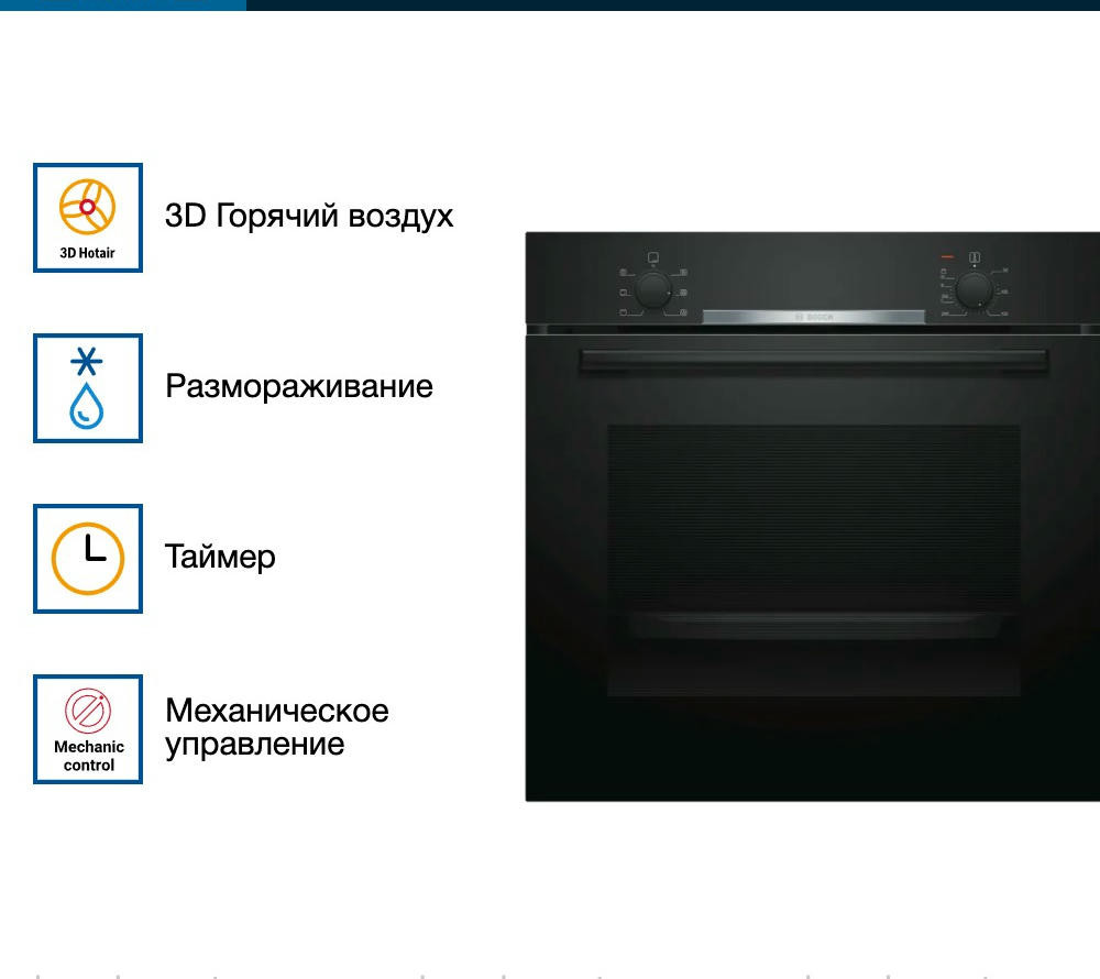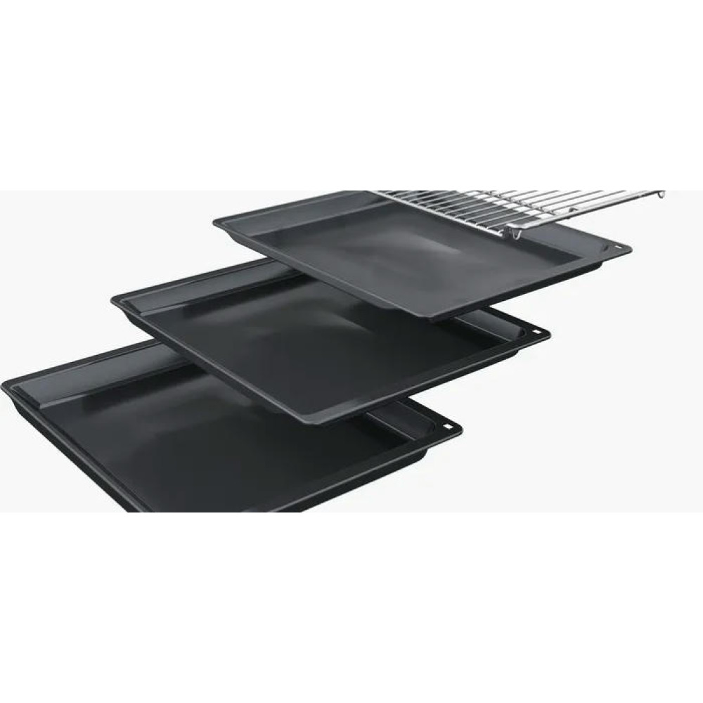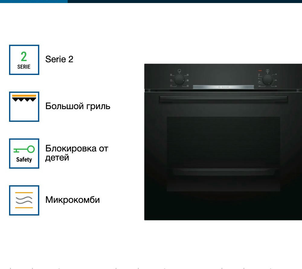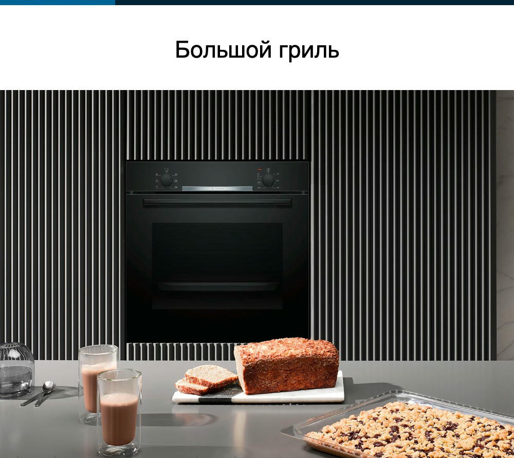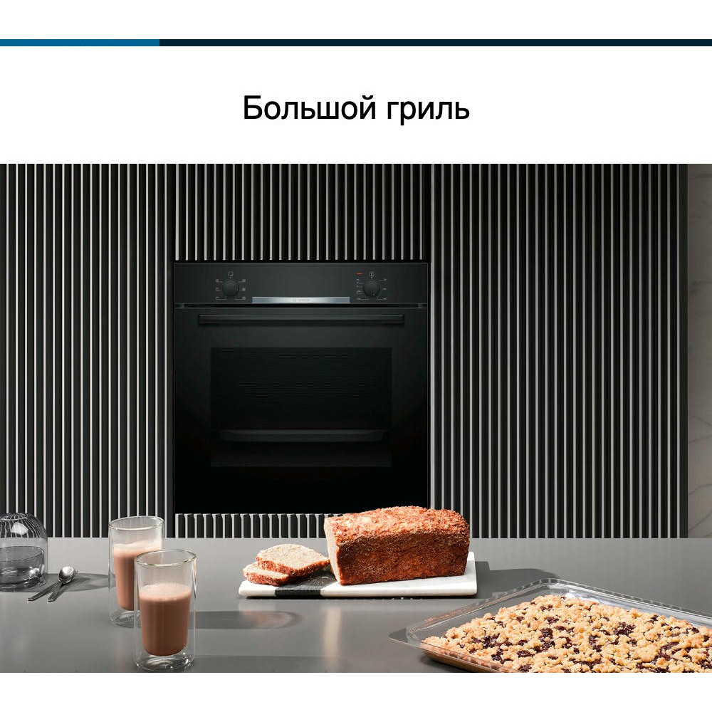 Духовой шкаф Bosch HBA530BBOS — высокотехнологичное устройство, созданное для тех, кто ценит комфорт, функциональность и стиль в кухонной технике. Современный черный дизайн делает эту модель незаменимым элементом любого интерьера, подчеркивая его изысканность и элегантность. Модель выполнена в строгих геометрических формах, что подчеркивает ее минималистичный и современный стиль. Ширина устройства составляет 59.4 см, высота — 59.5 см, а глубина — 56.7 см. Эти размеры позволяют встраивать шкаф в стандартные ниши, что обеспечивает удобство использования и экономию пространства на кухне. Управление устройством осуществляется с помощью механических поворотных элементов. Это обеспечивает простоту и надежность использования, а также дает возможность точно настроить все необходимые параметры. Встроенные электронные часы позволяют контролировать время приготовления блюд, а таймер облегчает процесс управления прибором. Духовой шкаф обладает внушительным внутренним объемом в 71 литр, что позволяет приготовить большое количество блюд одновременно. Количество режимов нагрева составляет 4, а диапазон температур варьируется от 50 до 275 градусов. Это делает возможным приготовление самых разнообразных блюд, от выпечки до мяса и рыбы. Одной из особенностей модели является функция 3D-горячего воздуха. Она обеспечивает равномерное распределение тепла по всей печи, что гарантирует идеальное приготовление блюд. Также стоит отметить функцию автоматического быстрого разогрева, которая существенно экономит время приготовления. Безопасность использования обеспечивается благодаря функции блокировки от детей. Это позволяет избежать нежелательного включения прибора маленькими детьми. Также стоит отметить наличие системы очистки EcoClean, которая облегчает процесс ухода за прибором. В комплекте с духовым шкафом идут эмалированный противень, универсальный противень и алюминиевый противень. Это позволяет готовить разнообразные блюда и экспериментировать с рецептами.