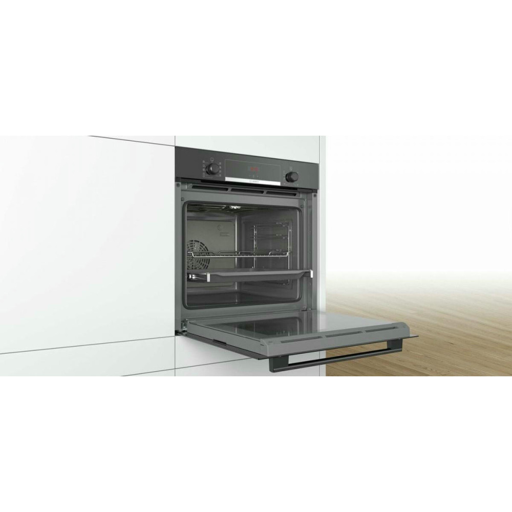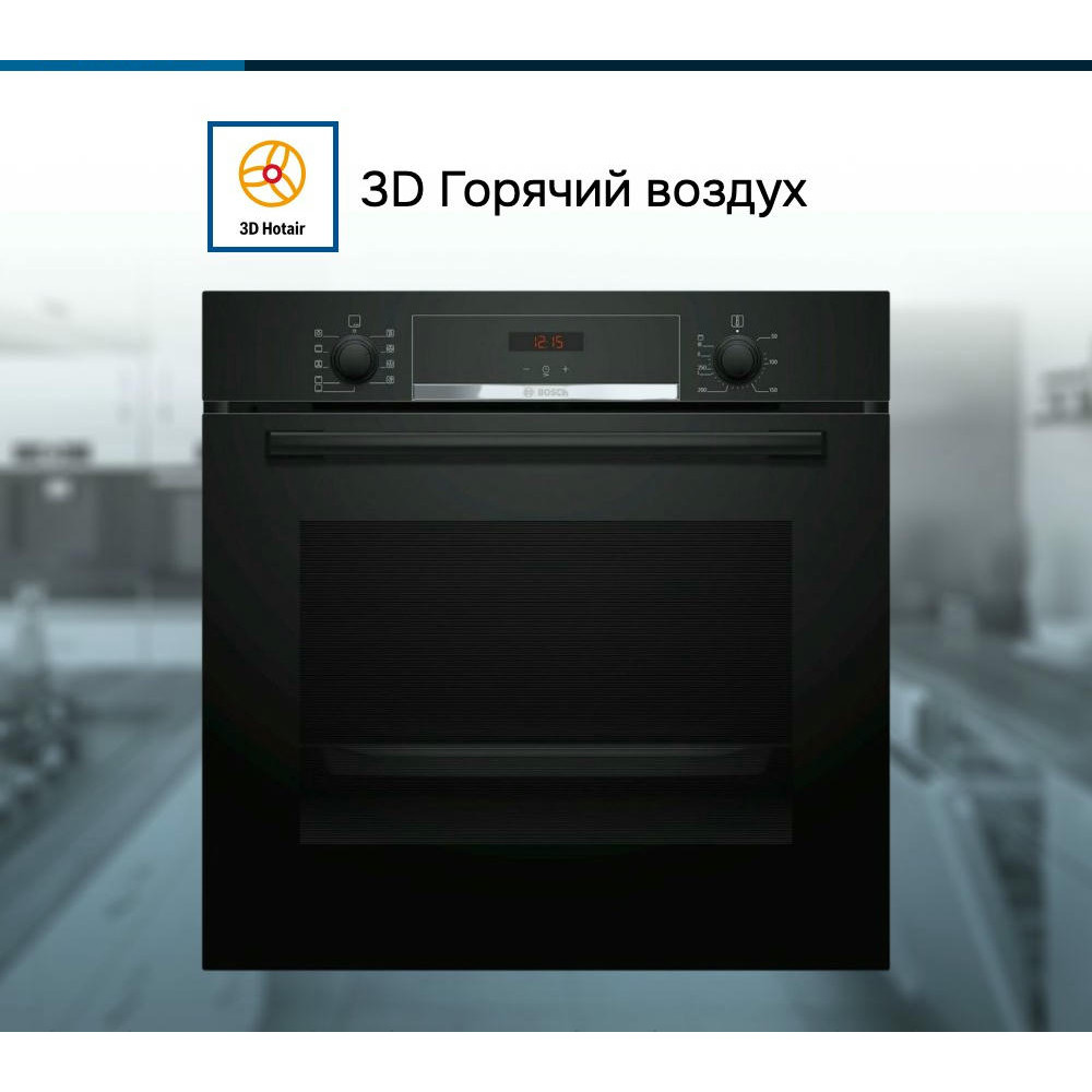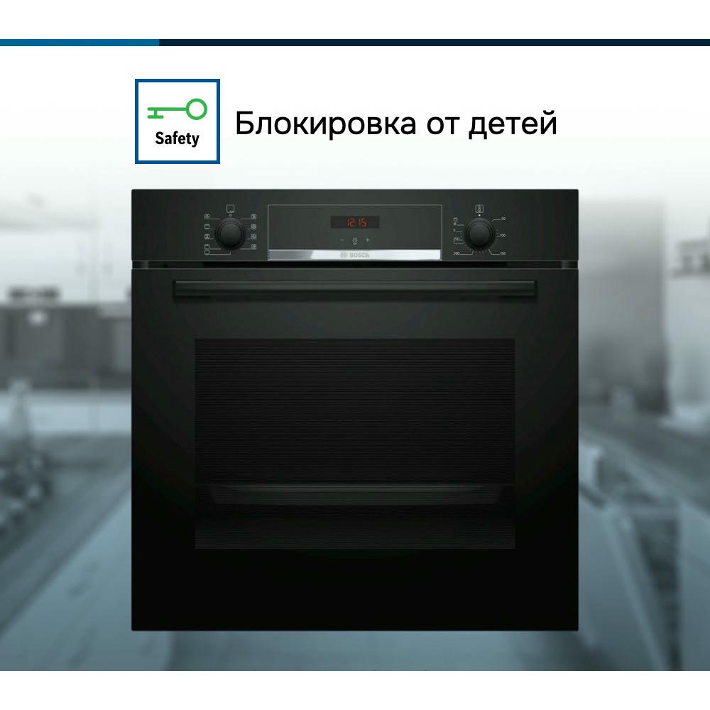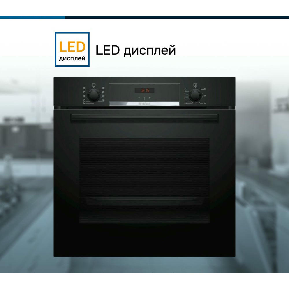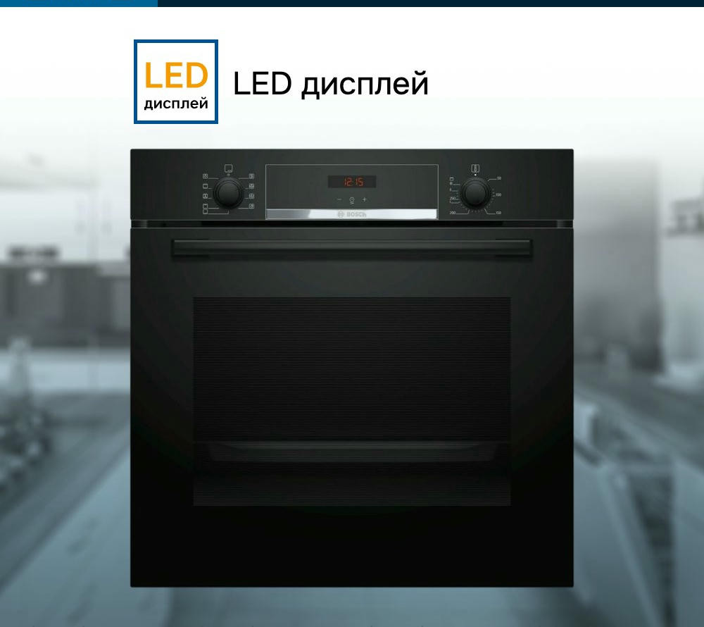Духовой шкаф Bosch HBA534EB0 — это электрическая независимая модель. Она выполнена в черном цветовом решении, благодаря чему отлично вписывается в современный кухонный интерьер — например, в стиле хай-тек. Ее внутренний объем составляет 71 литр, благодаря чему есть возможность запекать большие блюда. Управление осуществляется посредством использования сенсорных кнопок, а также поворота переключателей. LED-дисплей имеет высокое качество изображения и устойчив к высоким температурам.