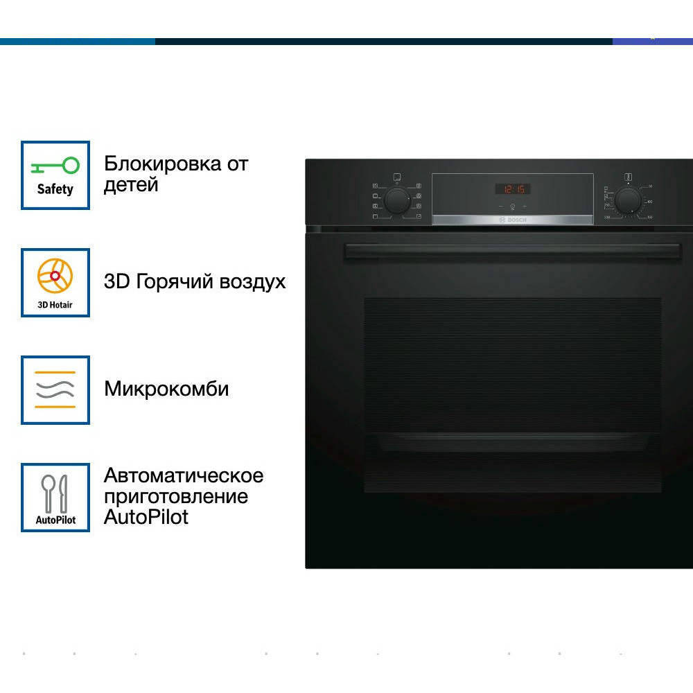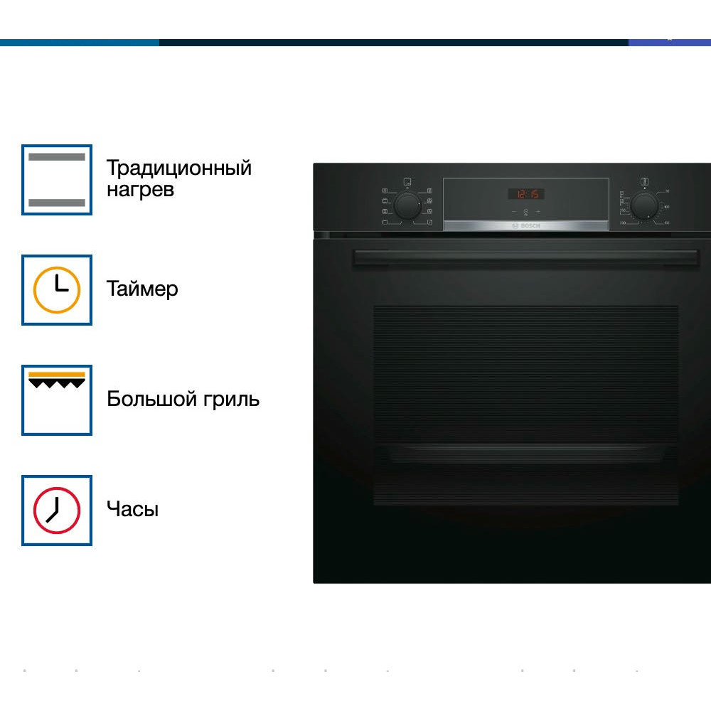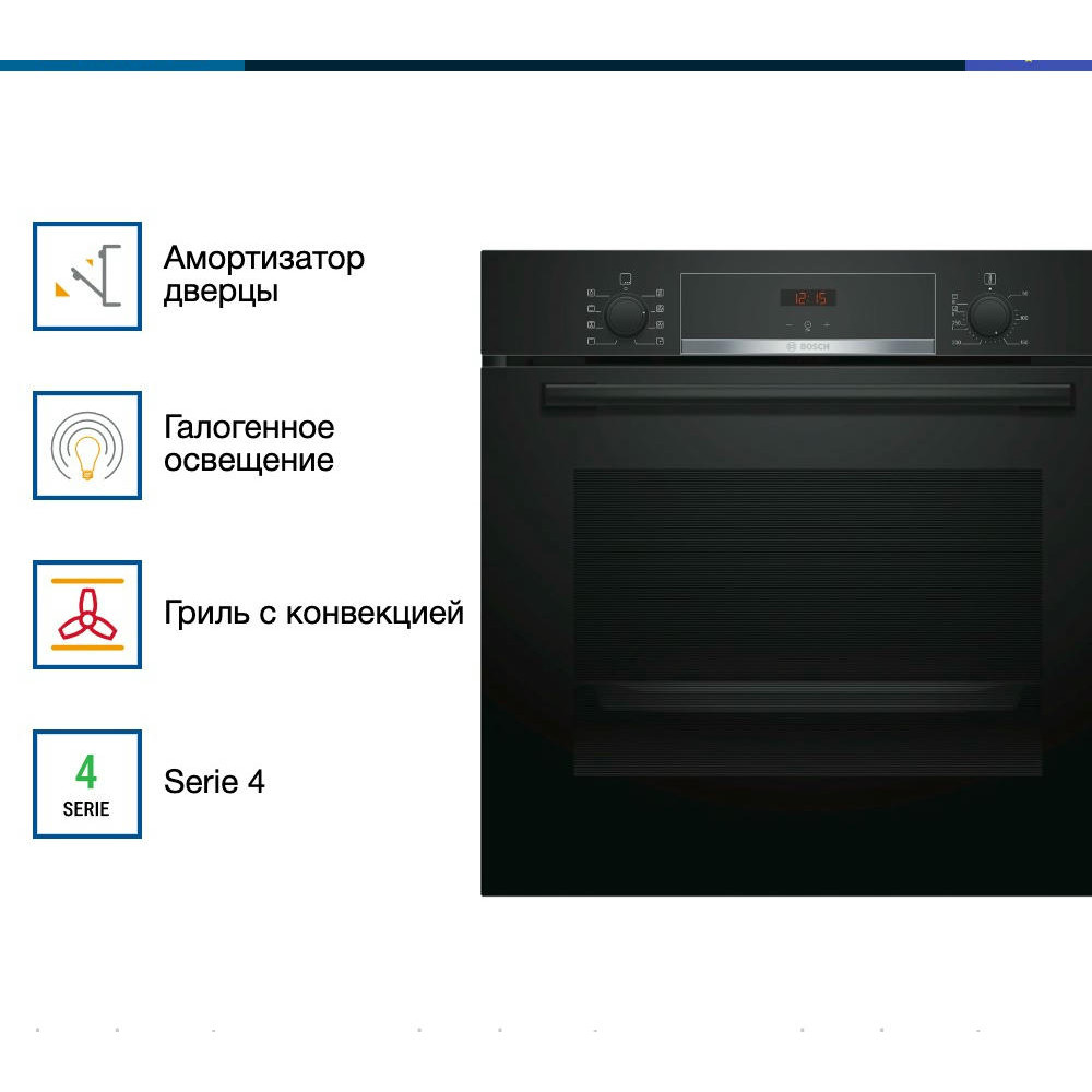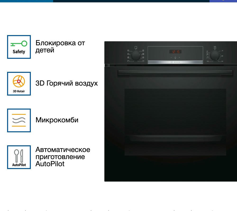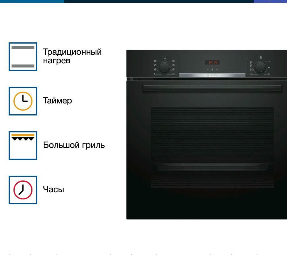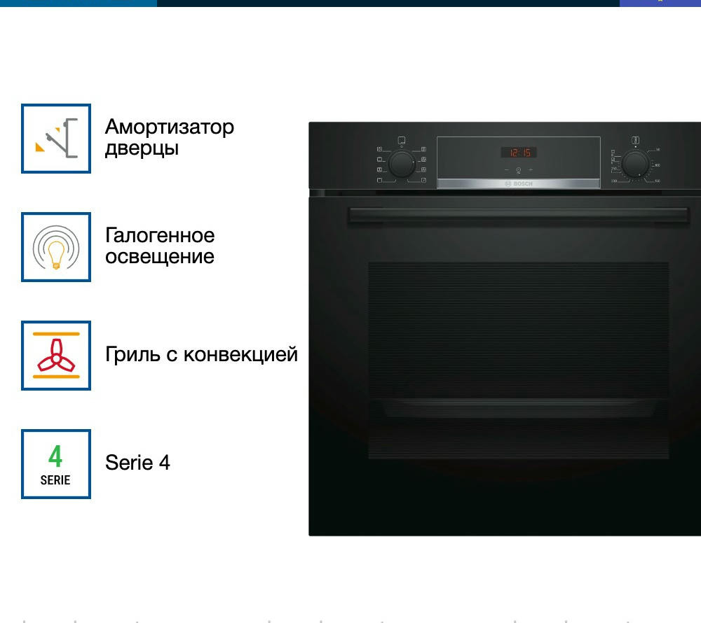 Электрический духовой шкаф Bosch HBA553BA0 объемом 71 л способен нагреваться до температуры 275°С и работать в режиме конвекции. Модель оборудована дверцей с двухслойным термоустойчивым стеклом и доводчиком закрытия SoftClose. Очистка Eco Clean обеспечивает полное сжигание загрязнений и комфортное удаление частиц пепла. Для этого можно использовать губку или салфетку из мягкой ткани.