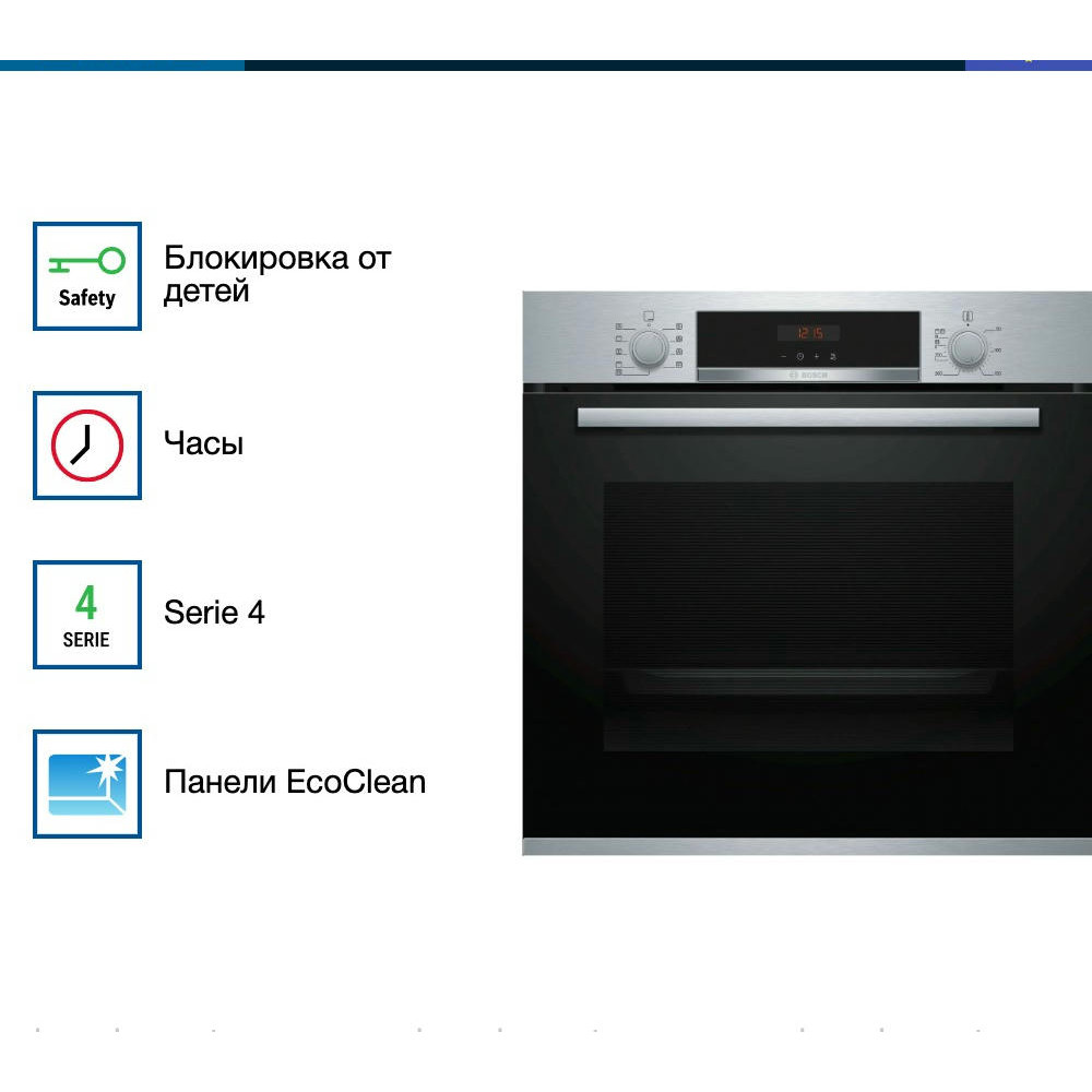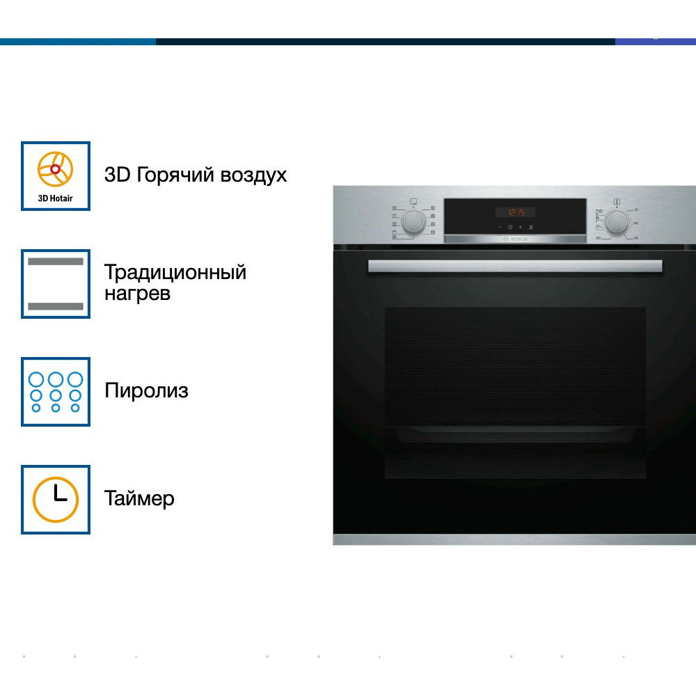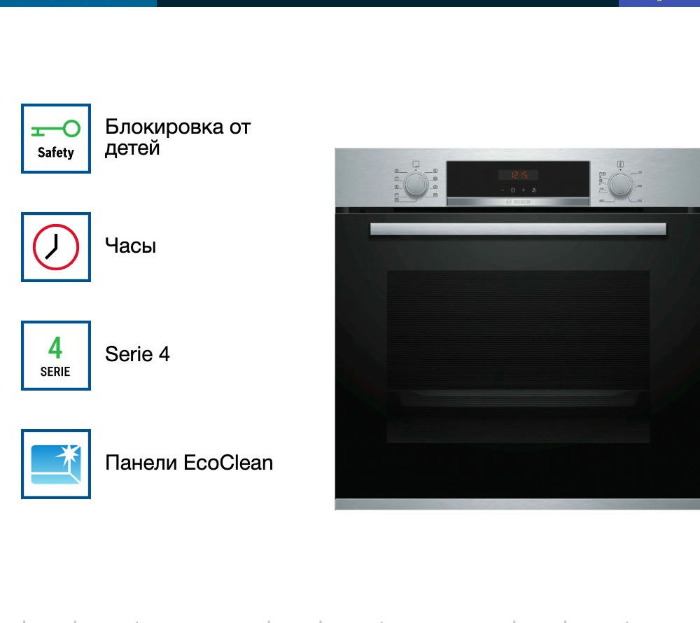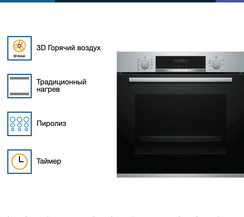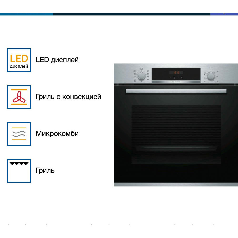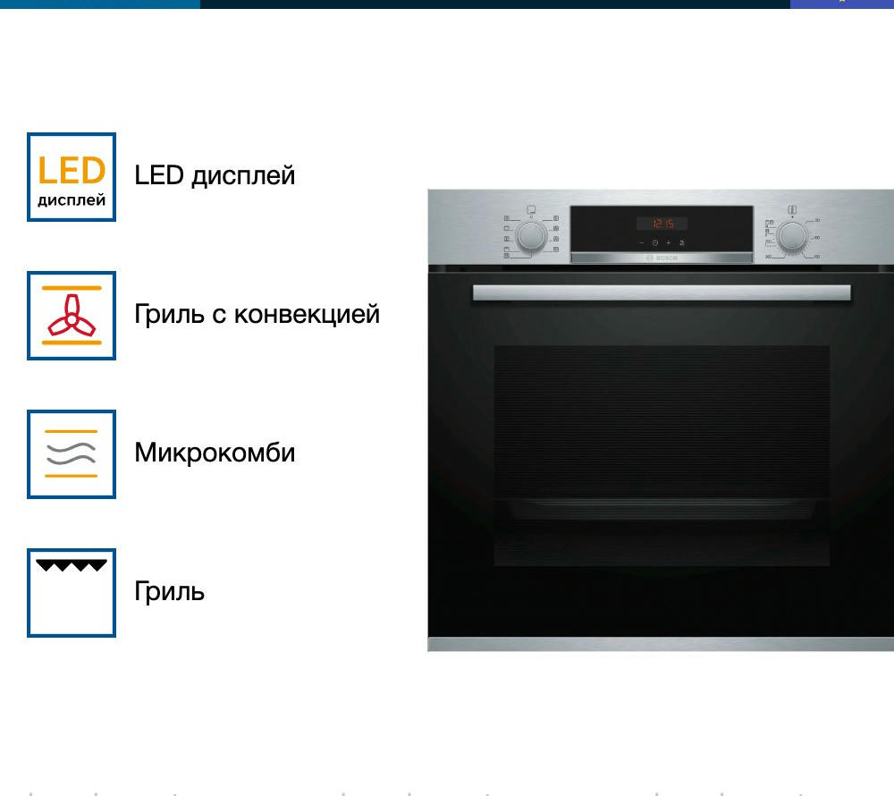 Встраиваемый духовой шкаф Bosch HBA573BS1 в серо-черном цвете подойдет для кухни, оформленной в современном стиле. Хорошо дополняет внешний вид и LED дисплей с часами. Экран станет помощников во время настройки режимов приготовления. Символы и цифры на экране яркие и четкие, их будет видно с любого ракурса. Этому монитору не грозит низкая или высокая температура, поэтому можно не опасаться, что во время приготовления даже при очень интенсивной работе ему что-то повредит. Управлять прибором просто с помощью поворотных кругов и сенсорных кнопок.