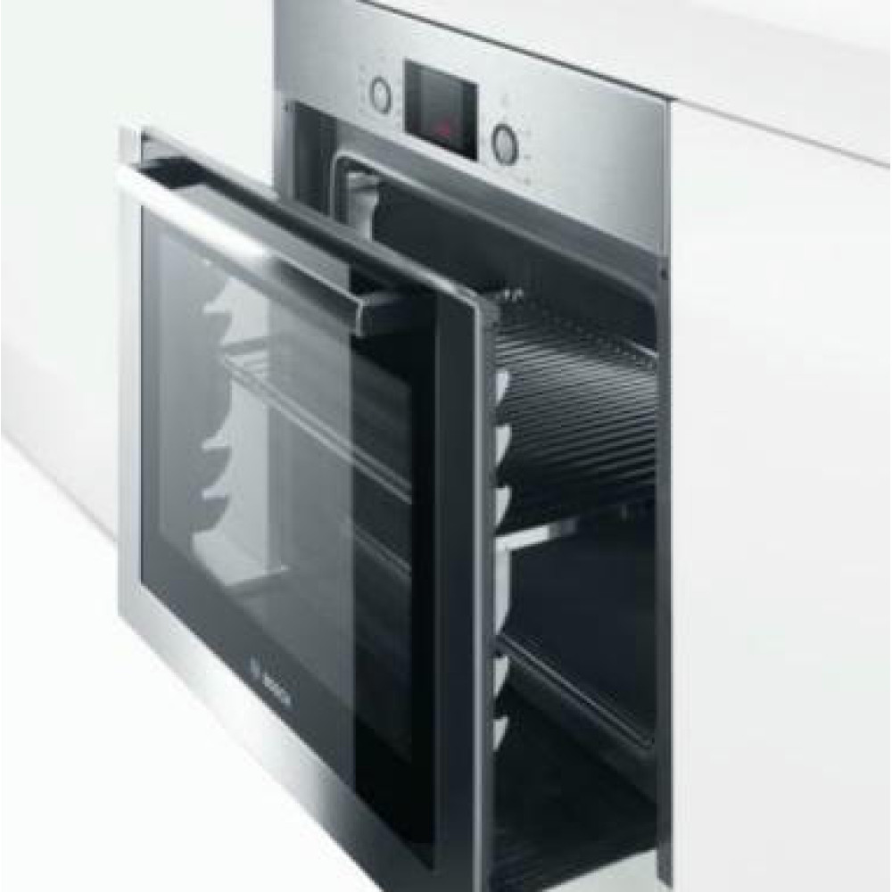 Модель HBB 33C550 оснащена режимами и функциями для качественного и комфортного приготовления. Камера 67 литров позволяет готовить большие порции. Режим конвекции распределяет горячий воздух по всему объему для равномерного пропекания блюд. Благодаря внутреннему освещению контролировать приготовления можно без открытия дверцы. Духовой шкаф оборудован эмалью EcoClean на задней стенке, что облегчает процесс очистки камеры. Автоматический быстрый разогрев позволяет сократить время нагрева духовки до необходимой температуры на 30%. Символьный дисплей отображает время, температуру и режим нагрева. Утапливаемые переключатели обладают плавным ходом и не перегреваются во время работы устройства.