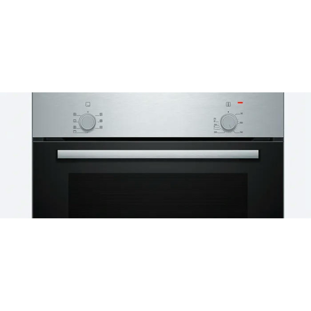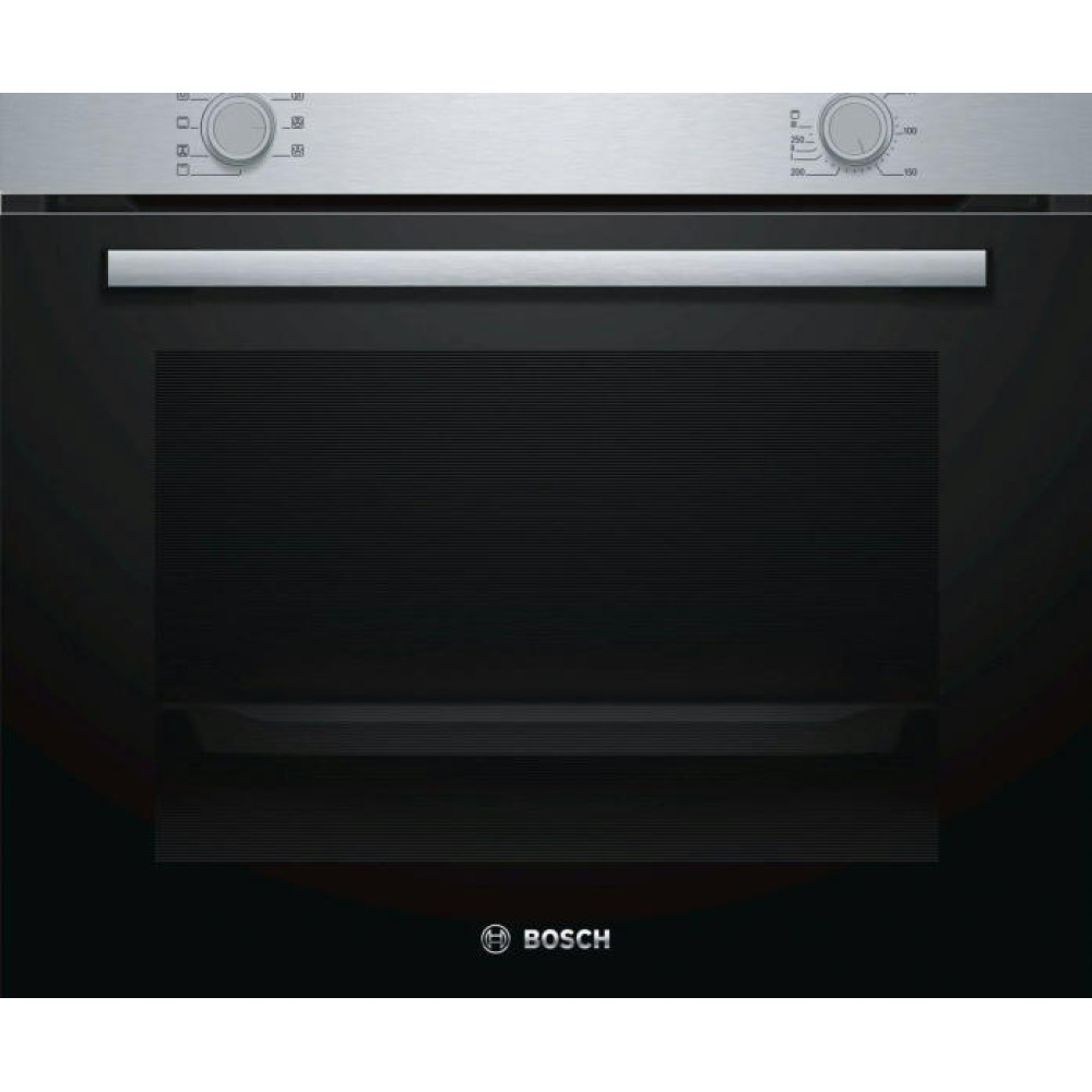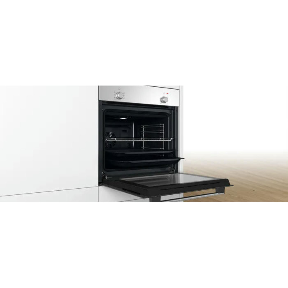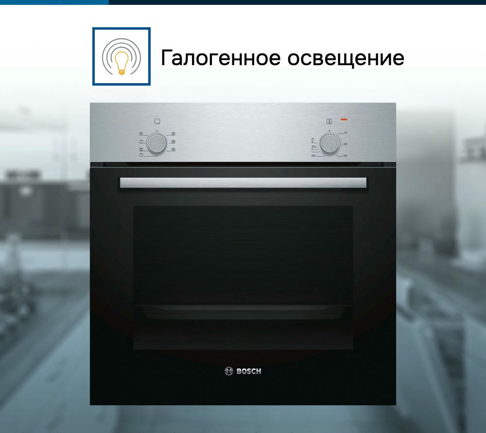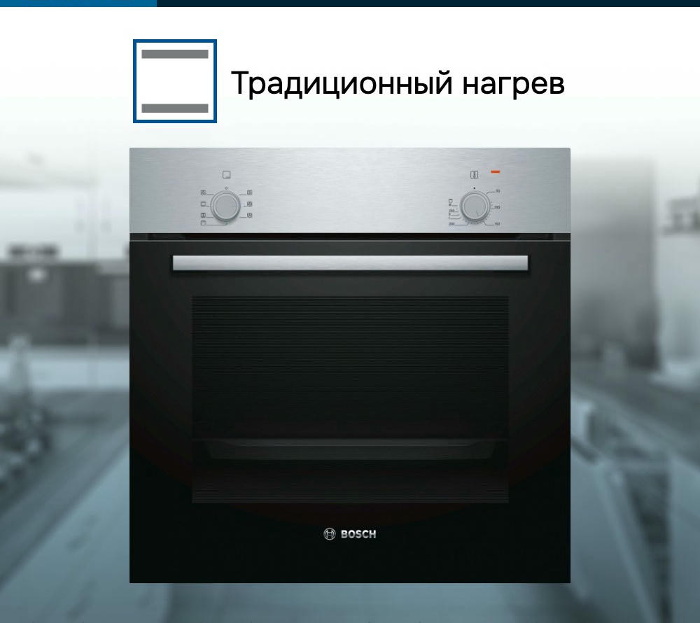 Духовой шкаф Bosch HBF010BR1S оснащен 6 режимами работы. Подсветка даст возможность точно определить момент превосходной готовности блюд. Двойное стекло надежно удерживает тепло и защищает ручку дверцы от нагревания. Система охлаждения прибора позволяет встроить духовку в любой кухонный гарнитур. Используйте режим «Гриль + конвекция», и тогда на мясе или выпечке появится потрясающая хрустящая корочка.