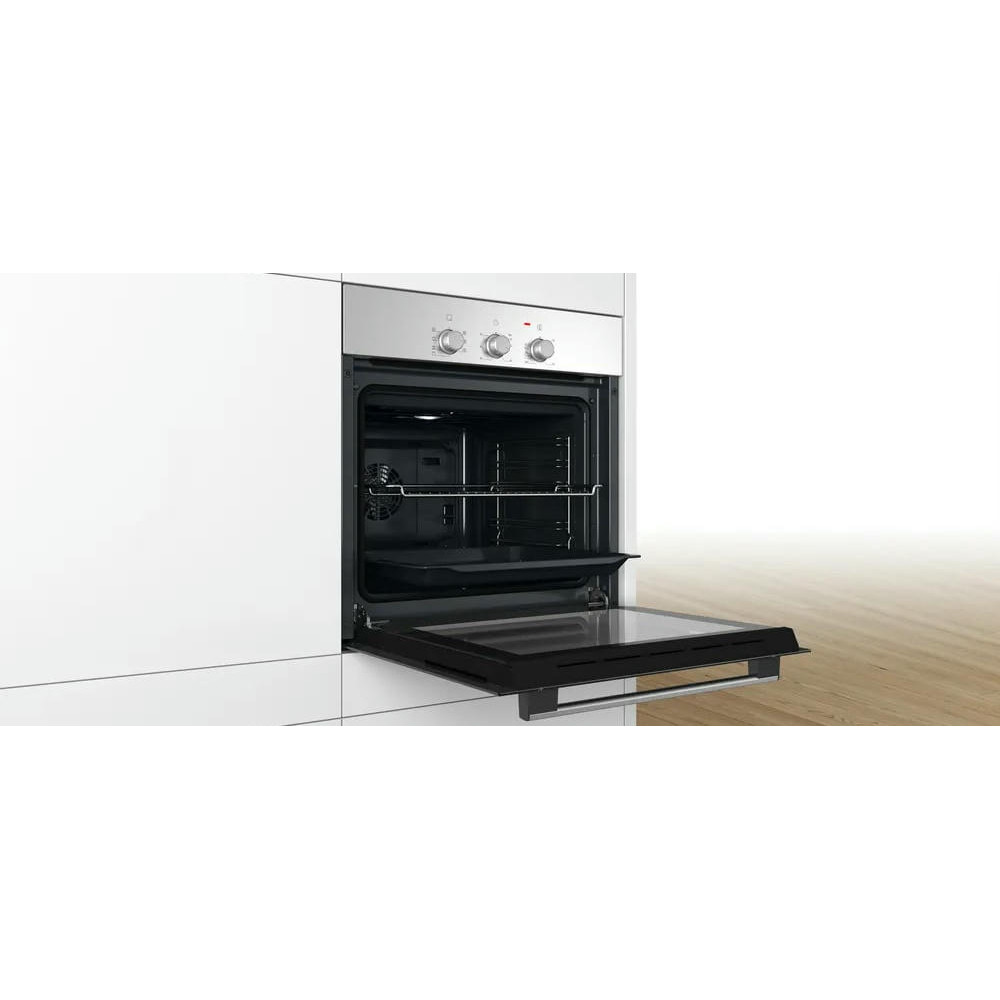Духовой шкаф Bosch HBF011BR0T представляет собой элегантный и функциональный элемент кухонного оборудования. Он выполнен в стильном дизайне из нержавеющей стали, что придает ему современный и эстетически приятный вид. Прочный материал обеспечивает долговечность и устойчивость к коррозии. Основной элемент управления включает в себя поворотные переключатели. Механическое управление обеспечивает простоту и надежность использования. Духовой шкаф обладает внутренним объемом 66 литров, что позволяет готовить большие порции блюд одновременно.