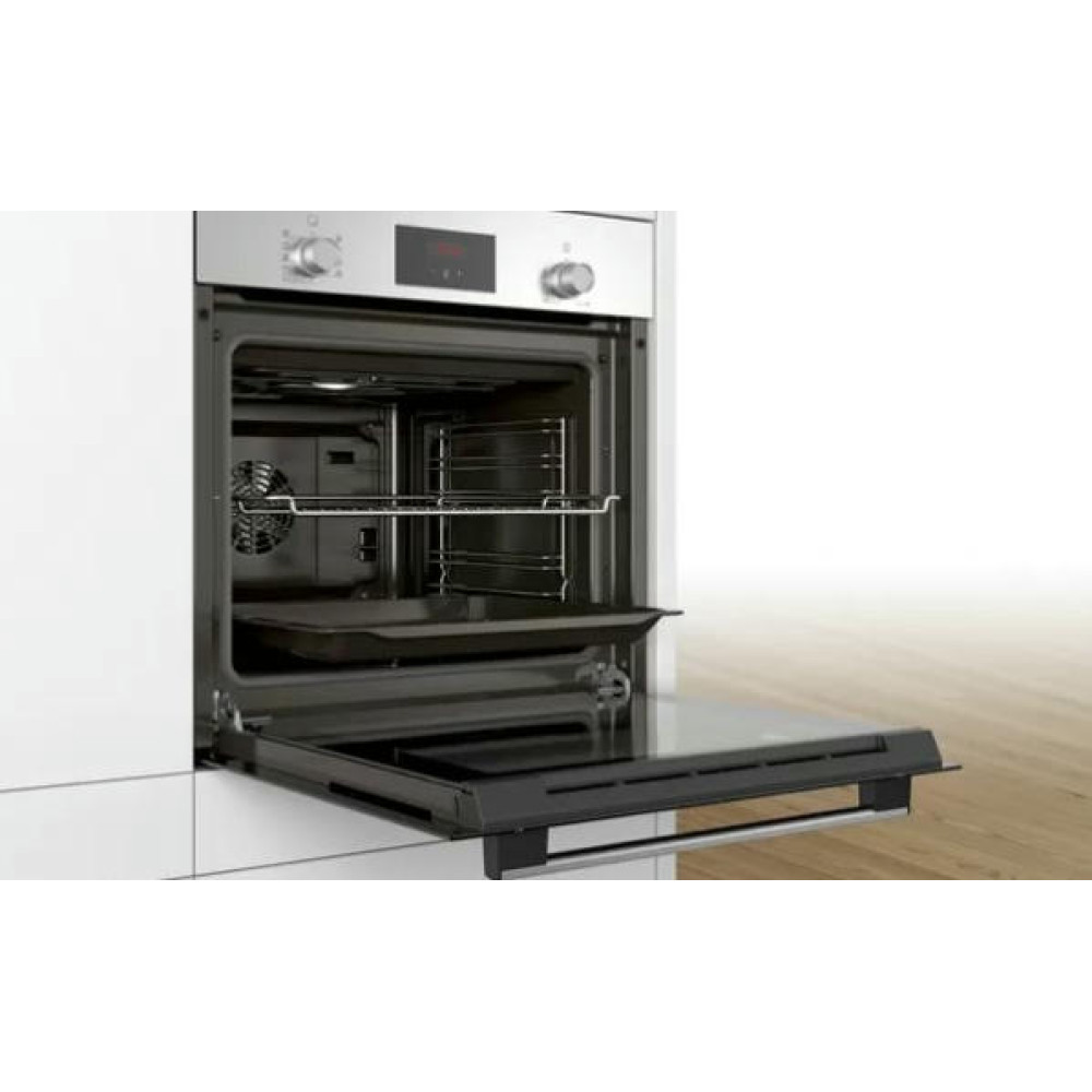 Духовой шкаф Bosch HBF114ER0R оснащен электронной панелью управления с поворотными переключателями. Система охлаждения прибора позволяет встроить духовку в любой кухонный гарнитур. Используйте режим «Гриль + конвекция», и тогда на мясе или выпечке появится потрясающая хрустящая корочка. Функция «Блокировка от детей» защитит ребенка от контакта с прибором, пока вас нет дома или от случайного сбоя программы во время работы прибора.