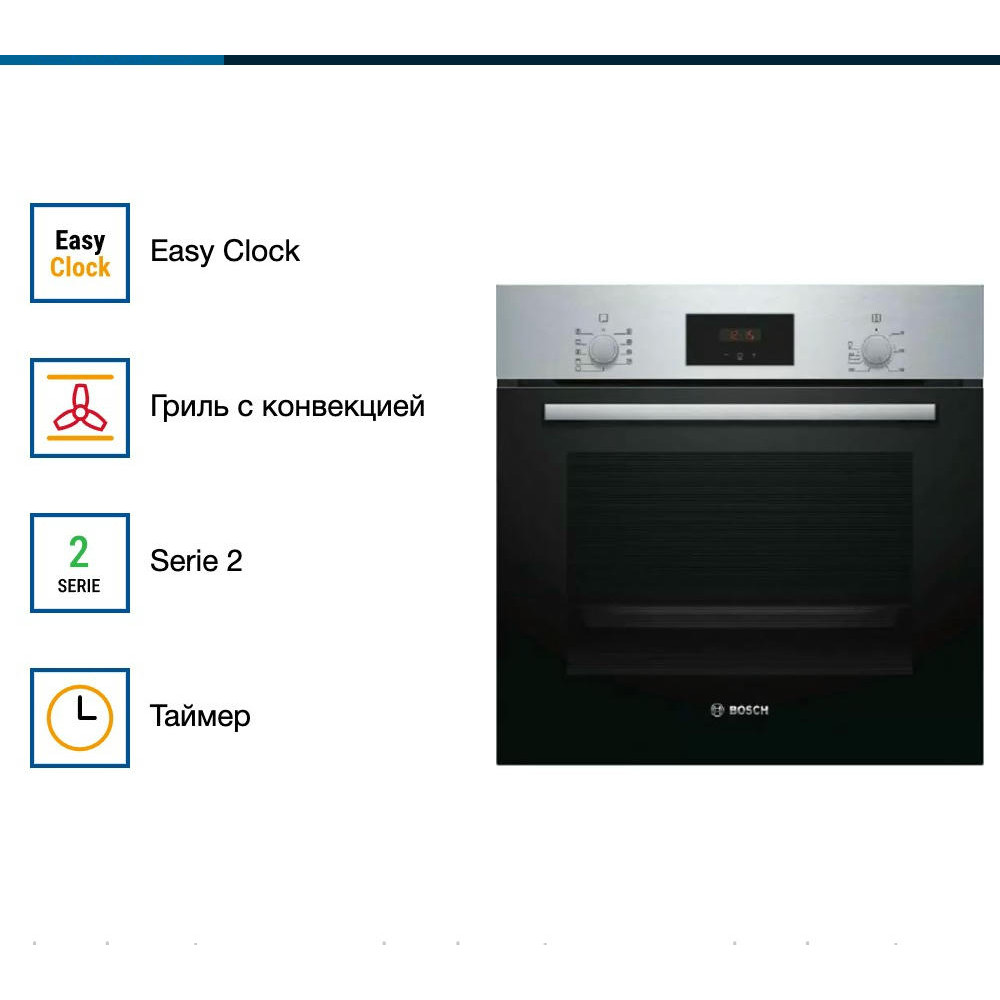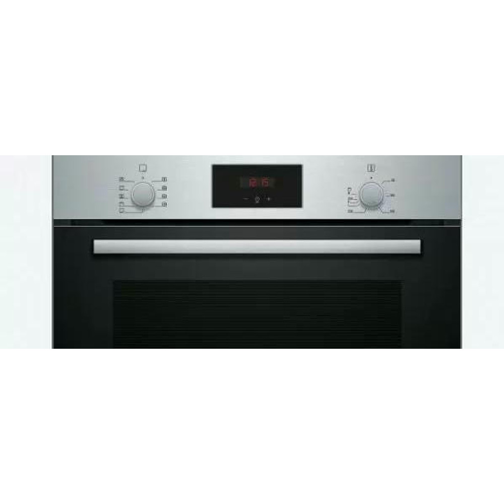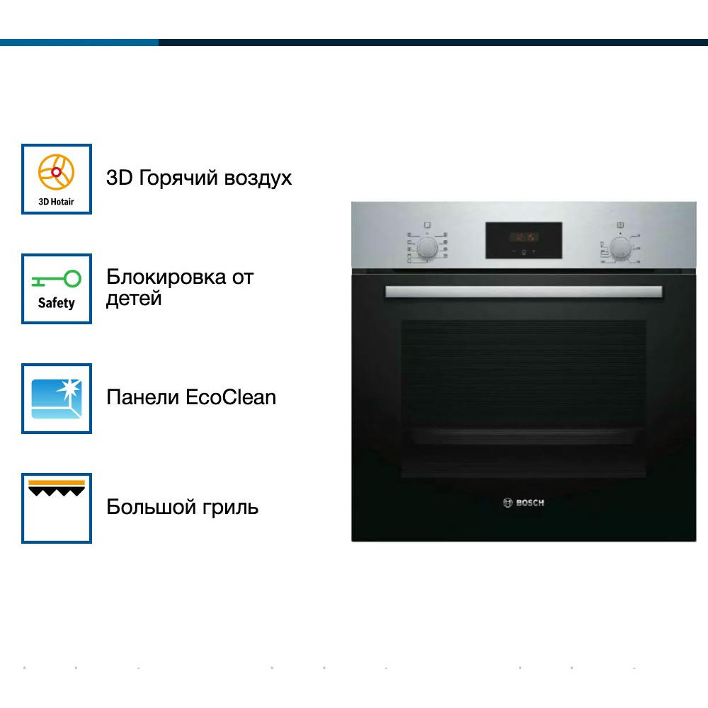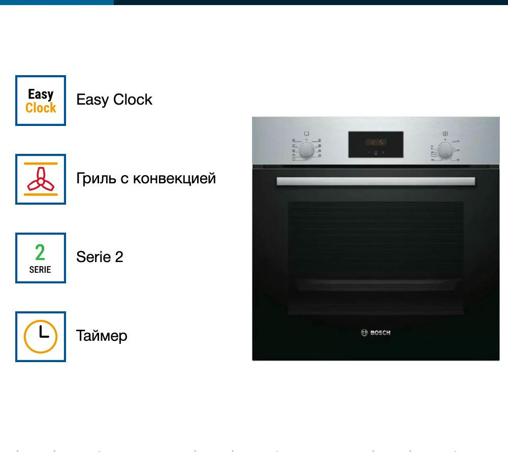 Электрический духовой шкаф Bosch HBF114ES0 есть внутренняя камера объемом 66 л, оснащенная галогенной подсветкой. Пользователь может выбирать один из семи режимов работы устройства или создавать индивидуальные программы для приготовления различных блюд. Благодаря технологии равномерной термической обработки «3D-горячий воздух» снижен риск пригорания пищи. Прибор оборудован электрическим грилем, который помогает получать хрустящую корочку.
