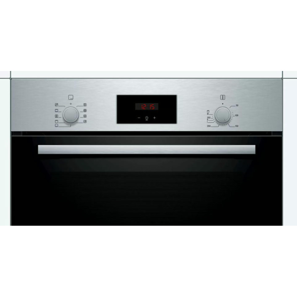 Духовой шкаф Bosch HBF114ES1R — это электрическая независимая модель. Она выполнена в цвете «нержавеющая сталь», благодаря чему отлично вписывается в современный кухонный интерьер. Ее внутренний объем составляет 66 литров, благодаря чему есть возможность запекать большие блюда. Управление осуществляется посредством нажатия кнопок, поворота переключателей, а также использования сенсорных кнопок. Благодаря многофункциональным часам Easy Clock можно с легкостью отслеживать время до окончания работы одной из программ. LED-дисплей имеет высокое качество изображения и устойчив к высоким температурам.