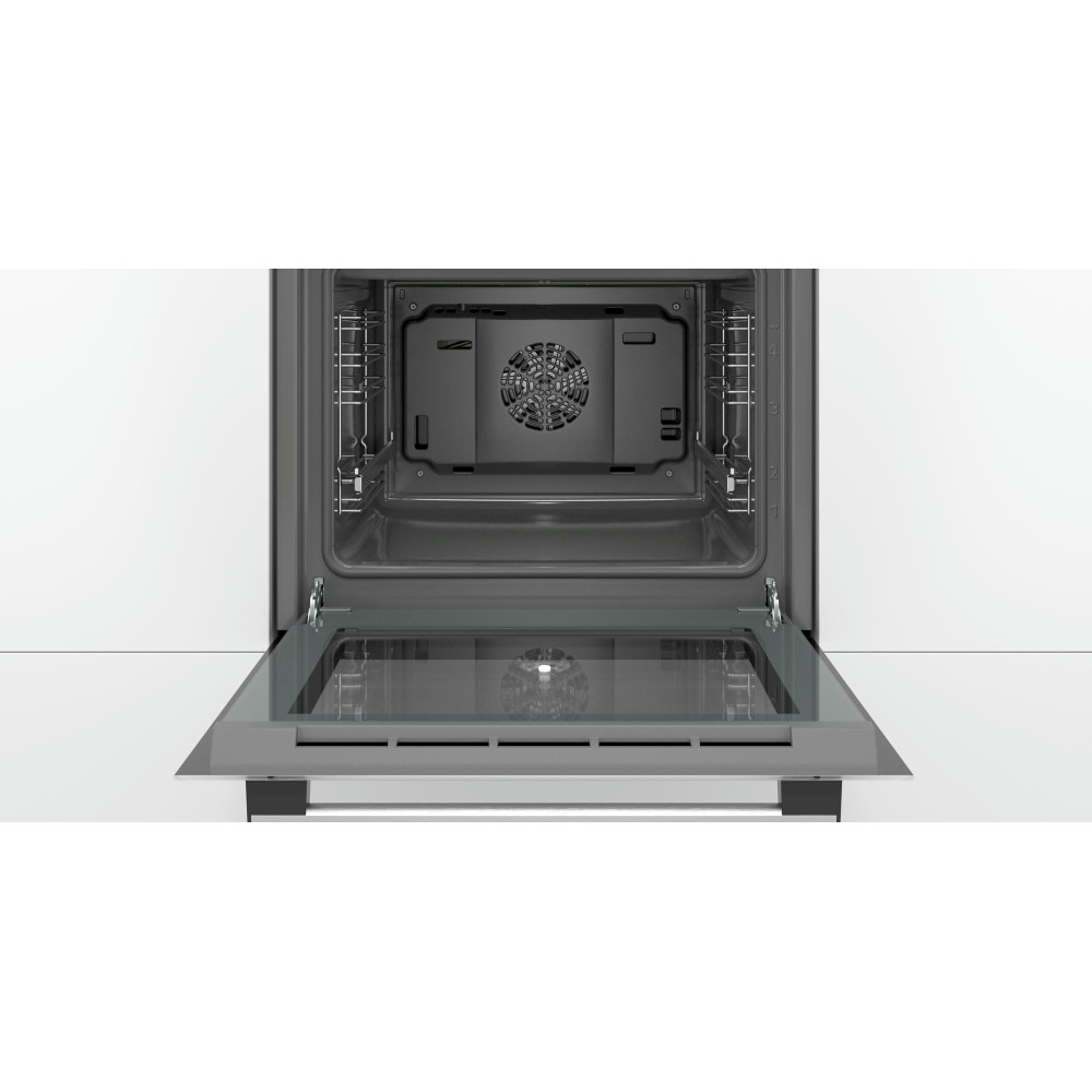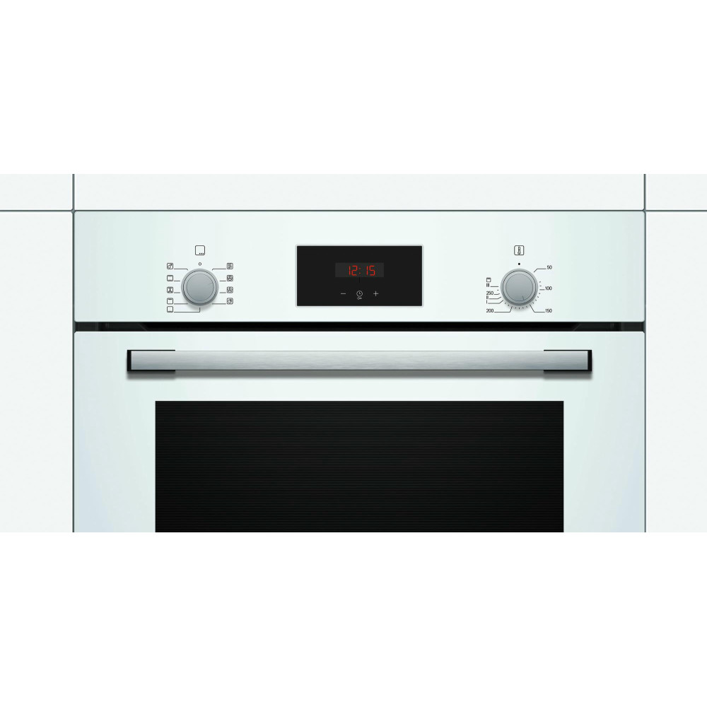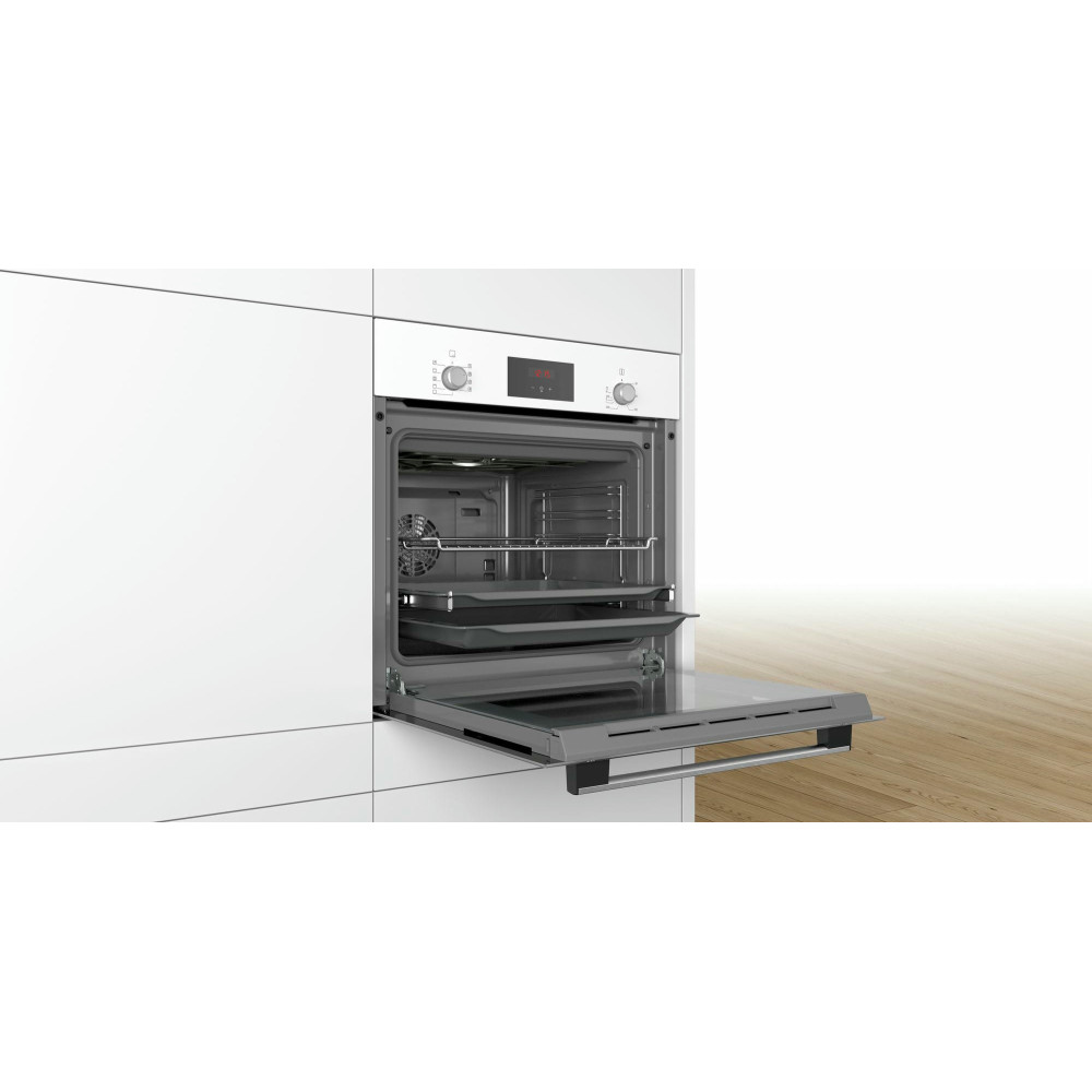 Духовой шкаф Bosch HBF114EW0R — это электрическая независимая модель. Она выполнена в белом цвете, благодаря чему отлично вписывается в современный кухонный интерьер. Ее внутренний объем составляет 66 литров, благодаря чему есть возможность запекать большие блюда. Управление осуществляется посредством нажатия кнопок, поворота переключателей, а также использования сенсорных кнопок. Благодаря многофункциональным часам Easy Clock можно с легкостью отслеживать время до окончания работы одной из программ. LED-дисплей имеет высокое качество изображения и устойчив к высоким температурам.