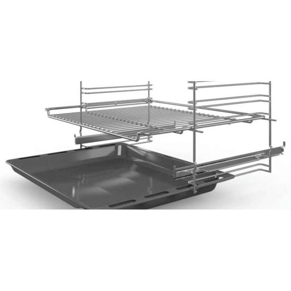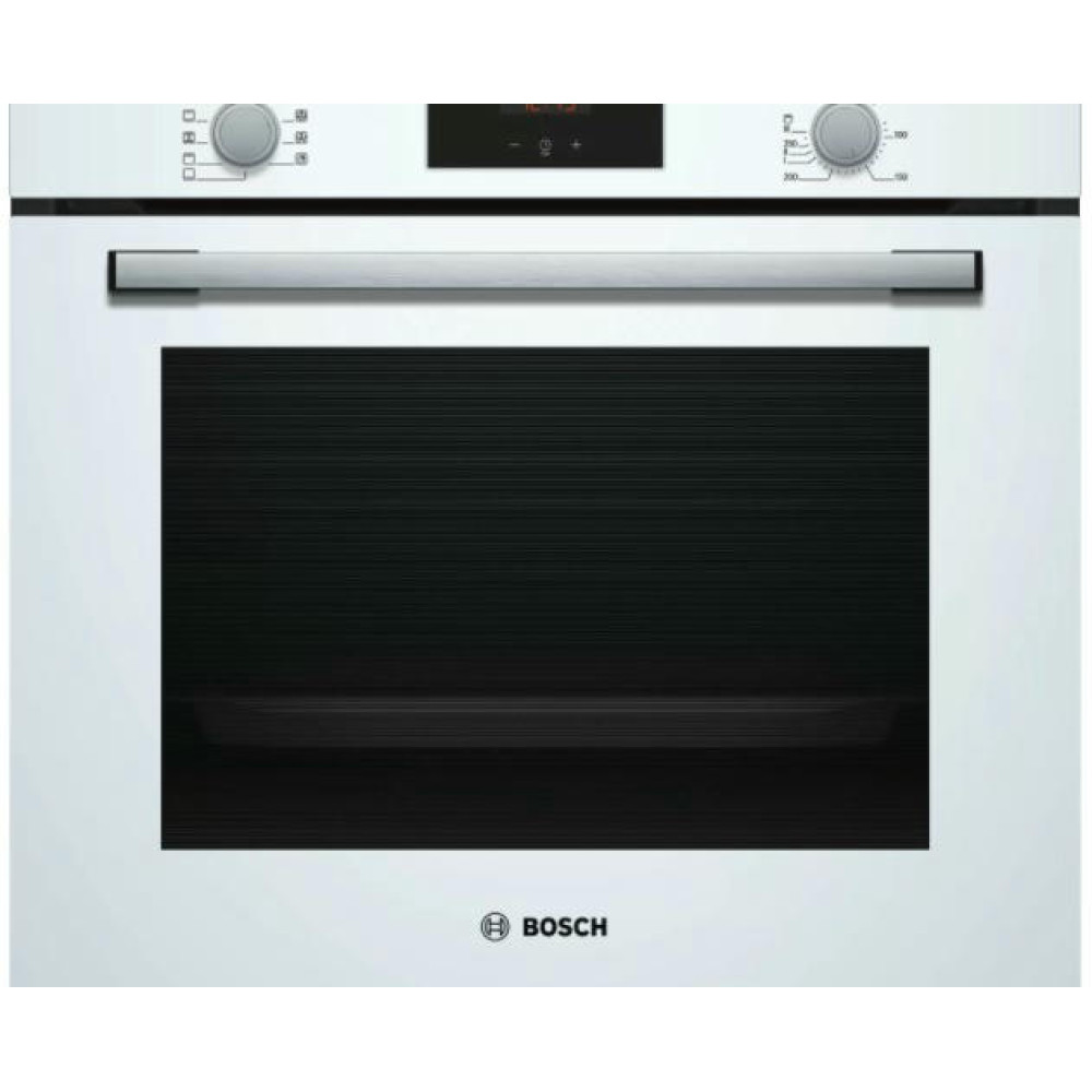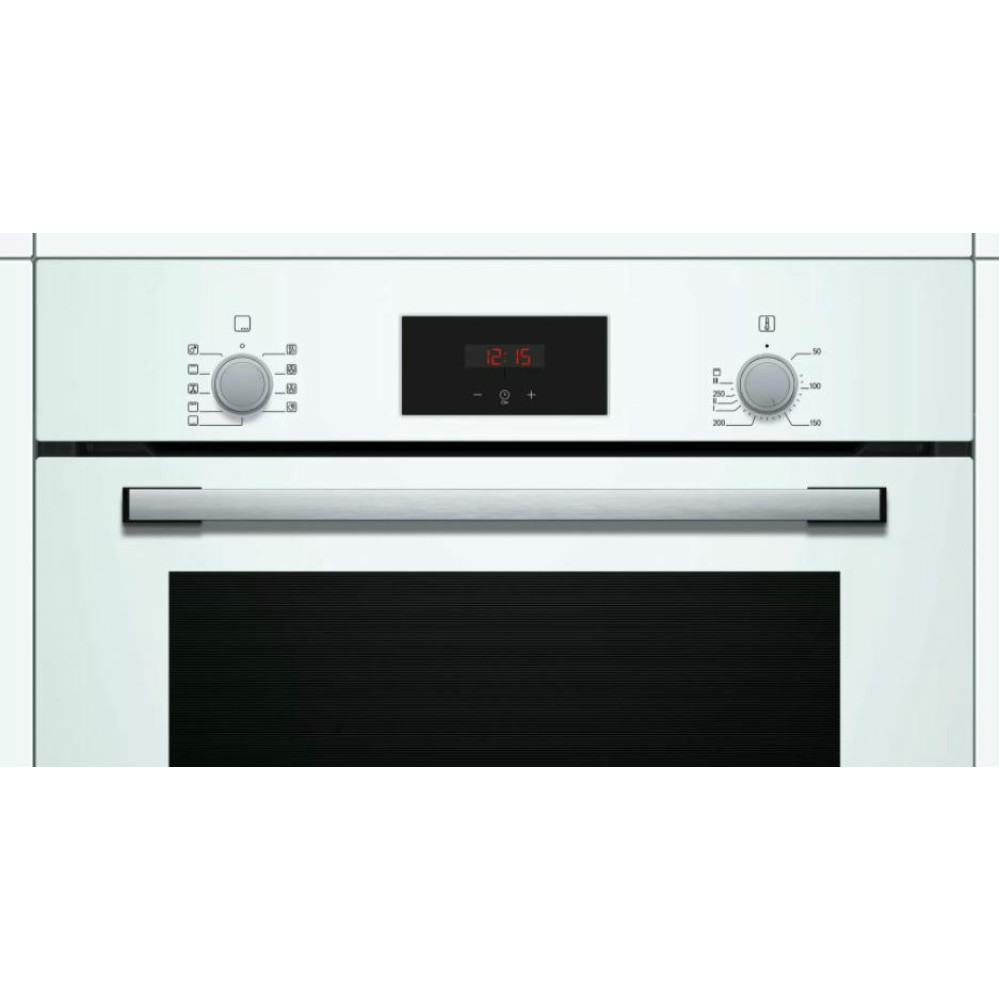 Bosch HBF114EW1R — это электрический духовой шкаф, выполненный в белом цвете. Такое цветовое решение позволяет устройству удачно вписываться в современный кухонный интерьер — например, в стилях модерн или хай-тек. Внутренний объем составляет 66 литров, благодаря чему есть возможность запекать большие блюда. Управление осуществляется посредством нажатия кнопок, поворота переключателей, а также использования сенсорных кнопок. Благодаря многофункциональным часам Easy Clock можно с легкостью отслеживать время до окончания работы одной из программ. LED-дисплей имеет высокое качество изображения и устойчив к высоким температурам.