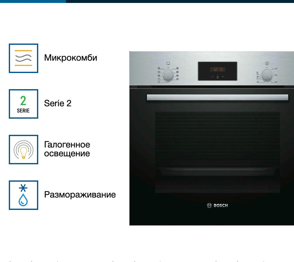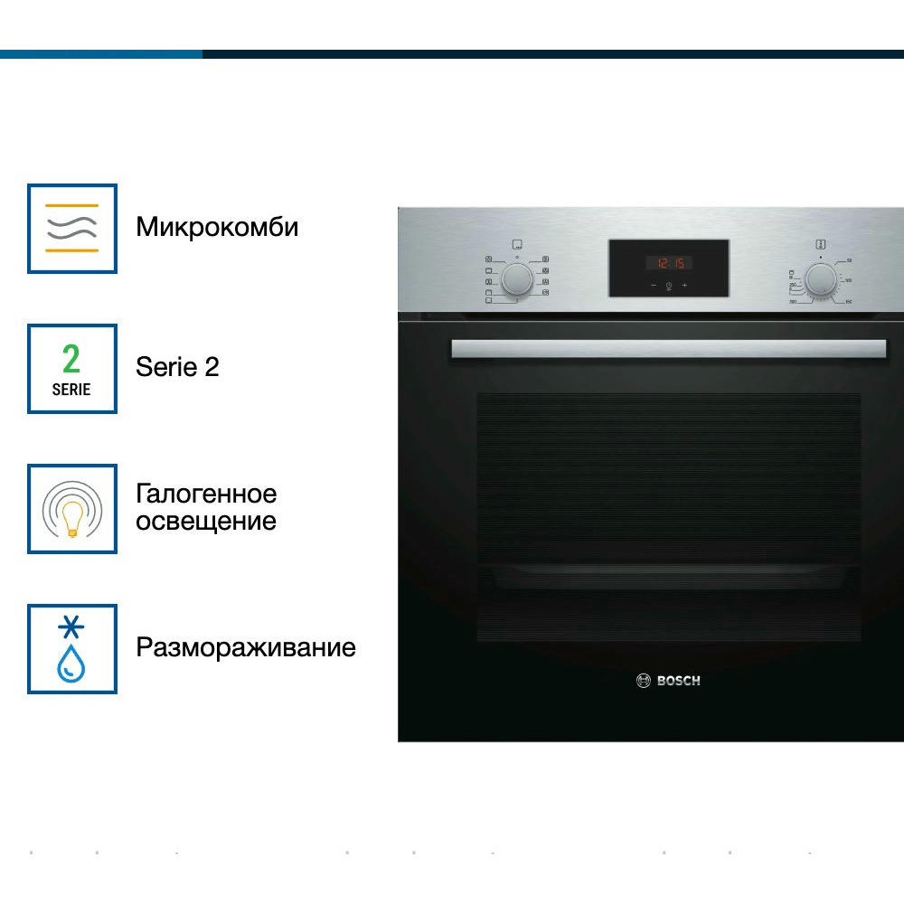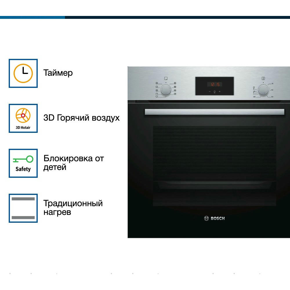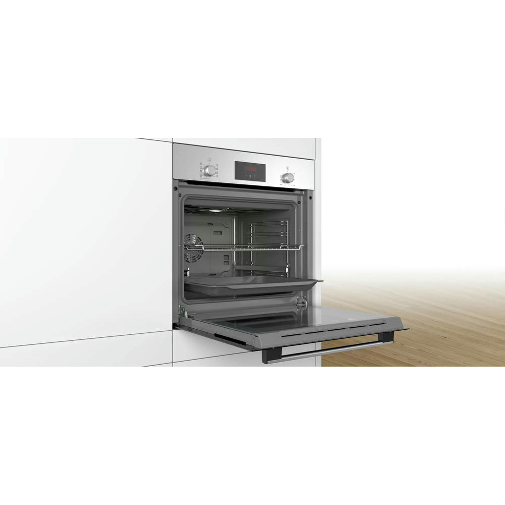 Духовой шкаф BOSCH HBF134ES1 — вместительная модель, позволяющая готовить на нескольких уровнях одновременно, полезный объем составляет 66 л. Устройство включает в себя 7 режимов работы. Стандартные размеры и большой объем внутренней камеры — отличный выбор для тех, кто много готовит. Такой шкаф будет лаконично смотреться в Вашей кухне.