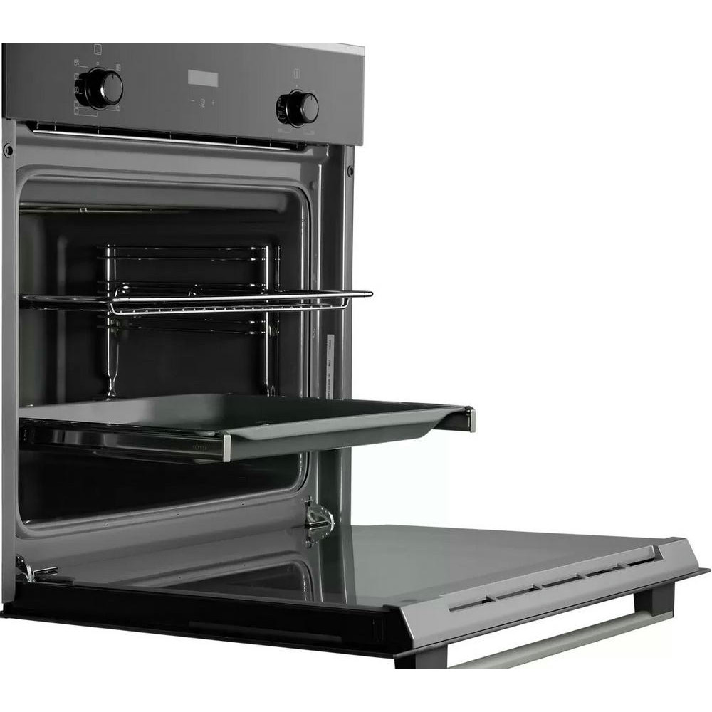Безопасность модели обеспечивает возможность блокировки от детей. Подсветка осуществляется при помощи галогенной лампы. В комплект входят комбинированная решётка, которая отлично подойдёт для приготовления жаркого, кусков мяса на гриле и блюд глубокой заморозки. Есть и универсальный противень. Его можно использовать в качестве поддона для стекающего жира под решёткой или для выпечки печенья, пирогов и запеканок.