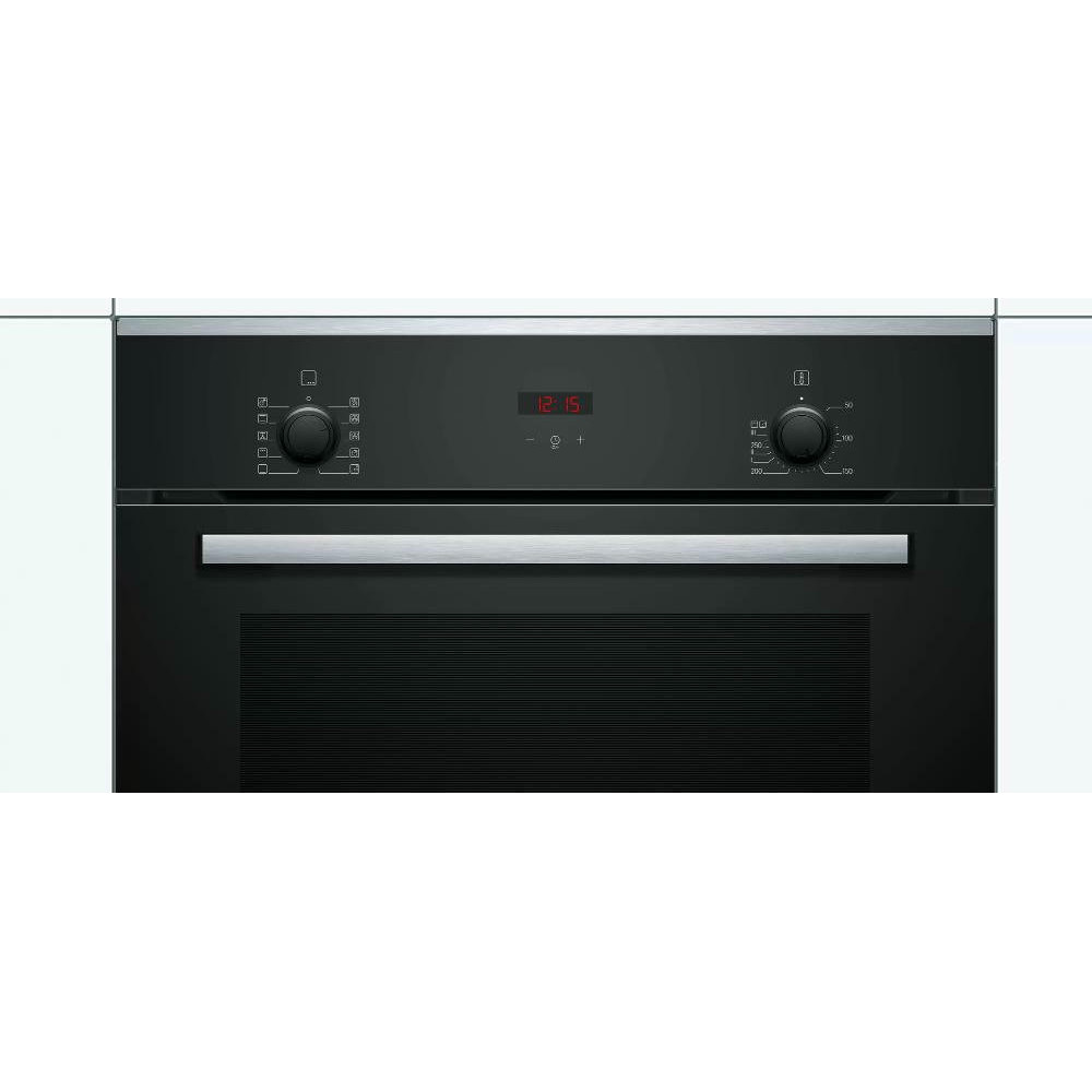 Духовой шкаф Bosch HBF254EB0R — это электрическая независимая модель из линейки Serie | 4. Ее внутренний объем составляет 66 литров, благодаря чему в ней можно запекать сразу несколько блюд, либо одно большое. Она выполнена в черном цветовом решении, благодаря чему хорошо вписывается в различные виды современного кухонного интерьера. Управление осуществляется с помощью сенсорных кнопок, а также поворотных переключателей. LED-дисплей устойчив к высоким температурам, а также имеет качественное изображение под любым углом. Благодаря многофункциональным часам Easy Clock можно с легкостью отслеживать время до окончания работы одной из программ.