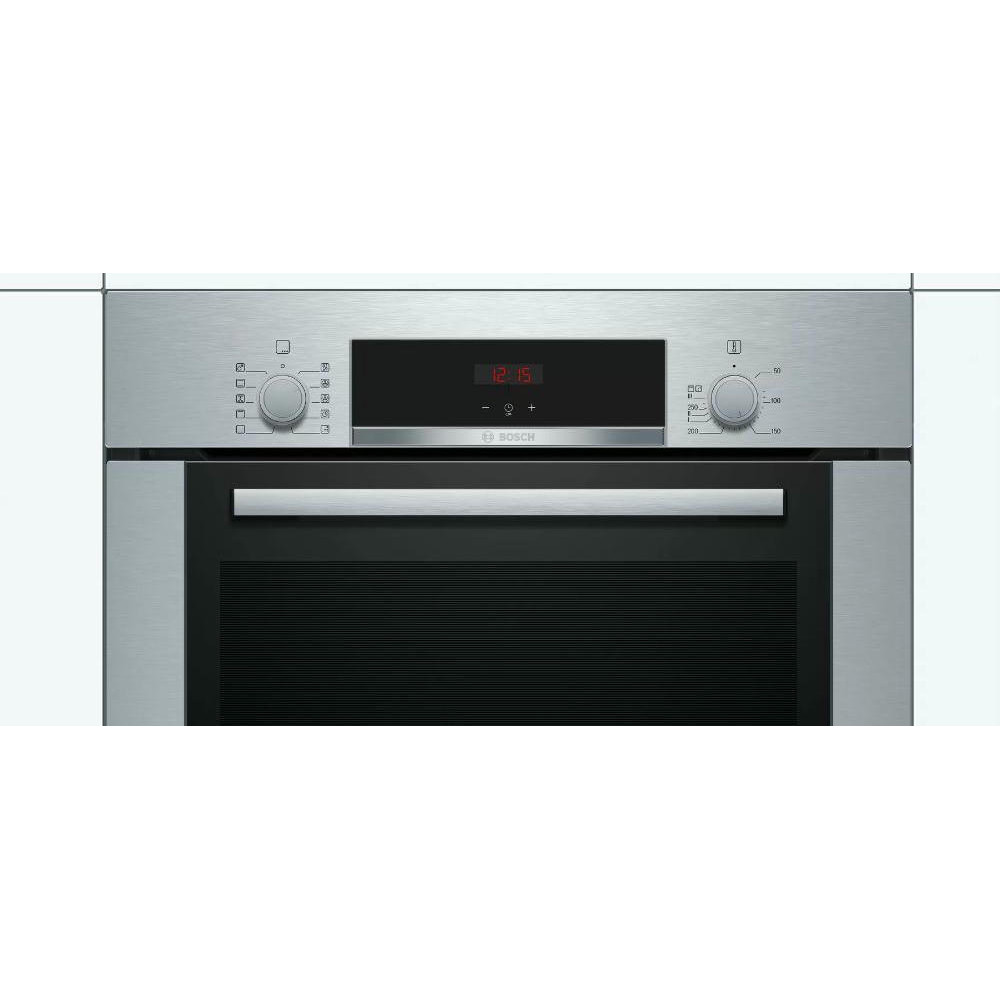 Духовой шкаф Bosch HBF354ES0R — это электрическая независимая модель из линейки Serie | 4. Ее внутренний объем составляет 66 литров, благодаря чему в ней можно запекать сразу несколько блюд, либо одно большое. Она выполнена в цвете «нержавеющая сталь», благодаря чему хорошо вписывается в различные виды современного кухонного интерьера. Управление осуществляется с помощью сенсорных кнопок, а также поворотных переключателей. LED-дисплей устойчив к высоким температурам, а также имеет качественное изображение под любым углом. Благодаря многофункциональным часам Easy Clock можно с легкостью отслеживать время до окончания работы одной из программ.