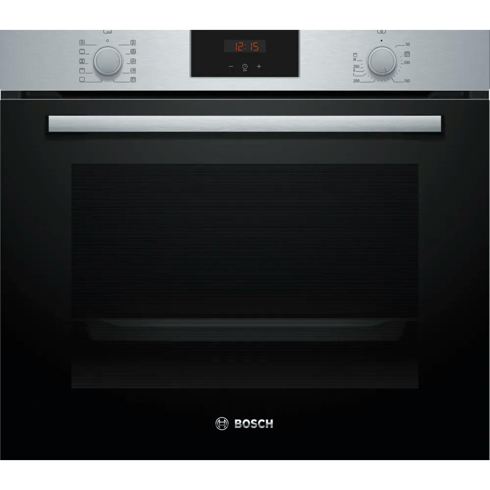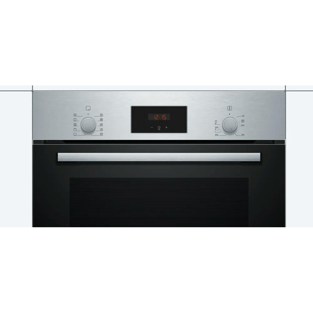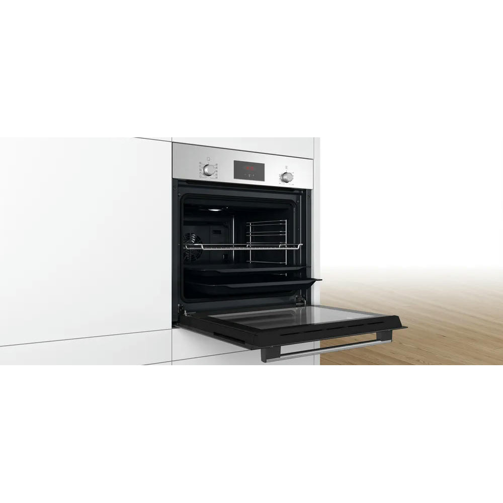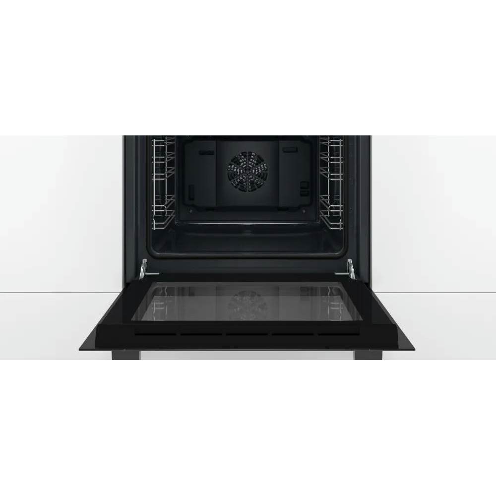 Духовой шкаф Bosch HBF512BW1T сочетает лаконичную белоснежную эстетику с продуманной инженерией, выполнение которой происходит на производственных мощностях Турции в рамках серии Serie 2. Элегантный корпус и белая фурнитура создают нейтральный акцент для любого кухонного интерьера, а компактные габариты (высота 59.5 см, ширина 59.4 см, глубина 56.7 см) позволяют вписать устройство в стандартную нишу с размерами 57.5-59.7 х 56-56.8 х 55 см. Внутренний объём 66 литров обеспечивает комфорт при приготовлении больших порций и одновременно оставляет достаточно пространства для равномерной циркуляции потоков воздуха, что особенно важно при работе режимов с конвекцией и 3D-горячим воздухом.