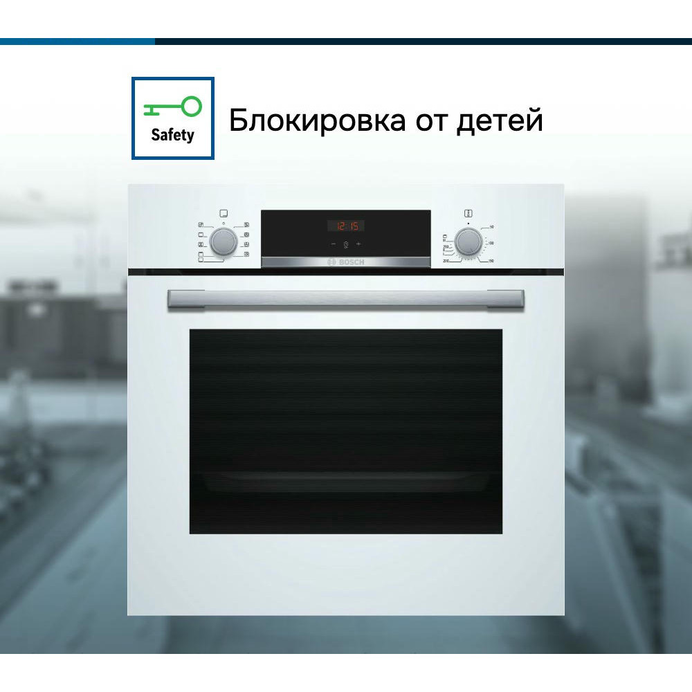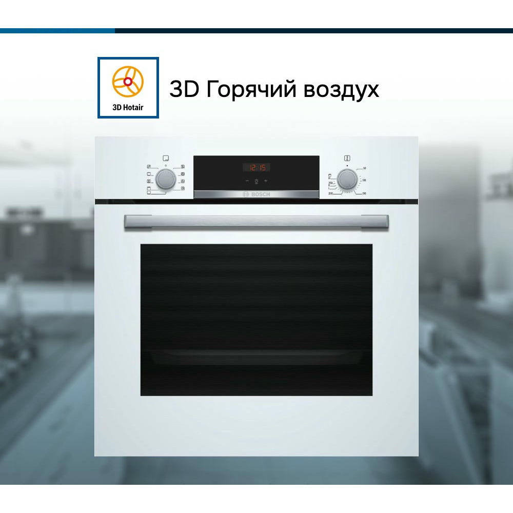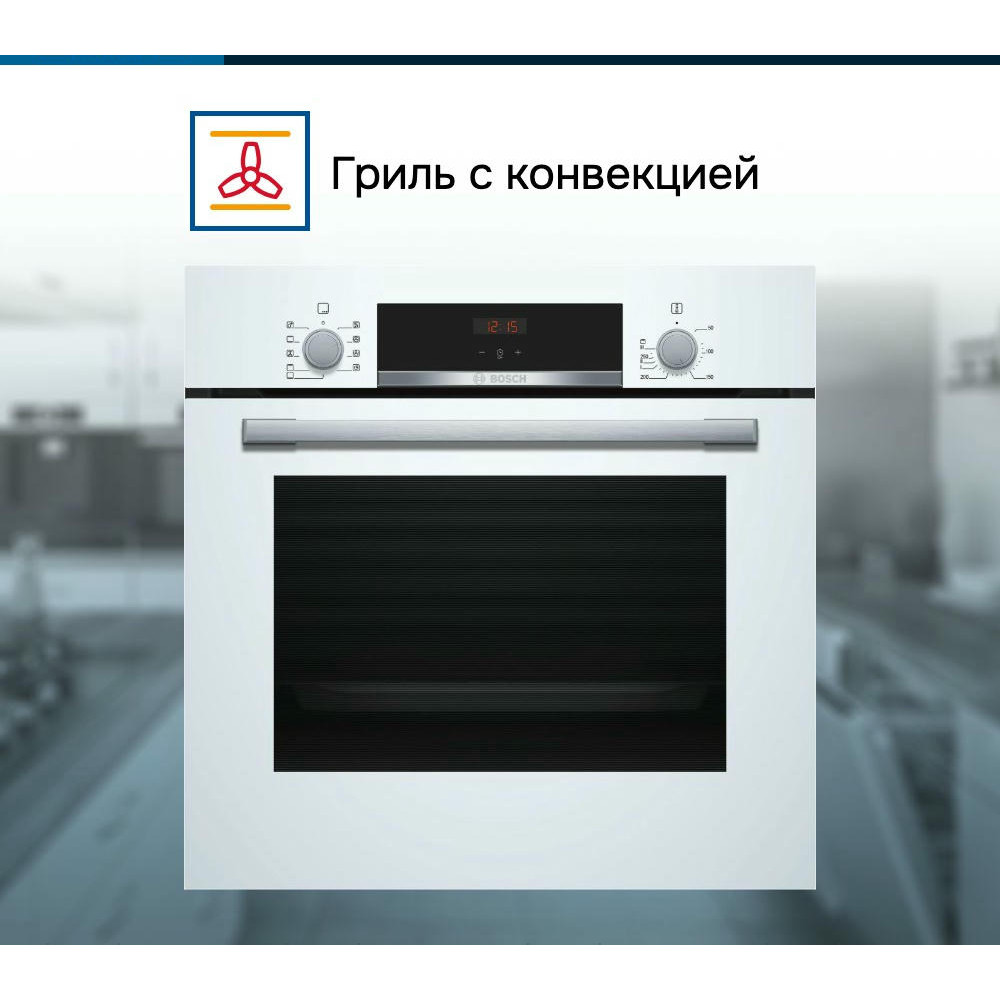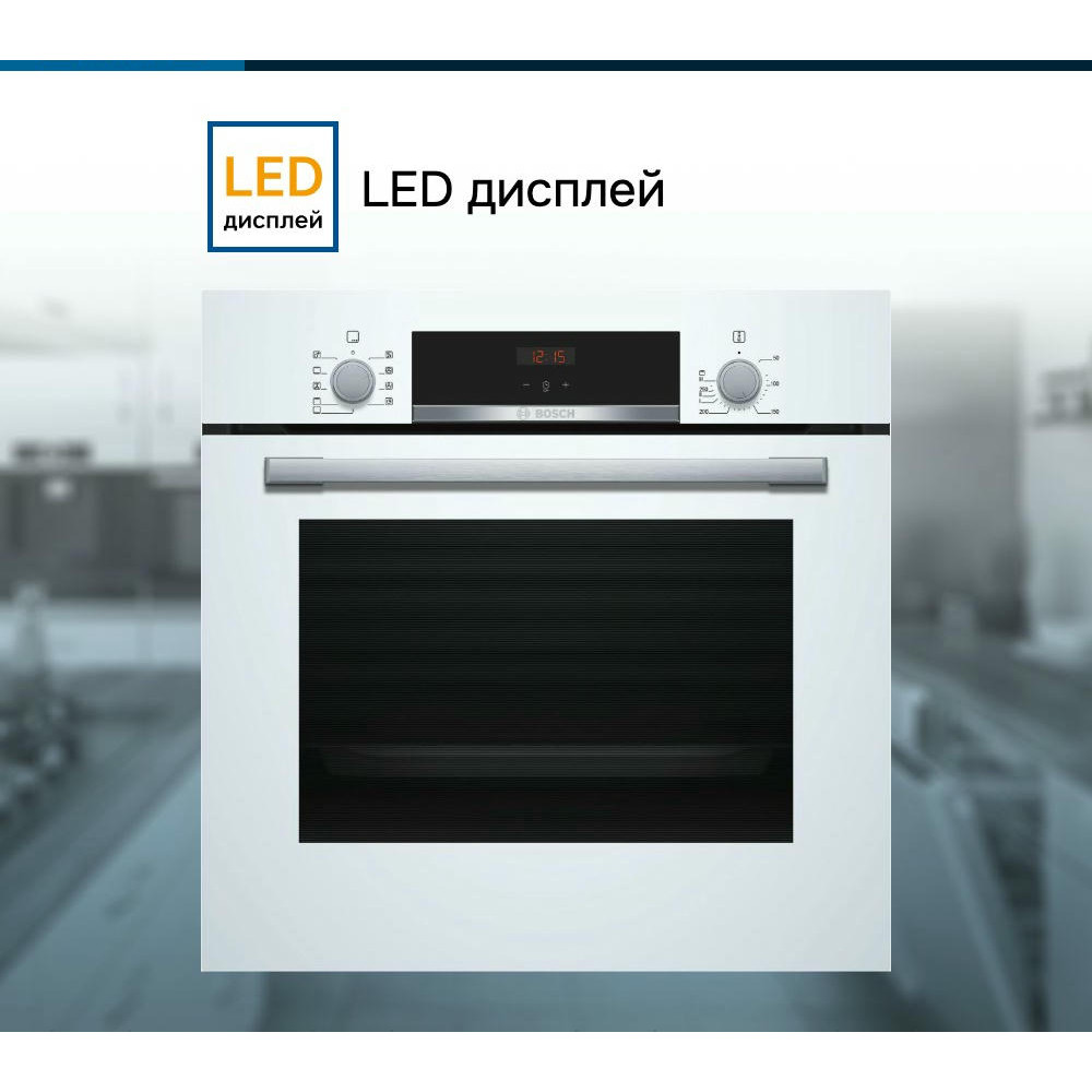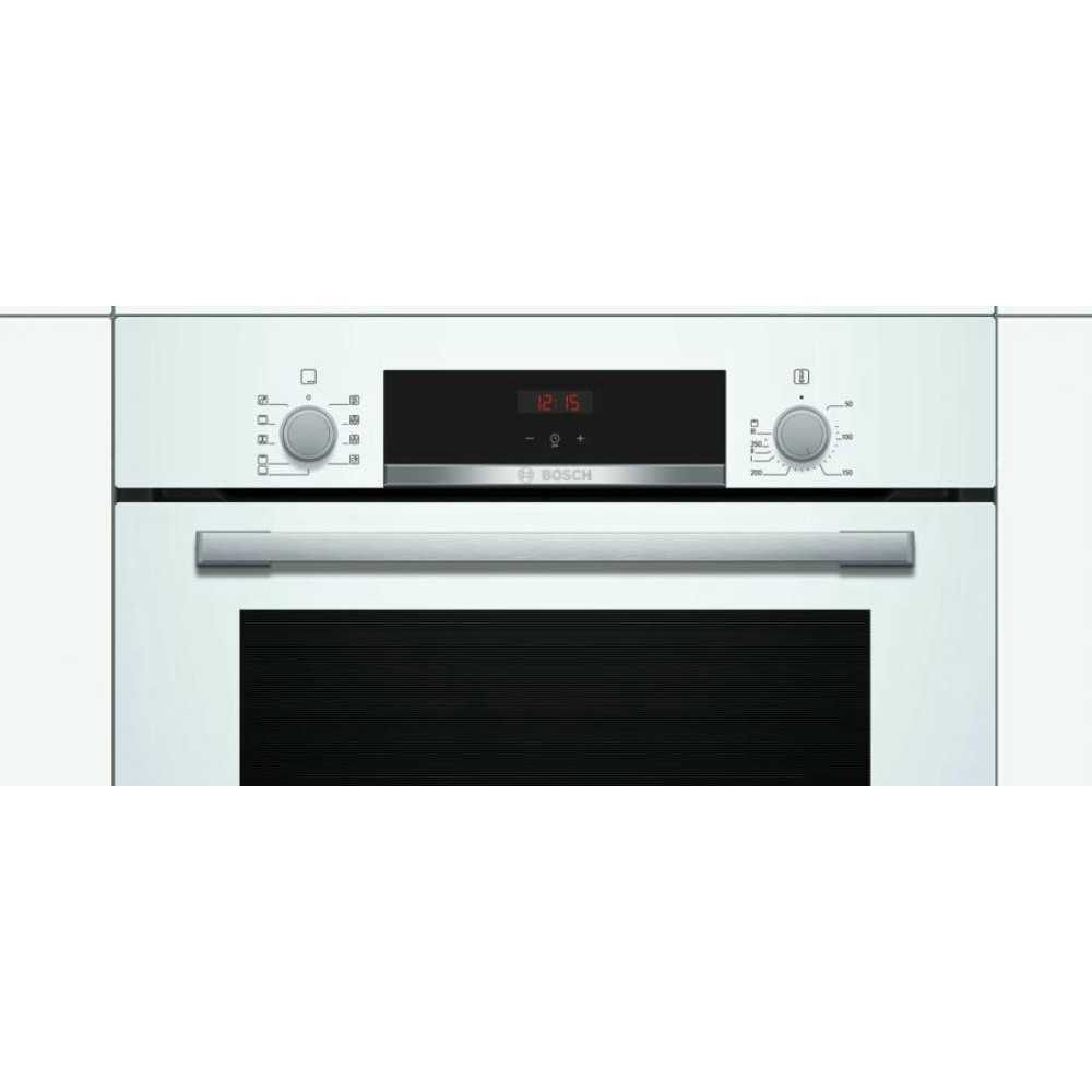 Духовой шкаф Bosch HBF534EW0R — это электрическая независимая модель из линейки Serie | 4. Ее внутренний объем составляет 66 литров, благодаря чему в ней можно запекать сразу несколько блюд, либо одно большое. Она выполнена в белом цвете, благодаря чему хорошо вписывается в различные виды современного кухонного интерьера. Управление осуществляется с помощью сенсорных кнопок, а также поворотных и утапливаемых переключателей. LED-дисплей устойчив к высоким температурам, а также имеет качественное изображение под любым углом. Благодаря многофункциональным часам Easy Clock можно с легкостью отслеживать время до окончания работы одной из программ.